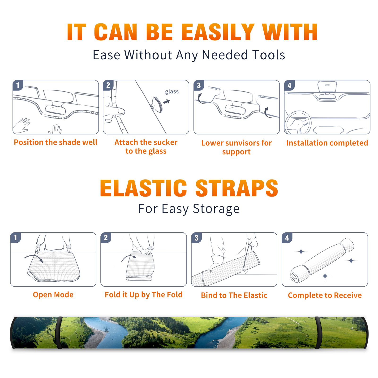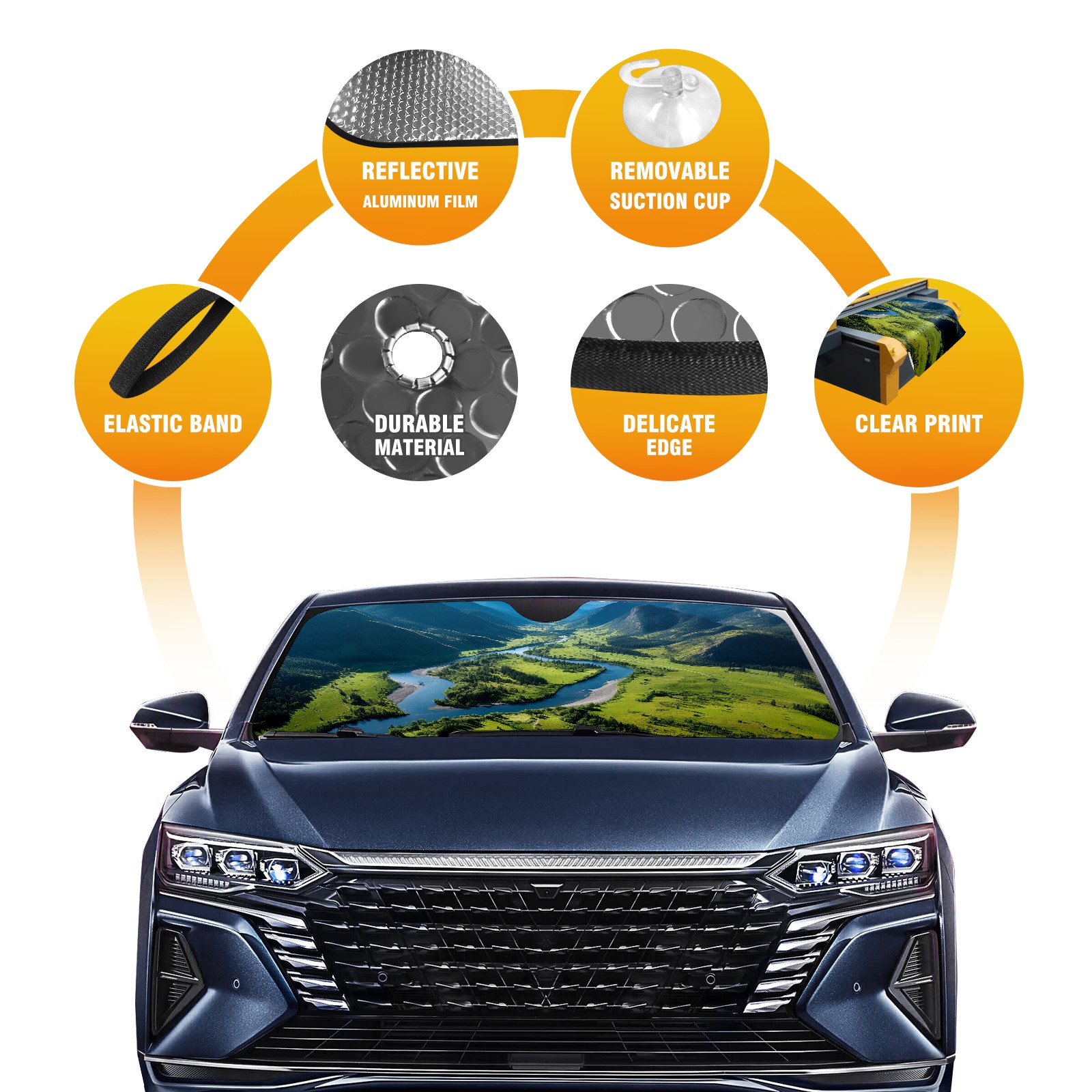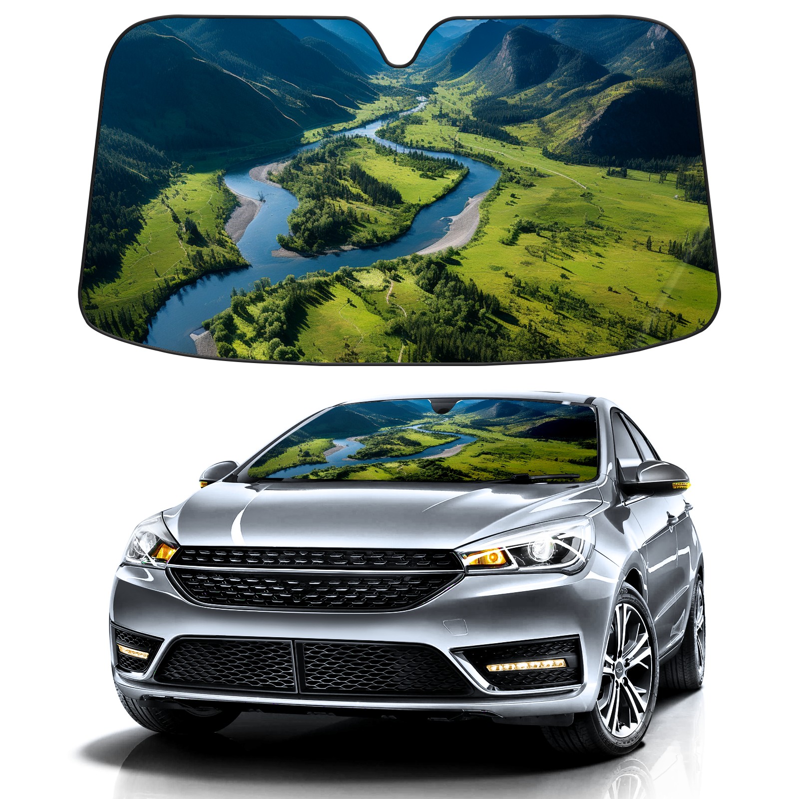 Car Windshield Sun Shade For Front Window Mountain1 Foldable Vehicle Windshield Car Sun Visor Covers Automotive Window Protector Car Camping Privacy Sun Blocker