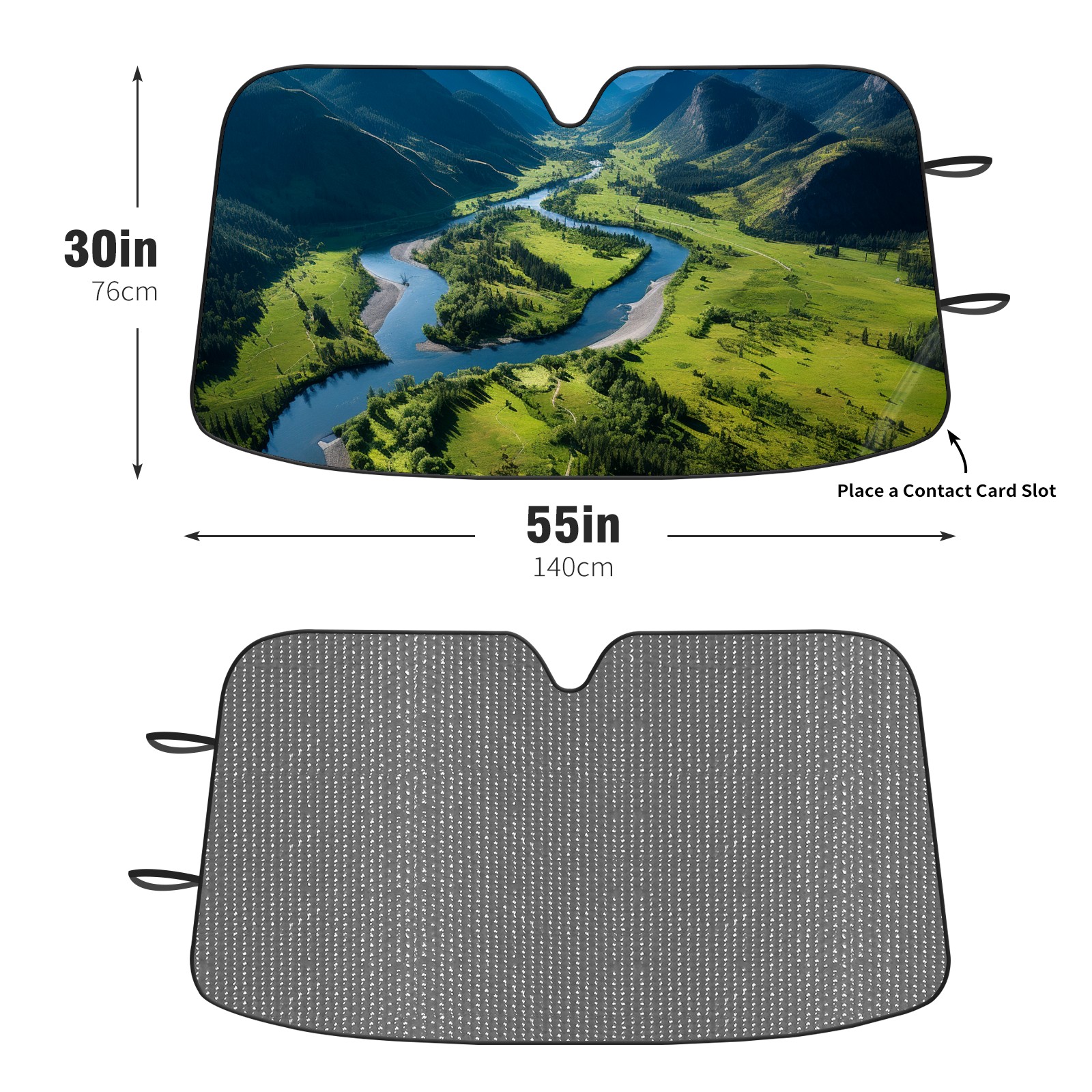 Diameter /Size 63"L x 33.5"W Made from excellent materials which makes it sturdy and protects the car from the sun. Easy to use and pack. Makes the interior of the car cooler.You can easily stash the sunshade in the storage bag or store long term.It open and closes easy. Also the leather storage bag is durable and easy to put the umbrella back into.This windshield sunshade provides complete coverage and keeps your car interior cool under direct sun. It is easy to open and position under the windshield and around the rear-view mirror. Makes Your Car Easy To Identify, Perfect For Finding Your Car In Crowded Parking Lots And Garages.Great Choice: It Is A Great Gift For Dad, Boyfriend, Brother, Brother And Uncle, Friends, Classmates, Family And So On. Notice: Due To Difference Computer Monitors, The Color Maybe Slightly Different From Picture. As Different Measurement Methods, Measurement Data Will Float Within 2%.I Hope You Understand. If You Have Any Question About The Item Please Do Not Hesitate To Contact Us Immediately And We Will Give You A Satisfactory Reply Within 24 Hours.