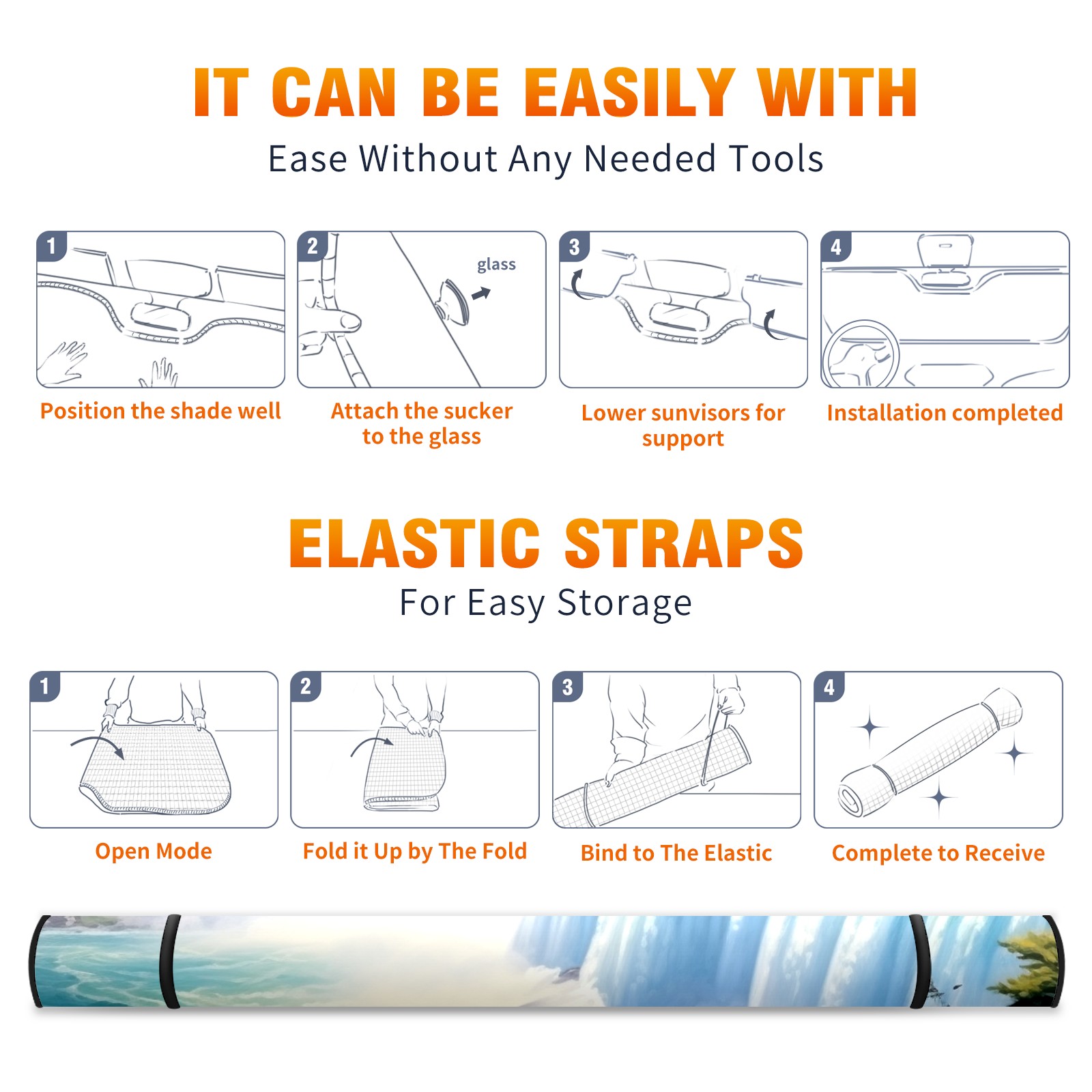 • Diameter /Size 63"L x 33.5"W Made from excellent materials which makes it sturdy and protects the car from the sun. Easy to use and pack. Makes the interior of the car cooler.You can easily stash the sunshade in the storage bag or store long term.It open and closes easy. Also the leather storage bag is durable and easy to put the umbrella back into.This windshield sunshade provides complete coverage and keeps your car interior cool under direct sun. It is easy to open and position under the windshield and around the rear-view mirror. Makes Your Car Easy To Identify, Perfect For Finding Your Car In Crowded Parking Lots And Garages.Great Choice: It Is A Great Gift For Dad, Boyfriend, Brother, Brother And Uncle, Friends, Classmates, Family And So On. Notice: Due To Difference Computer Monitors, The Color Maybe Slightly Different From Picture. As Different Measurement Methods, Measurement Data Will Float Within 2%.I Hope You Understand. If You Have Any Question About The Item Please Do Not Hesitate To Contact Us Immediately And We Will Give You A Satisfactory Reply Within 24 Hours.