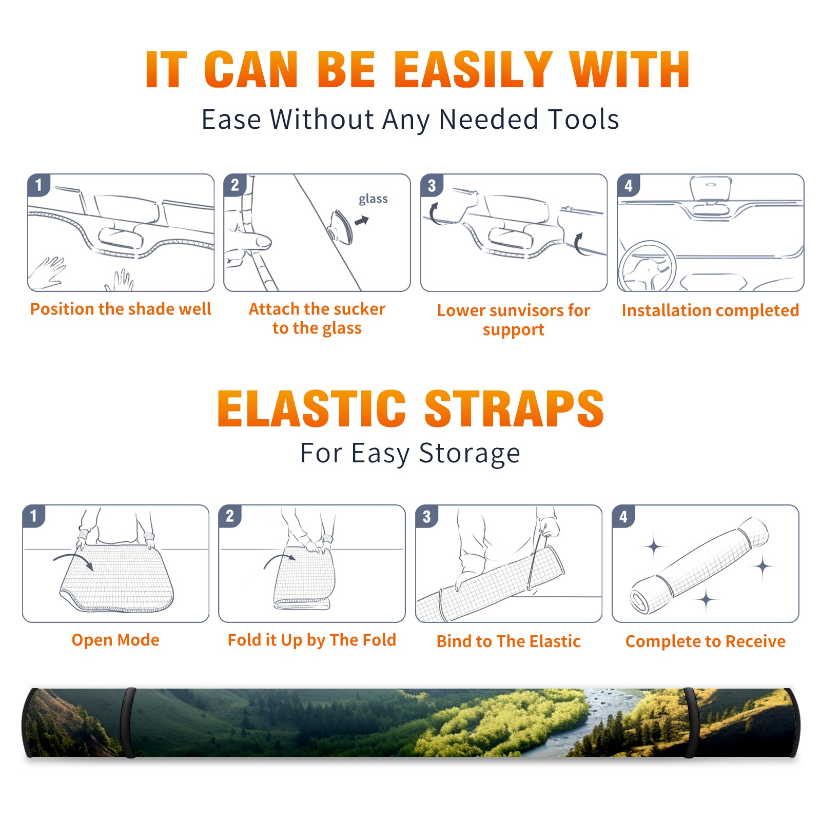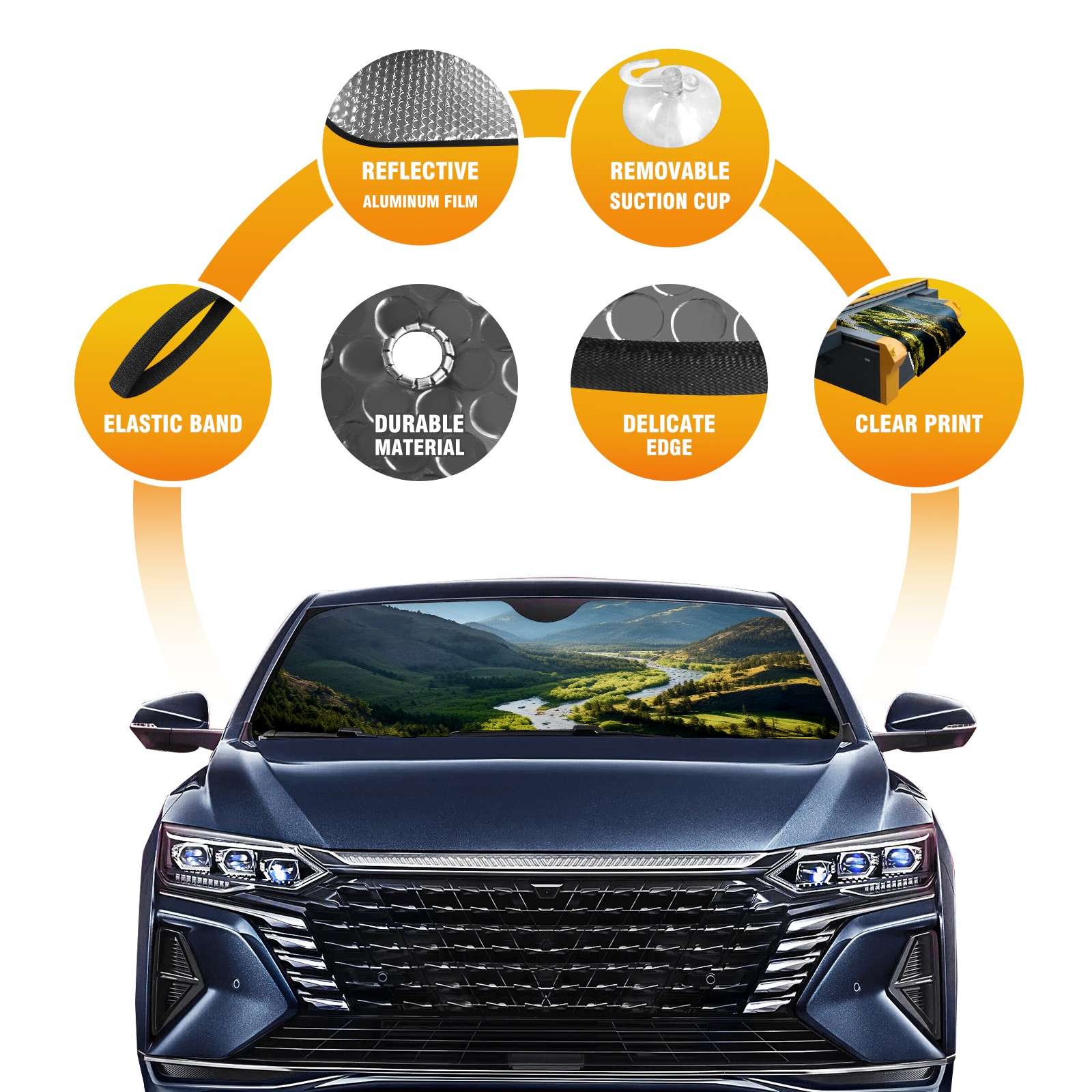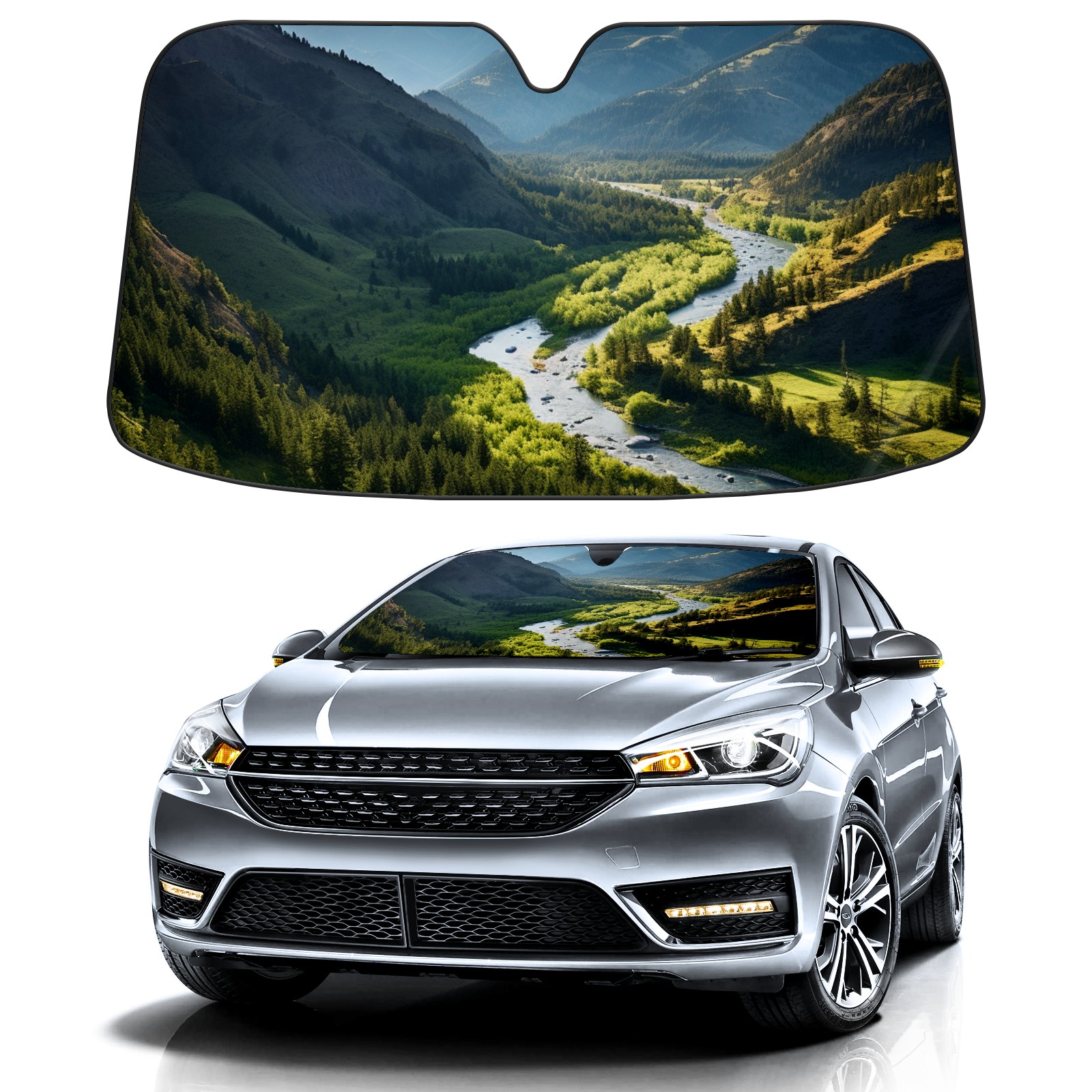 Car Windshield Sun Shade For Front Window Mountain Foldable Vehicle Windshield Car Sun Visor Covers Automotive Window Protector Car Camping Privacy Sun Blocker