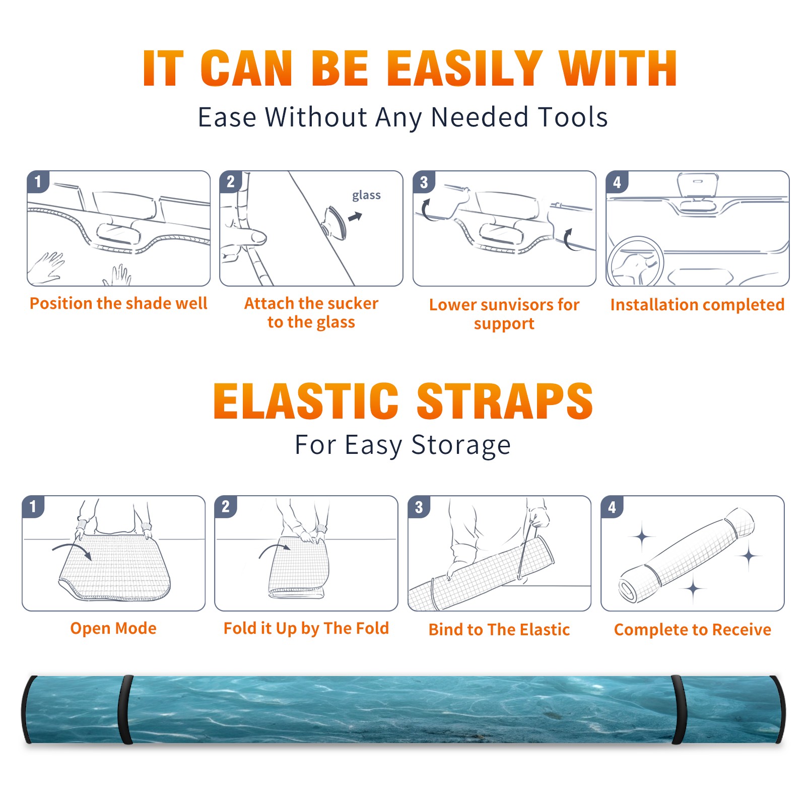 • Diameter /Size 63"L x 33.5"W Made from excellent materials which makes it sturdy and protects the car from the sun. Easy to use and pack. Makes the interior of the car cooler.You can easily stash the sunshade in the storage bag or store long term.It open and closes easy. Also the leather storage bag is durable and easy to put the umbrella back into.This windshield sunshade provides complete coverage and keeps your car interior cool under direct sun. It is easy to open and position under the windshield and around the rear-view mirror. Makes Your Car Easy To Identify, Perfect For Finding Your Car In Crowded Parking Lots And Garages.Great Choice: It Is A Great Gift For Dad, Boyfriend, Brother, Brother And Uncle, Friends, Classmates, Family And So On. Notice: Due To Difference Computer Monitors, The Color Maybe Slightly Different From Picture. As Different Measurement Methods, Measurement Data Will Float Within 2%.I Hope You Understand. If You Have Any Question About The Item Please Do Not Hesitate To Contact Us Immediately And We Will Give You A Satisfactory Reply Within 24 Hours.
