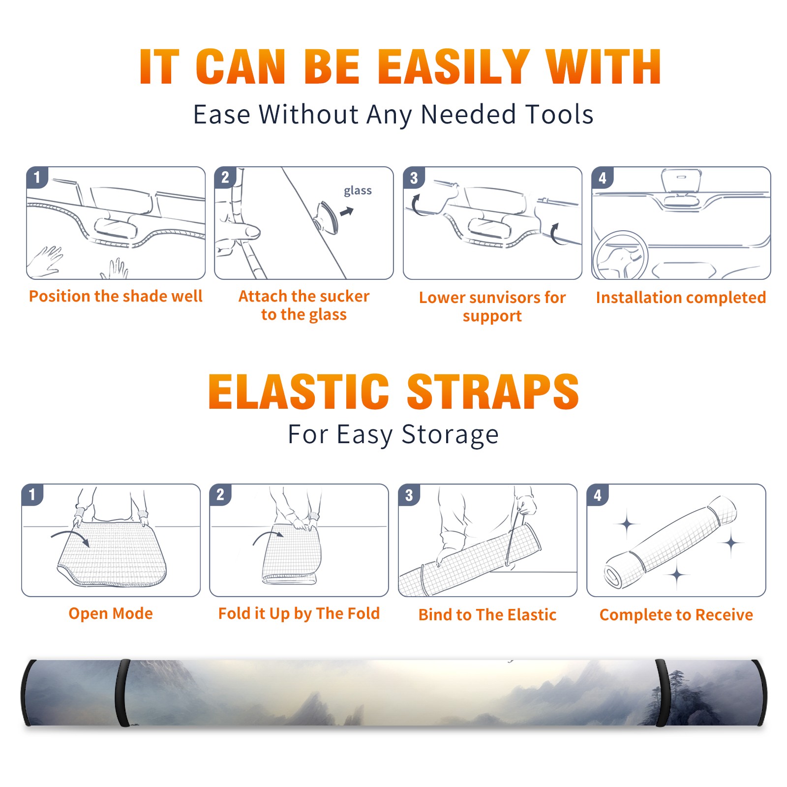 • Diameter /Size 63"L x 33.5"W Made from excellent materials which makes it sturdy and protects the car from the sun. Easy to use and pack. Makes the interior of the car cooler.You can easily stash the sunshade in the storage bag or store long term.It open and closes easy. Also the leather storage bag is durable and easy to put the umbrella back into.This windshield sunshade provides complete coverage and keeps your car interior cool under direct sun. It is easy to open and position under the windshield and around the rear-view mirror. Makes Your Car Easy To Identify, Perfect For Finding Your Car In Crowded Parking Lots And Garages.Great Choice: It Is A Great Gift For Dad, Boyfriend, Brother, Brother And Uncle, Friends, Classmates, Family And So On. Notice: Due To Difference Computer Monitors, The Color Maybe Slightly Different From Picture. As Different Measurement Methods, Measurement Data Will Float Within 2%.I Hope You Understand. If You Have Any Question About The Item Please Do Not Hesitate To Contact Us Immediately And We Will Give You A Satisfactory Reply Within 24 Hours.