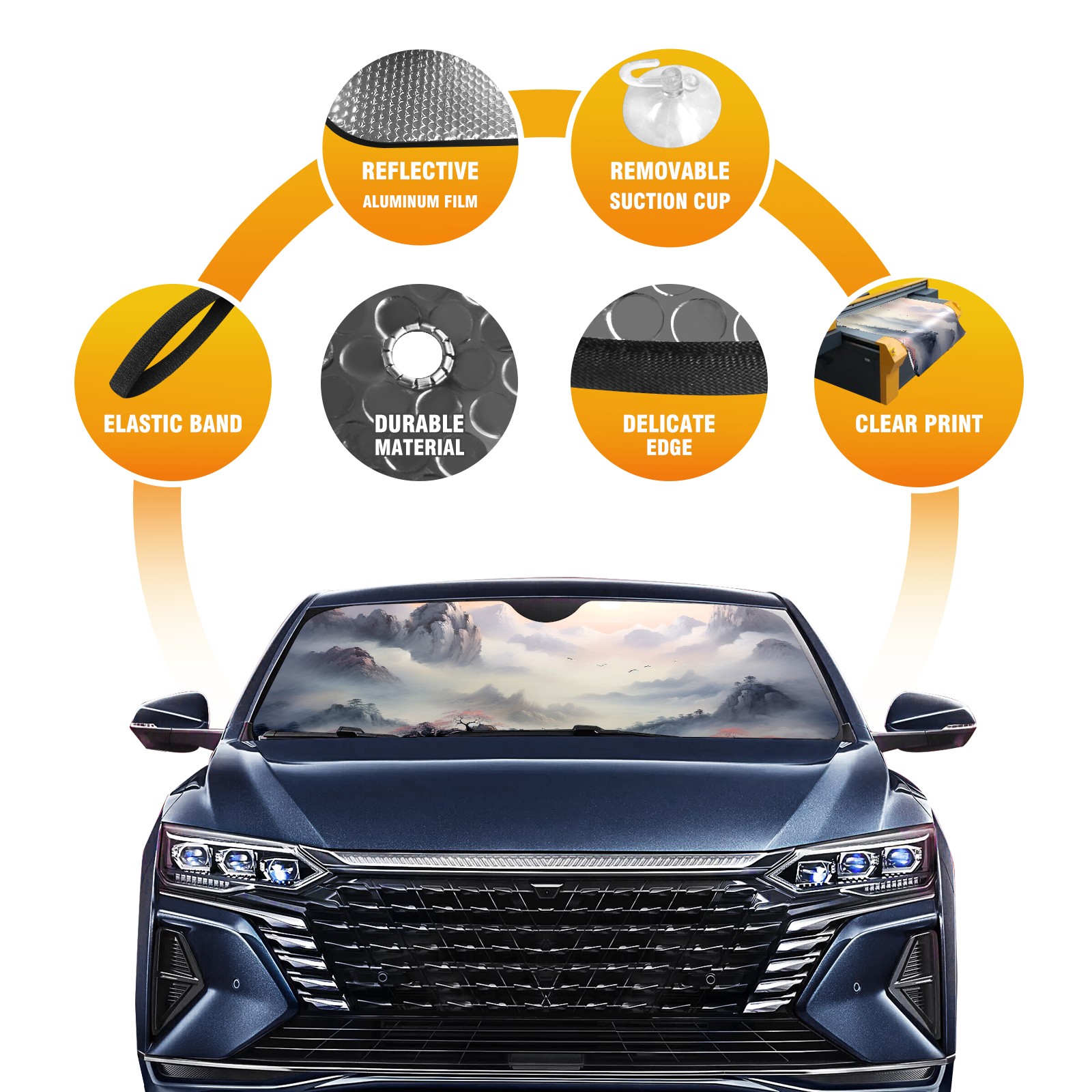 Car Windshield Sun Shade For Front Window Landscape5 Foldable Vehicle Windshield Car Sun Visor Covers Automotive Window Protector Car Camping Privacy Sun Blocker