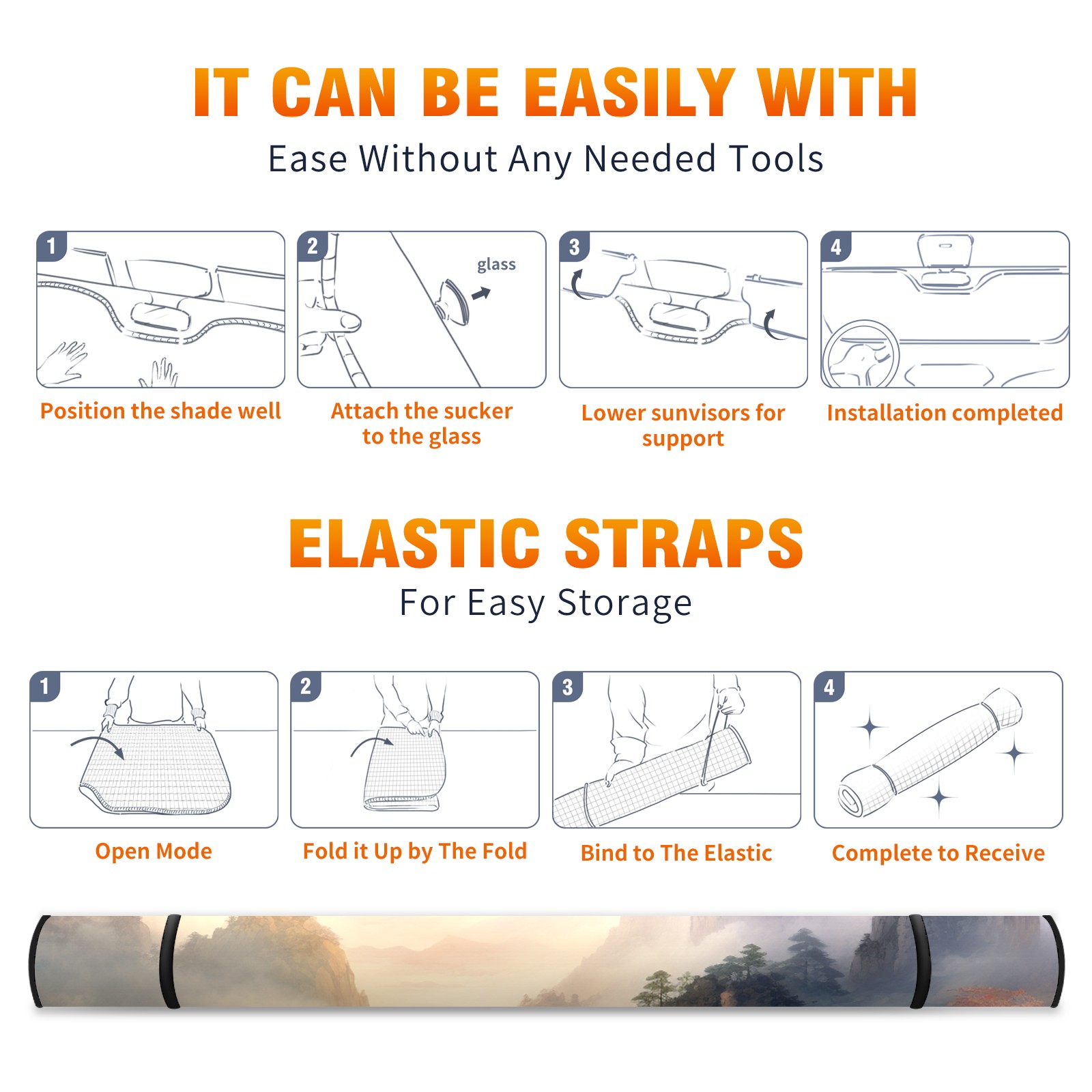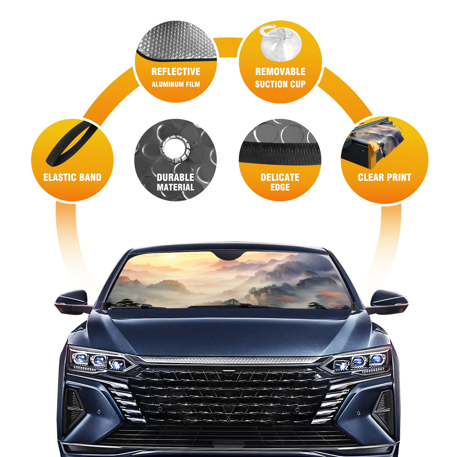 Car Windshield Sun Shade For Front Window Landscape4 Foldable Vehicle Windshield Car Sun Visor Covers Automotive Window Protector Car Camping Privacy Sun Blocker