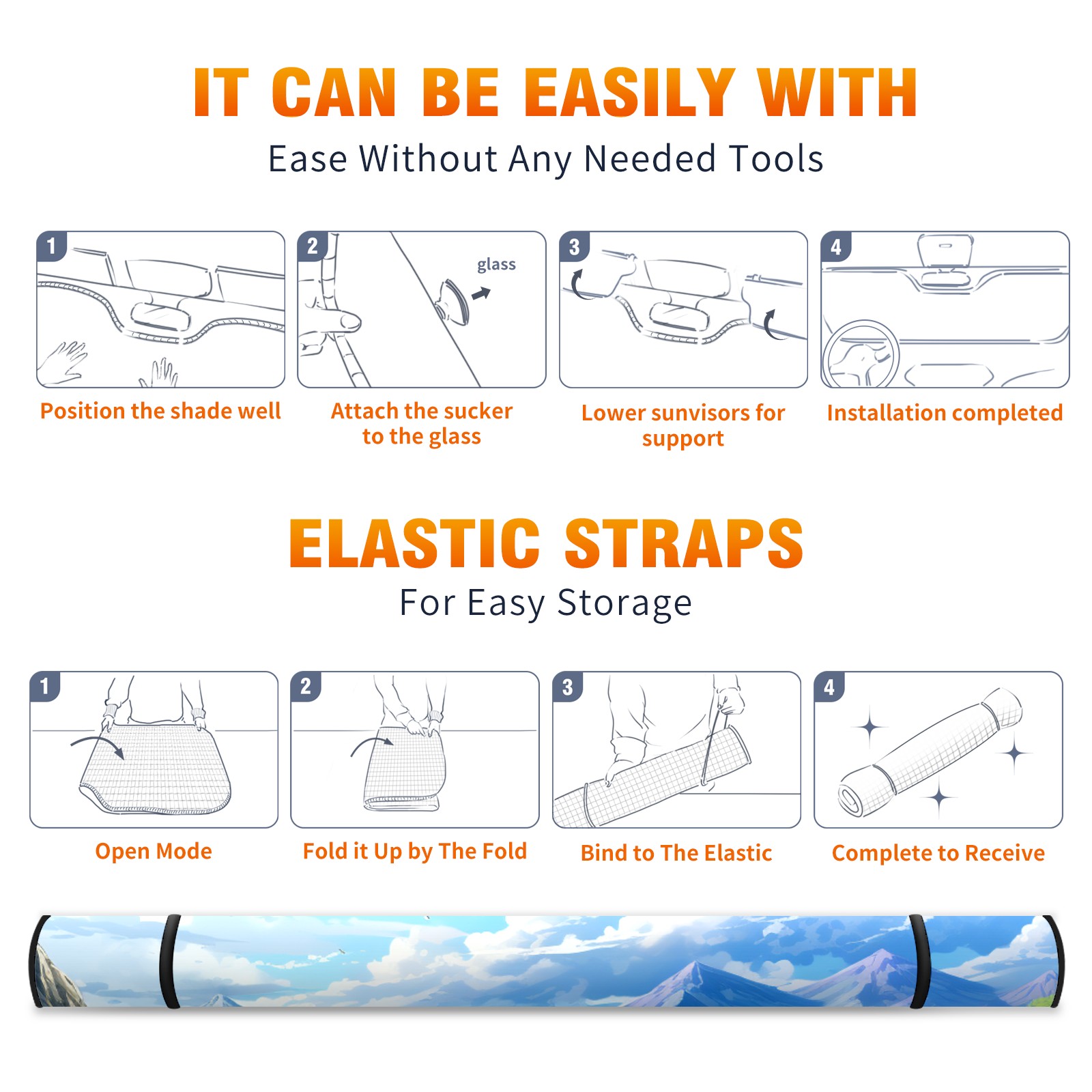• Diameter /Size 63"L x 33.5"W Made from excellent materials which makes it sturdy and protects the car from the sun. Easy to use and pack. Makes the interior of the car cooler.You can easily stash the sunshade in the storage bag or store long term.It open and closes easy. Also the leather storage bag is durable and easy to put the umbrella back into.This windshield sunshade provides complete coverage and keeps your car interior cool under direct sun. It is easy to open and position under the windshield and around the rear-view mirror. Makes Your Car Easy To Identify, Perfect For Finding Your Car In Crowded Parking Lots And Garages.Great Choice: It Is A Great Gift For Dad, Boyfriend, Brother, Brother And Uncle, Friends, Classmates, Family And So On. Notice: Due To Difference Computer Monitors, The Color Maybe Slightly Different From Picture. As Different Measurement Methods, Measurement Data Will Float Within 2%.I Hope You Understand. If You Have Any Question About The Item Please Do Not Hesitate To Contact Us Immediately And We Will Give You A Satisfactory Reply Within 24 Hours.