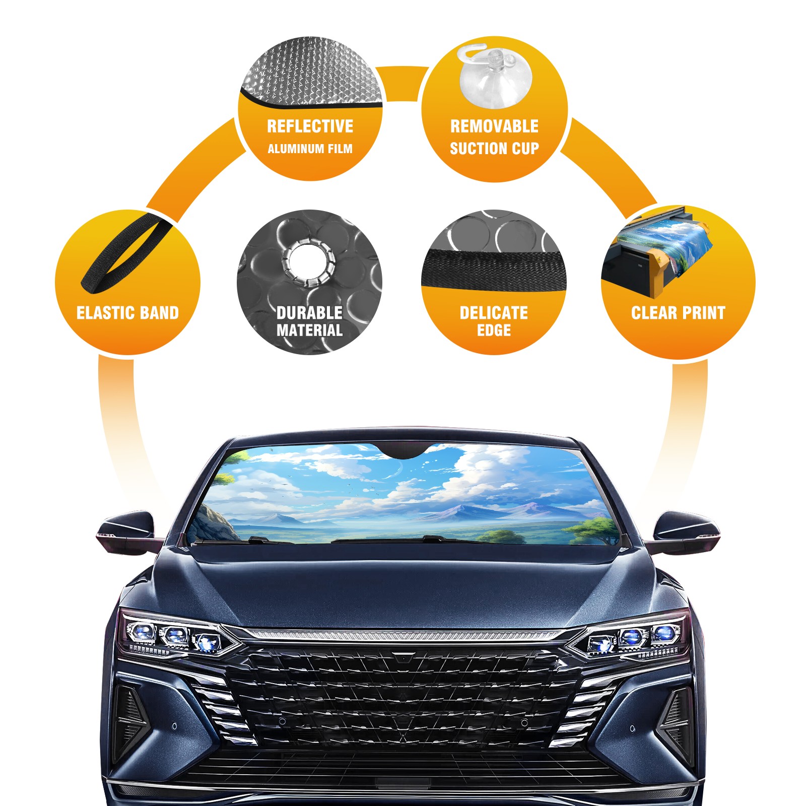 Car Windshield Sun Shade For Front Window Landscape3 Foldable Vehicle Windshield Car Sun Visor Covers Automotive Window Protector Car Camping Privacy Sun Blocker