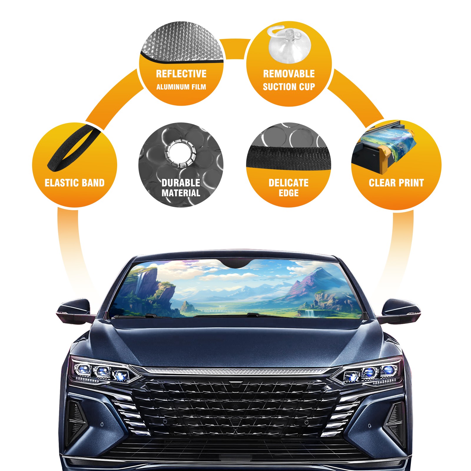 Car Windshield Sun Shade For Front Window Landscape Foldable Vehicle Windshield Car Sun Visor Covers Automotive Window Protector Car Camping Privacy Sun Blocker
