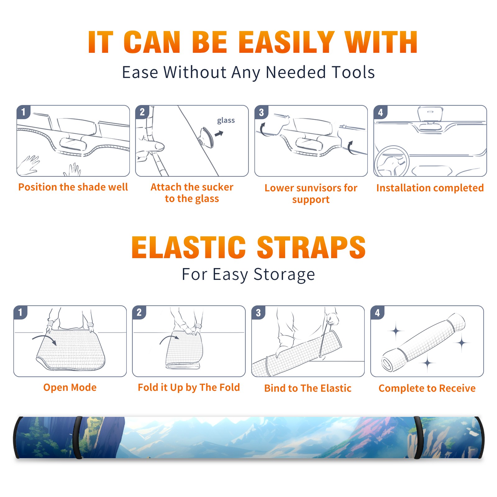 • Diameter /Size 63"L x 33.5"W Made from excellent materials which makes it sturdy and protects the car from the sun. Easy to use and pack. Makes the interior of the car cooler.You can easily stash the sunshade in the storage bag or store long term.It open and closes easy. Also the leather storage bag is durable and easy to put the umbrella back into.This windshield sunshade provides complete coverage and keeps your car interior cool under direct sun. It is easy to open and position under the windshield and around the rear-view mirror. Makes Your Car Easy To Identify, Perfect For Finding Your Car In Crowded Parking Lots And Garages.Great Choice: It Is A Great Gift For Dad, Boyfriend, Brother, Brother And Uncle, Friends, Classmates, Family And So On. Notice: Due To Difference Computer Monitors, The Color Maybe Slightly Different From Picture. As Different Measurement Methods, Measurement Data Will Float Within 2%.I Hope You Understand. If You Have Any Question About The Item Please Do Not Hesitate To Contact Us Immediately And We Will Give You A Satisfactory Reply Within 24 Hours.
