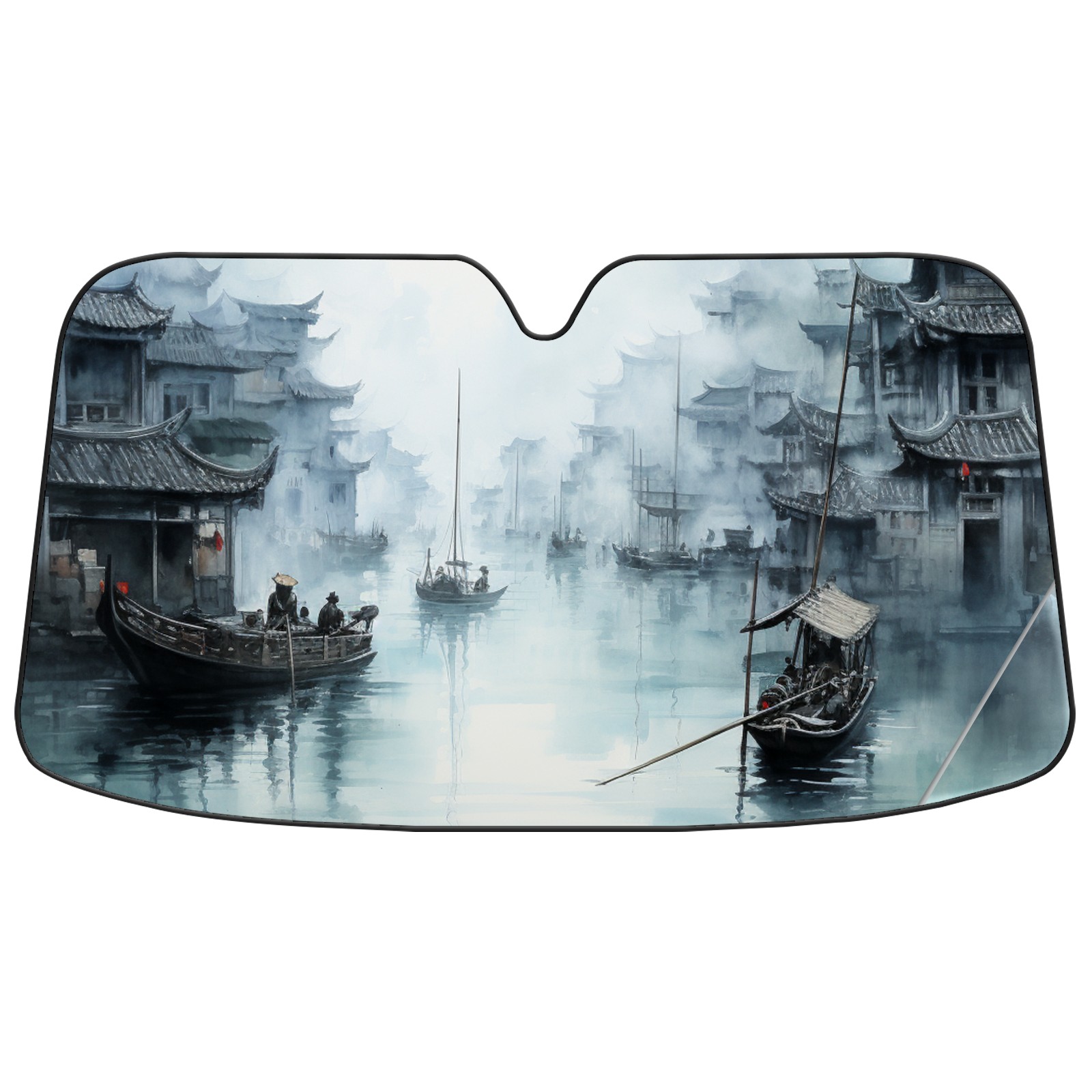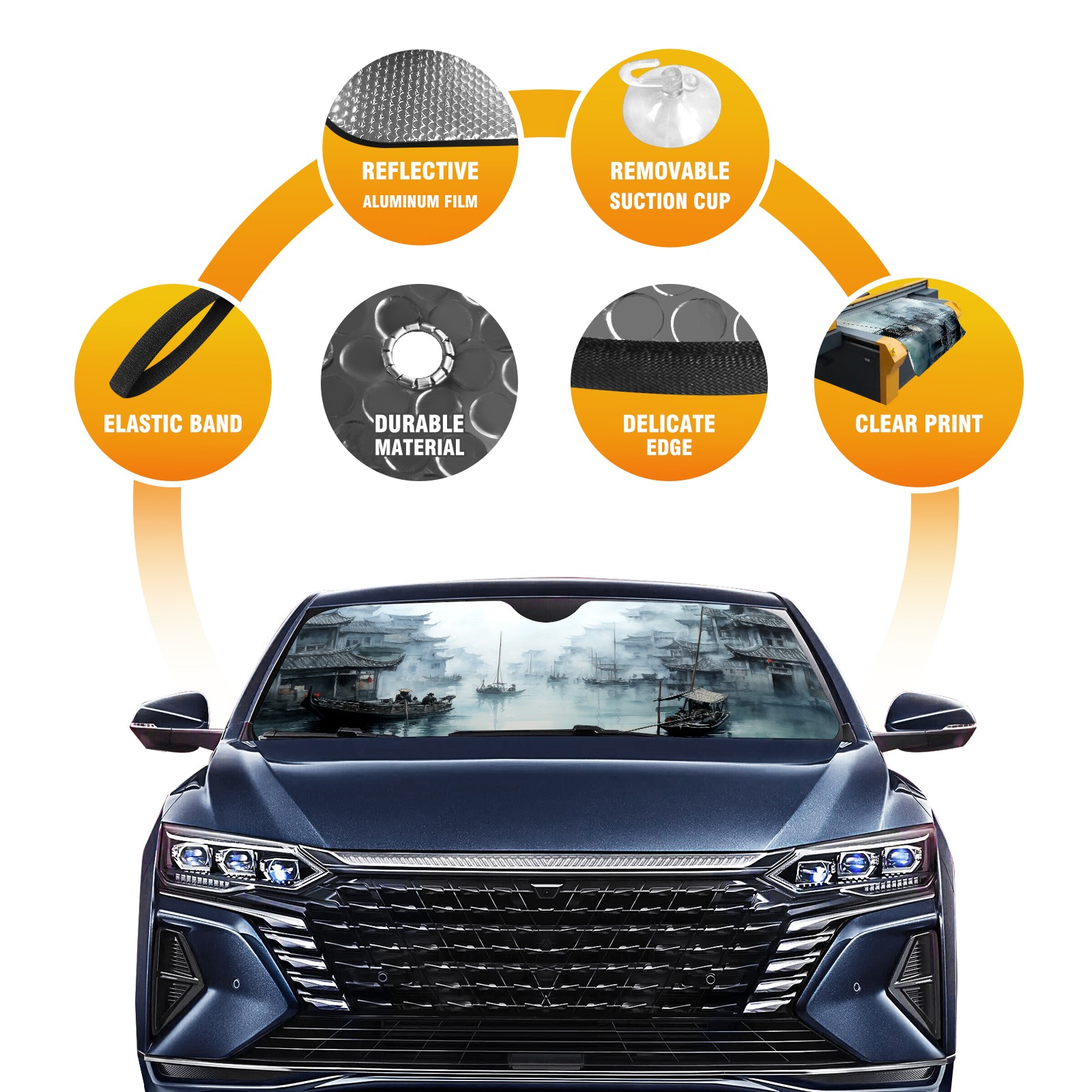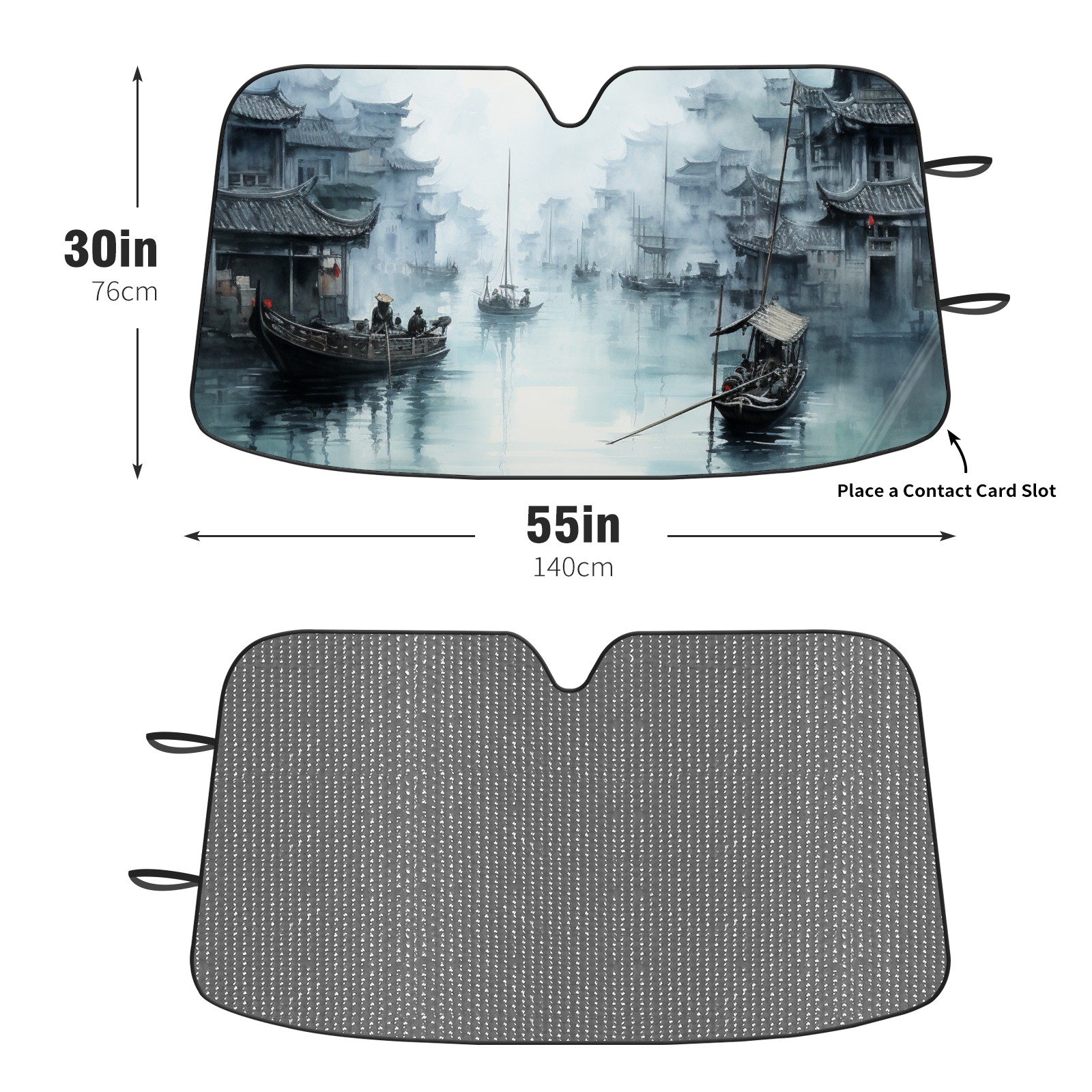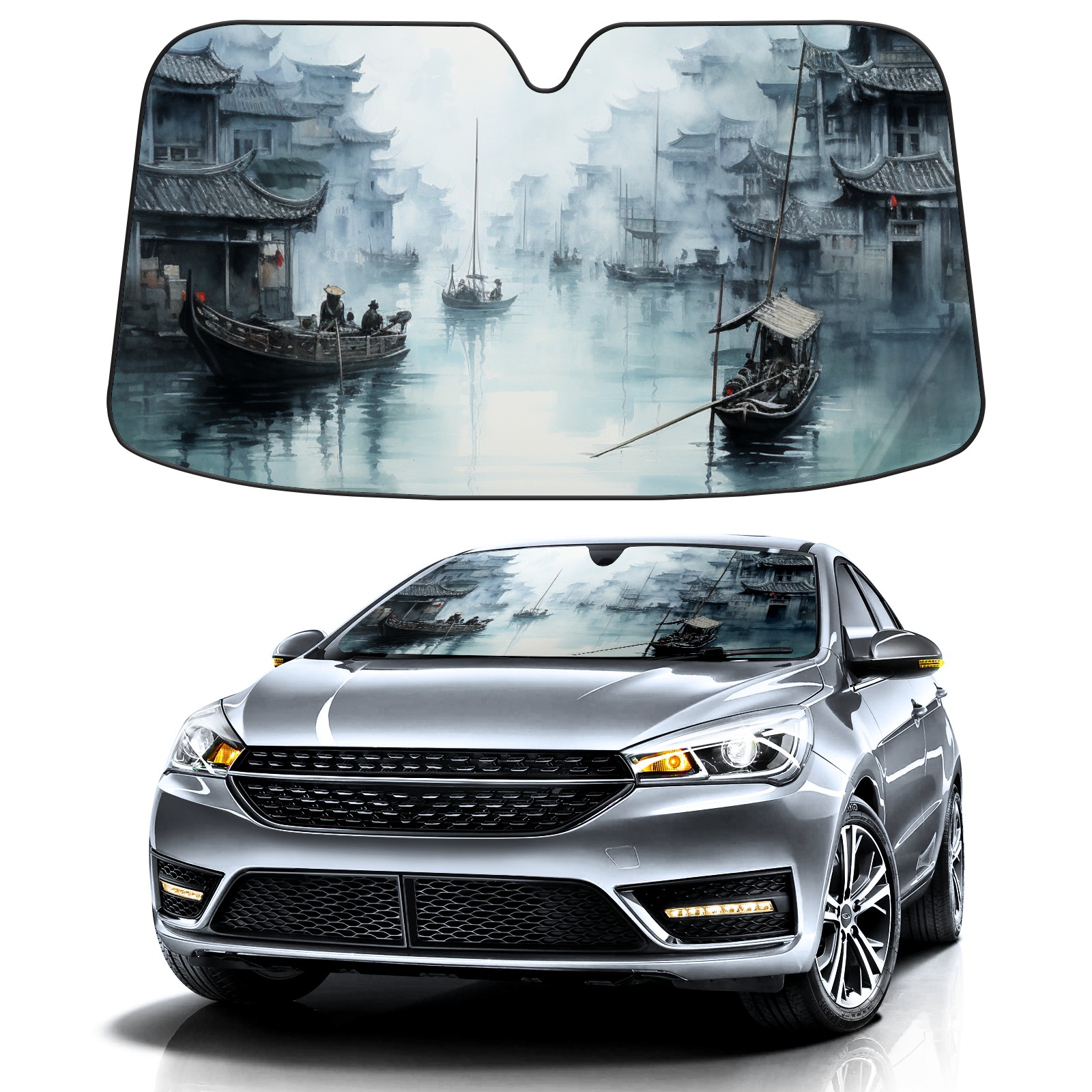 Car Windshield Sun Shade For Front Window Ink And Wash Style3 Foldable Vehicle Windshield Car Sun Visor Covers Automotive Window Protector Car Camping Privacy Sun Blocker