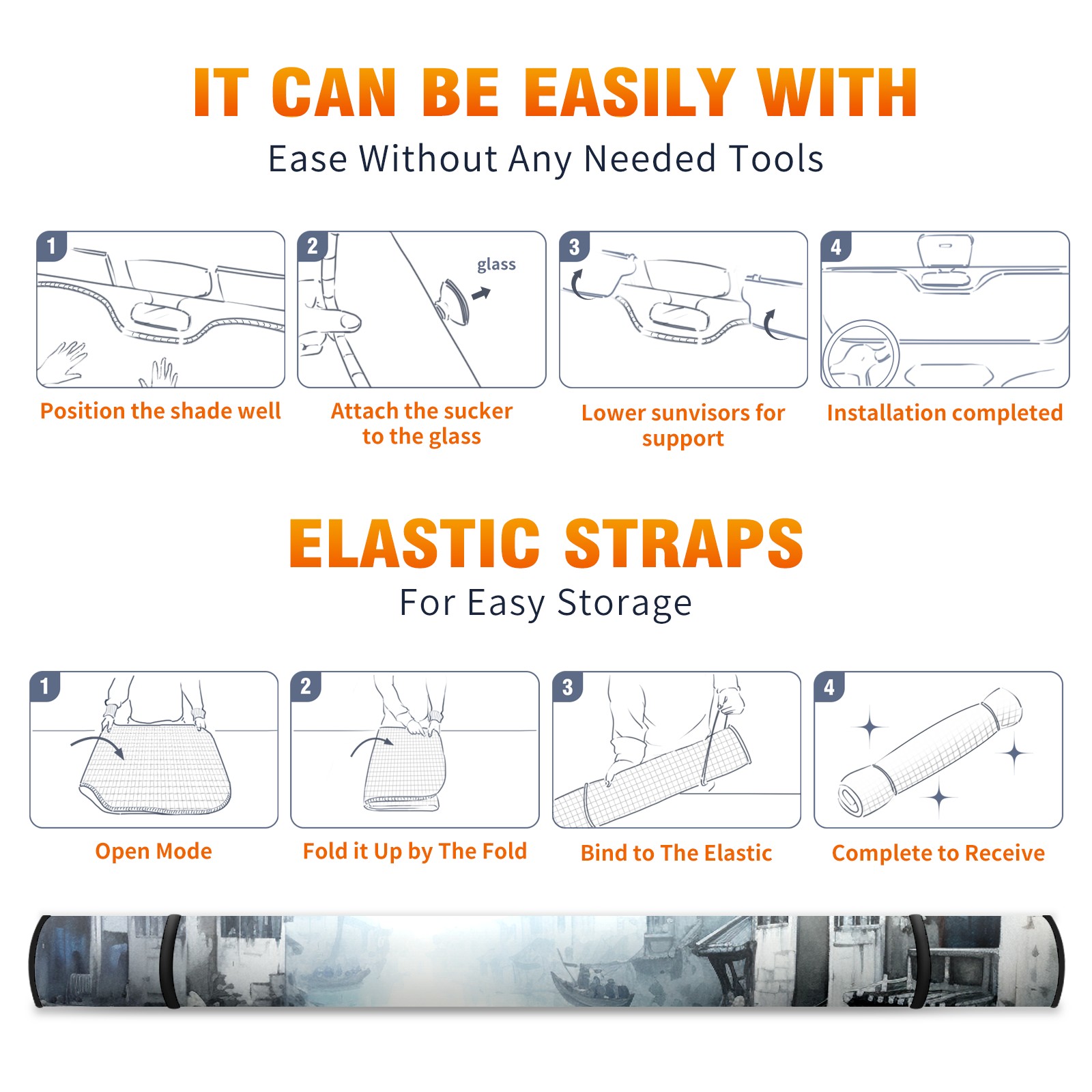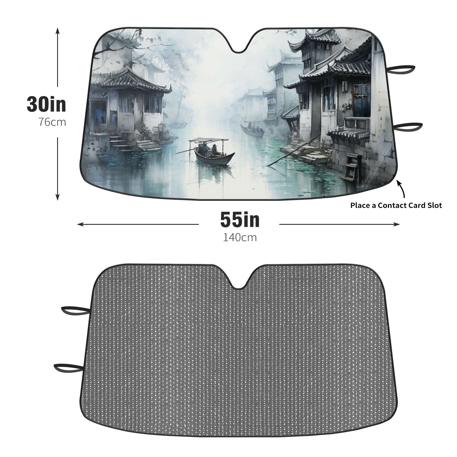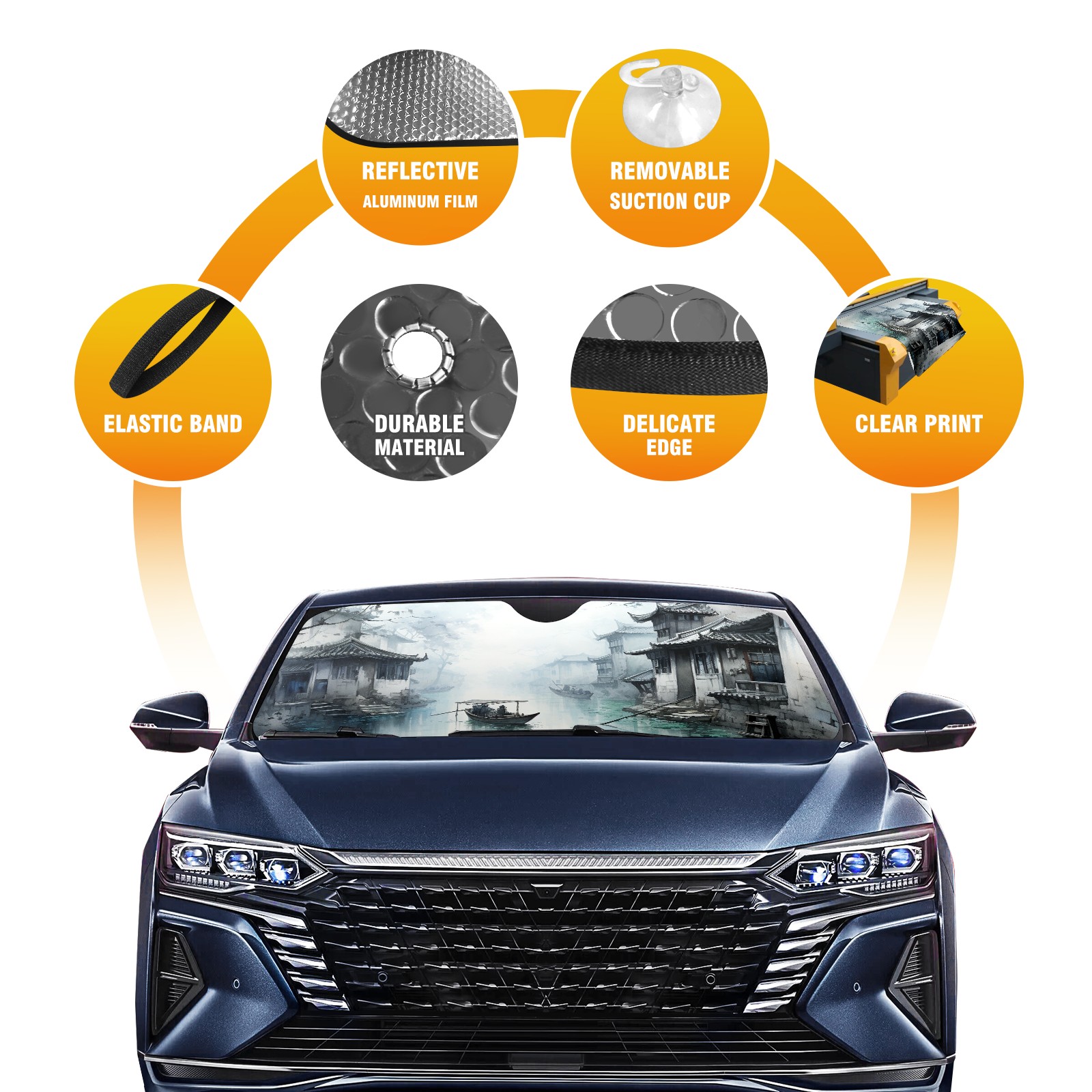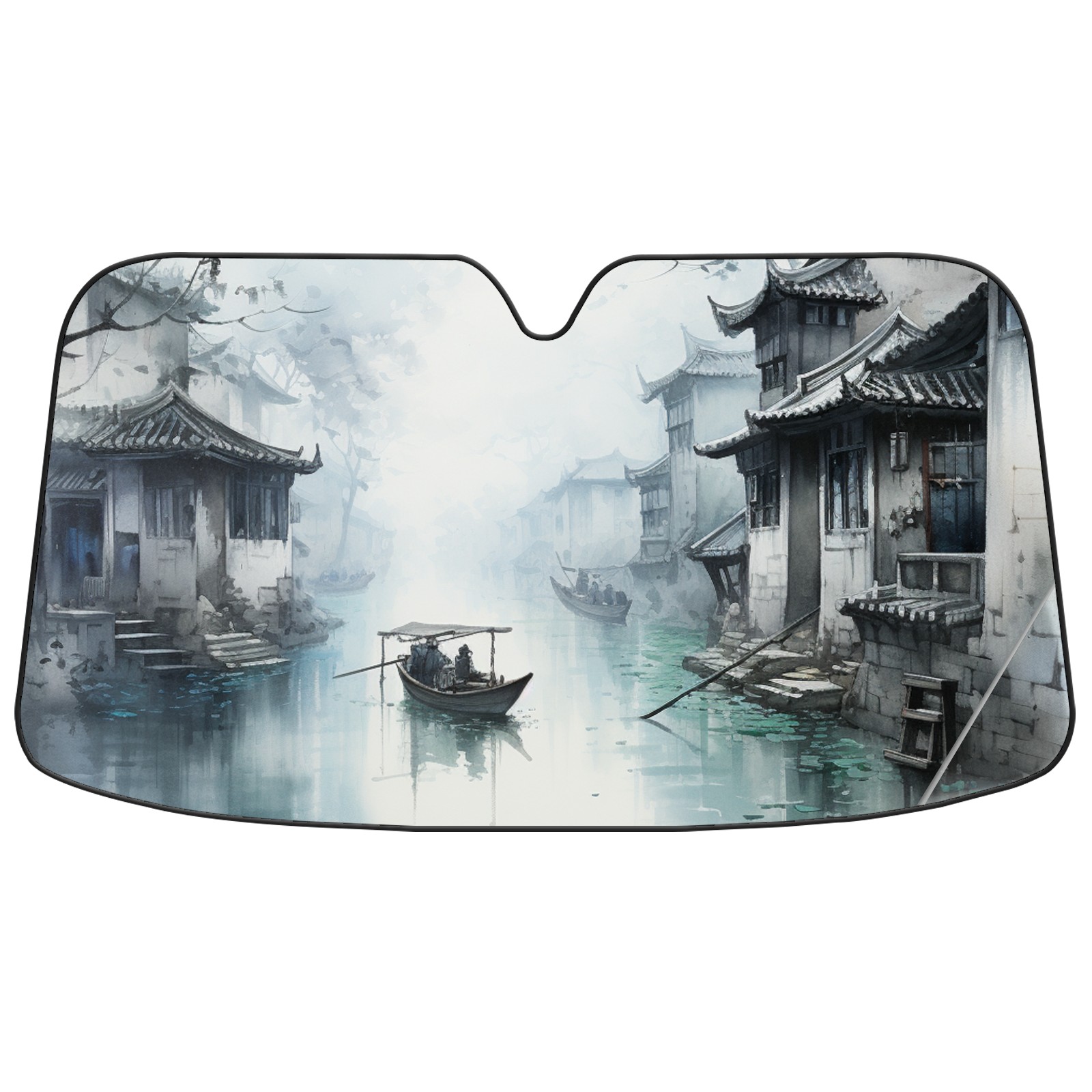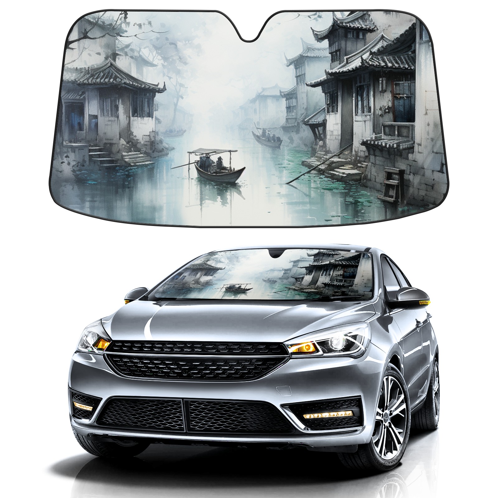 Car Windshield Sun Shade For Front Window Ink And Wash Style Foldable Vehicle Windshield Car Sun Visor Covers Automotive Window Protector Car Camping Privacy Sun Blocker