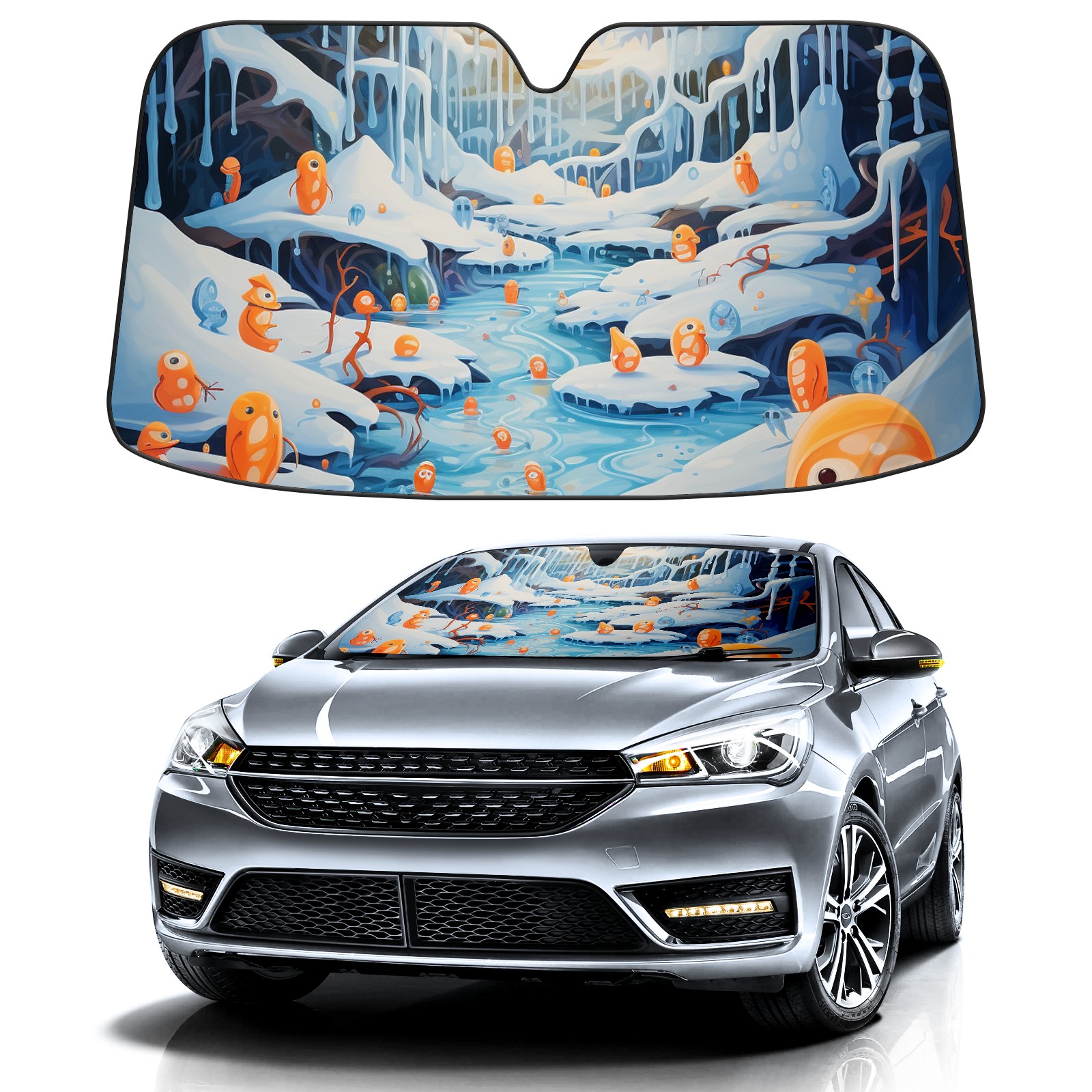 Car Windshield Sun Shade For Front Window Ice And Snow Forest3 Foldable Vehicle Windshield Car Sun Visor Covers Automotive Window Protector Car Camping Privacy Sun Blocker