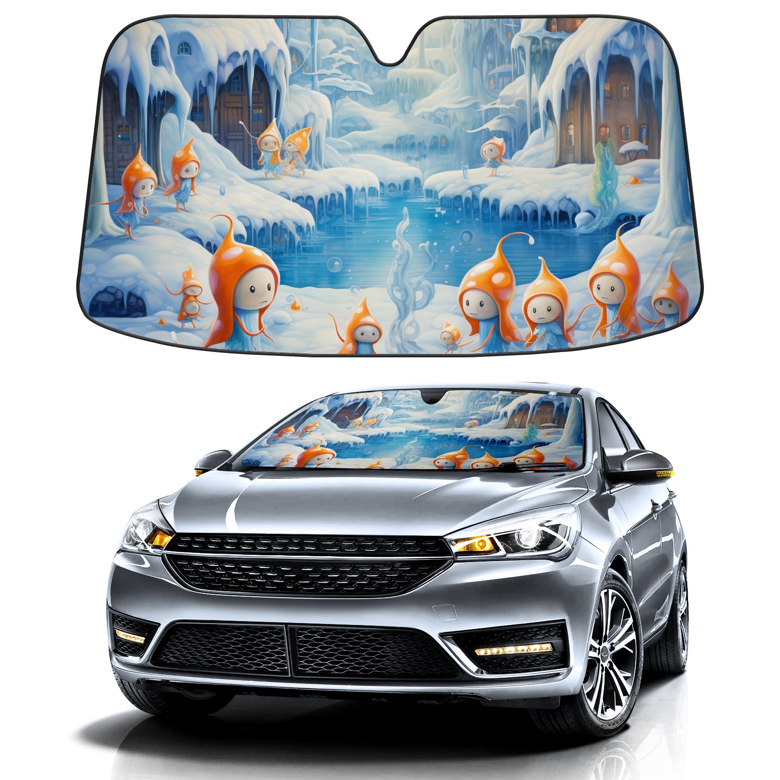 Car Windshield Sun Shade For Front Window Ice And Snow Forest1 Foldable Vehicle Windshield Car Sun Visor Covers Automotive Window Protector Car Camping Privacy Sun Blocker