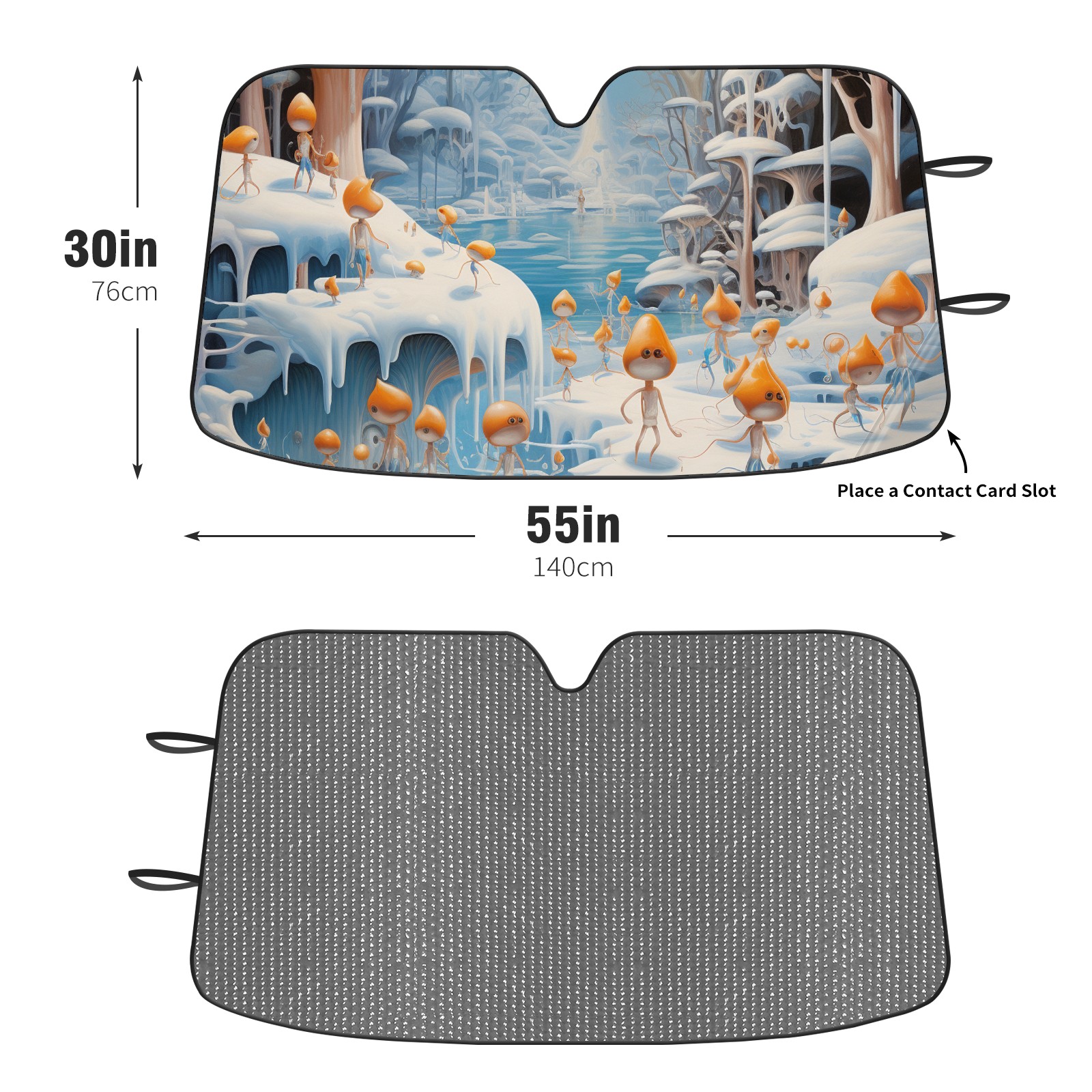 Diameter /Size 63"L x 33.5"W Made from excellent materials which makes it sturdy and protects the car from the sun. Easy to use and pack. Makes the interior of the car cooler.You can easily stash the sunshade in the storage bag or store long term.It open and closes easy. Also the leather storage bag is durable and easy to put the umbrella back into.This windshield sunshade provides complete coverage and keeps your car interior cool under direct sun. It is easy to open and position under the windshield and around the rear-view mirror. Makes Your Car Easy To Identify, Perfect For Finding Your Car In Crowded Parking Lots And Garages.Great Choice: It Is A Great Gift For Dad, Boyfriend, Brother, Brother And Uncle, Friends, Classmates, Family And So On. Notice: Due To Difference Computer Monitors, The Color Maybe Slightly Different From Picture. As Different Measurement Methods, Measurement Data Will Float Within 2%.I Hope You Understand. If You Have Any Question About The Item Please Do Not Hesitate To Contact Us Immediately And We Will Give You A Satisfactory Reply Within 24 Hours.