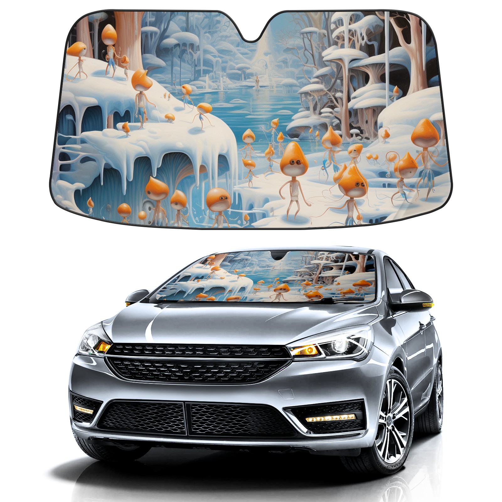 Car Windshield Sun Shade For Front Window Ice And Snow Forest Foldable Vehicle Windshield Car Sun Visor Covers Automotive Window Protector Car Camping Privacy Sun Blocker
