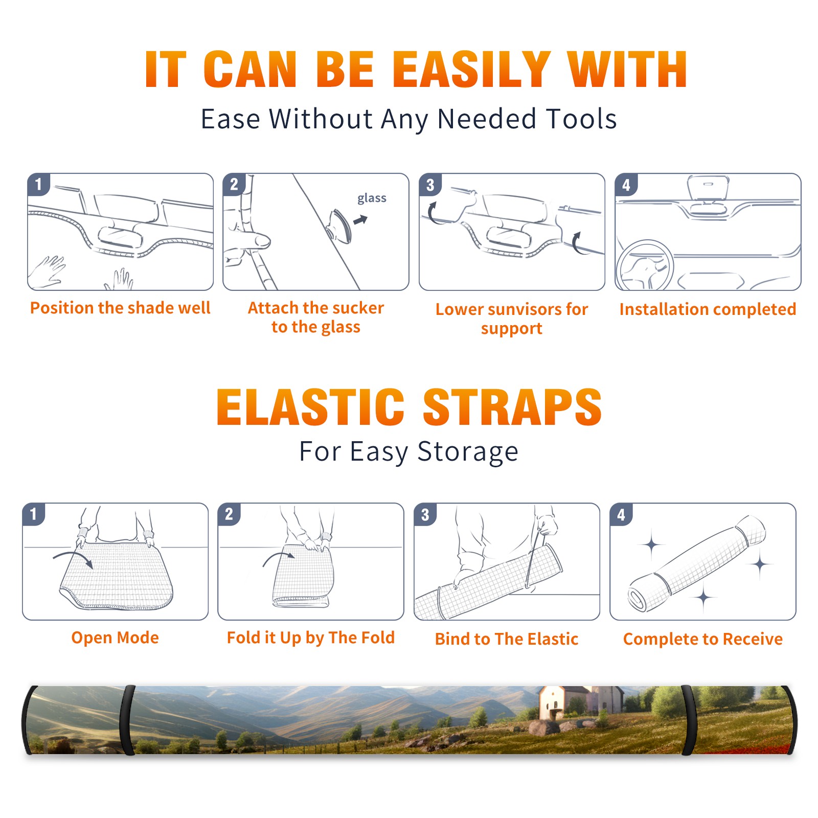 • Diameter /Size 63"L x 33.5"W Made from excellent materials which makes it sturdy and protects the car from the sun. Easy to use and pack. Makes the interior of the car cooler.You can easily stash the sunshade in the storage bag or store long term.It open and closes easy. Also the leather storage bag is durable and easy to put the umbrella back into.This windshield sunshade provides complete coverage and keeps your car interior cool under direct sun. It is easy to open and position under the windshield and around the rear-view mirror. Makes Your Car Easy To Identify, Perfect For Finding Your Car In Crowded Parking Lots And Garages.Great Choice: It Is A Great Gift For Dad, Boyfriend, Brother, Brother And Uncle, Friends, Classmates, Family And So On. Notice: Due To Difference Computer Monitors, The Color Maybe Slightly Different From Picture. As Different Measurement Methods, Measurement Data Will Float Within 2%.I Hope You Understand. If You Have Any Question About The Item Please Do Not Hesitate To Contact Us Immediately And We Will Give You A Satisfactory Reply Within 24 Hours.