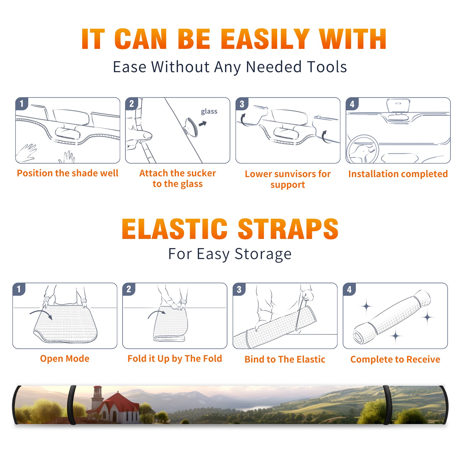 • Diameter /Size 63"L x 33.5"W Made from excellent materials which makes it sturdy and protects the car from the sun. Easy to use and pack. Makes the interior of the car cooler.You can easily stash the sunshade in the storage bag or store long term.It open and closes easy. Also the leather storage bag is durable and easy to put the umbrella back into.This windshield sunshade provides complete coverage and keeps your car interior cool under direct sun. It is easy to open and position under the windshield and around the rear-view mirror. Makes Your Car Easy To Identify, Perfect For Finding Your Car In Crowded Parking Lots And Garages.Great Choice: It Is A Great Gift For Dad, Boyfriend, Brother, Brother And Uncle, Friends, Classmates, Family And So On. Notice: Due To Difference Computer Monitors, The Color Maybe Slightly Different From Picture. As Different Measurement Methods, Measurement Data Will Float Within 2%.I Hope You Understand. If You Have Any Question About The Item Please Do Not Hesitate To Contact Us Immediately And We Will Give You A Satisfactory Reply Within 24 Hours.