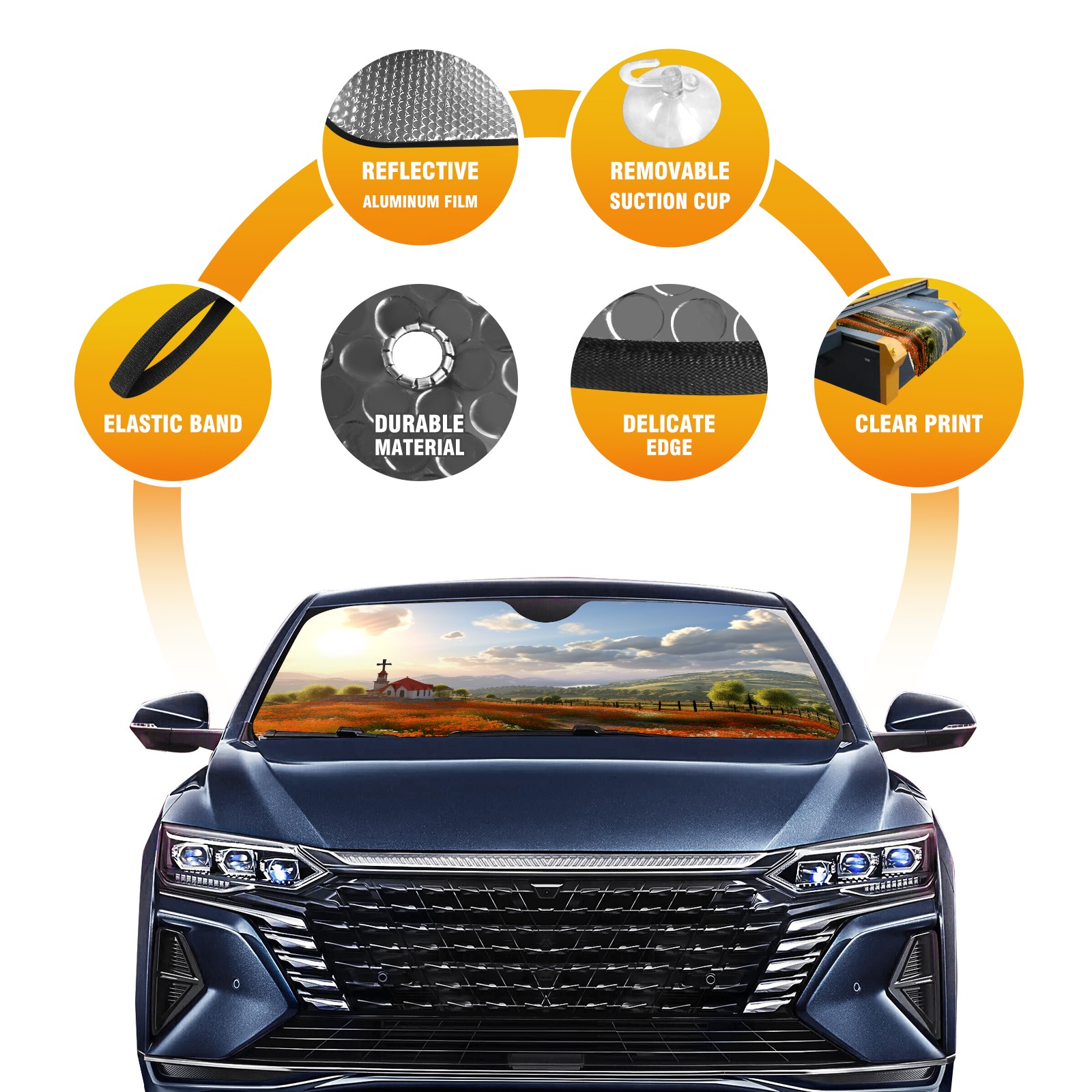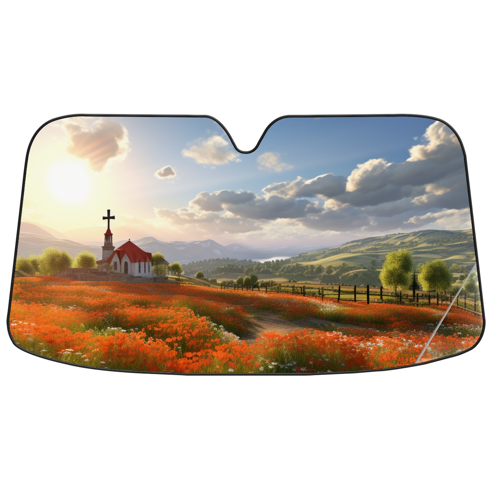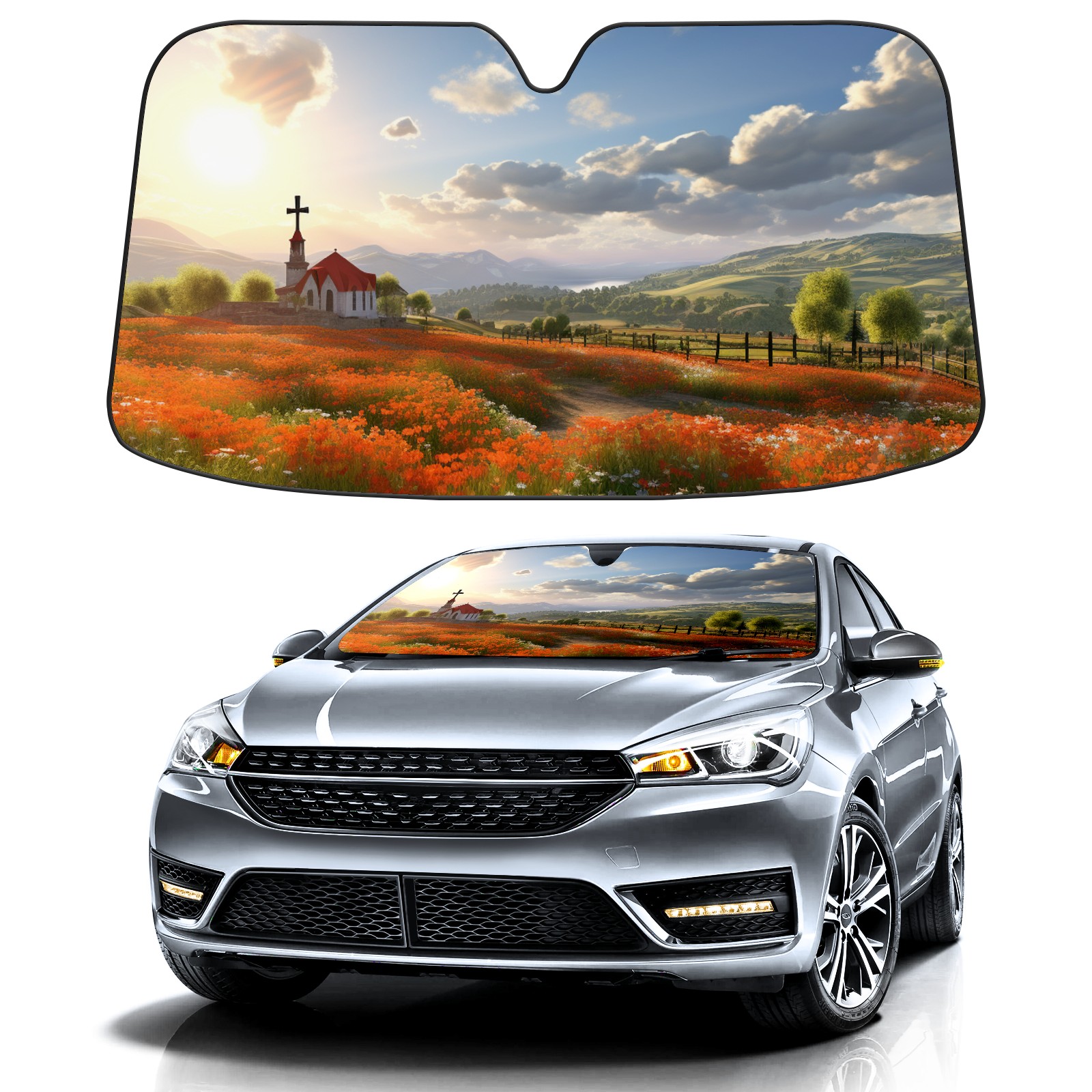 Car Windshield Sun Shade For Front Window Green Valley Foldable Vehicle Windshield Car Sun Visor Covers Automotive Window Protector Car Camping Privacy Sun Blocker