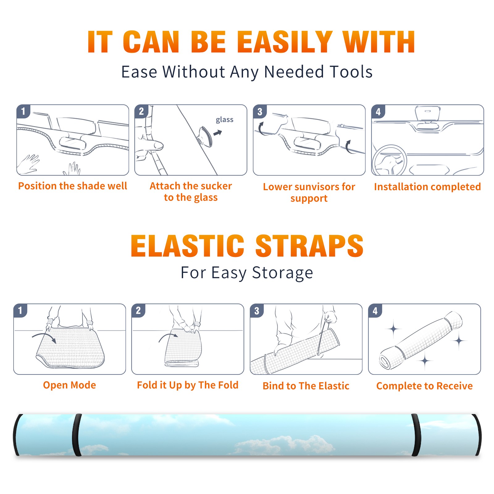 • Diameter /Size 63"L x 33.5"W Made from excellent materials which makes it sturdy and protects the car from the sun. Easy to use and pack. Makes the interior of the car cooler.You can easily stash the sunshade in the storage bag or store long term.It open and closes easy. Also the leather storage bag is durable and easy to put the umbrella back into.This windshield sunshade provides complete coverage and keeps your car interior cool under direct sun. It is easy to open and position under the windshield and around the rear-view mirror. Makes Your Car Easy To Identify, Perfect For Finding Your Car In Crowded Parking Lots And Garages.Great Choice: It Is A Great Gift For Dad, Boyfriend, Brother, Brother And Uncle, Friends, Classmates, Family And So On. Notice: Due To Difference Computer Monitors, The Color Maybe Slightly Different From Picture. As Different Measurement Methods, Measurement Data Will Float Within 2%.I Hope You Understand. If You Have Any Question About The Item Please Do Not Hesitate To Contact Us Immediately And We Will Give You A Satisfactory Reply Within 24 Hours.