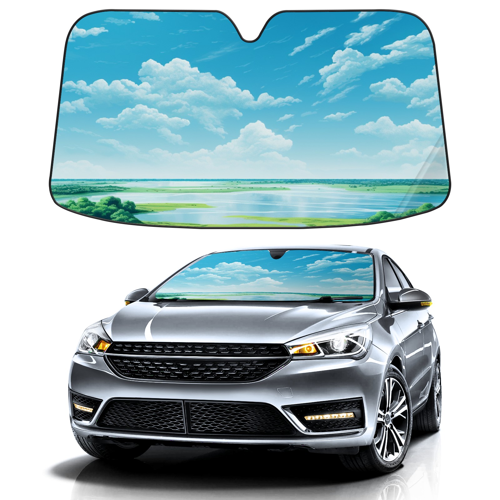 Car Windshield Sun Shade For Front Window Grassland2 Foldable Vehicle Windshield Car Sun Visor Covers Automotive Window Protector Car Camping Privacy Sun Blocker