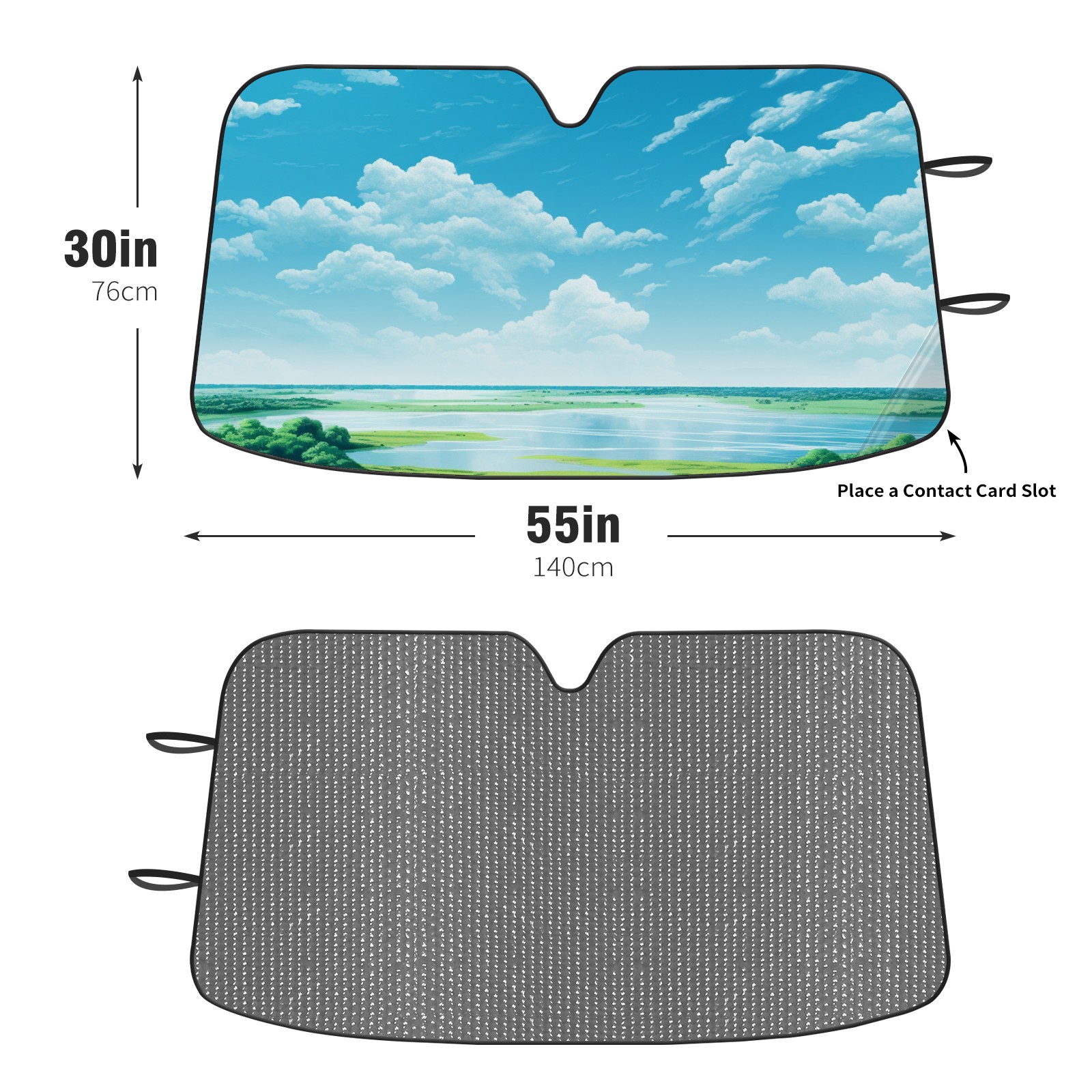 Diameter /Size 63"L x 33.5"W Made from excellent materials which makes it sturdy and protects the car from the sun. Easy to use and pack. Makes the interior of the car cooler.You can easily stash the sunshade in the storage bag or store long term.It open and closes easy. Also the leather storage bag is durable and easy to put the umbrella back into.This windshield sunshade provides complete coverage and keeps your car interior cool under direct sun. It is easy to open and position under the windshield and around the rear-view mirror. Makes Your Car Easy To Identify, Perfect For Finding Your Car In Crowded Parking Lots And Garages.Great Choice: It Is A Great Gift For Dad, Boyfriend, Brother, Brother And Uncle, Friends, Classmates, Family And So On. Notice: Due To Difference Computer Monitors, The Color Maybe Slightly Different From Picture. As Different Measurement Methods, Measurement Data Will Float Within 2%.I Hope You Understand. If You Have Any Question About The Item Please Do Not Hesitate To Contact Us Immediately And We Will Give You A Satisfactory Reply Within 24 Hours.