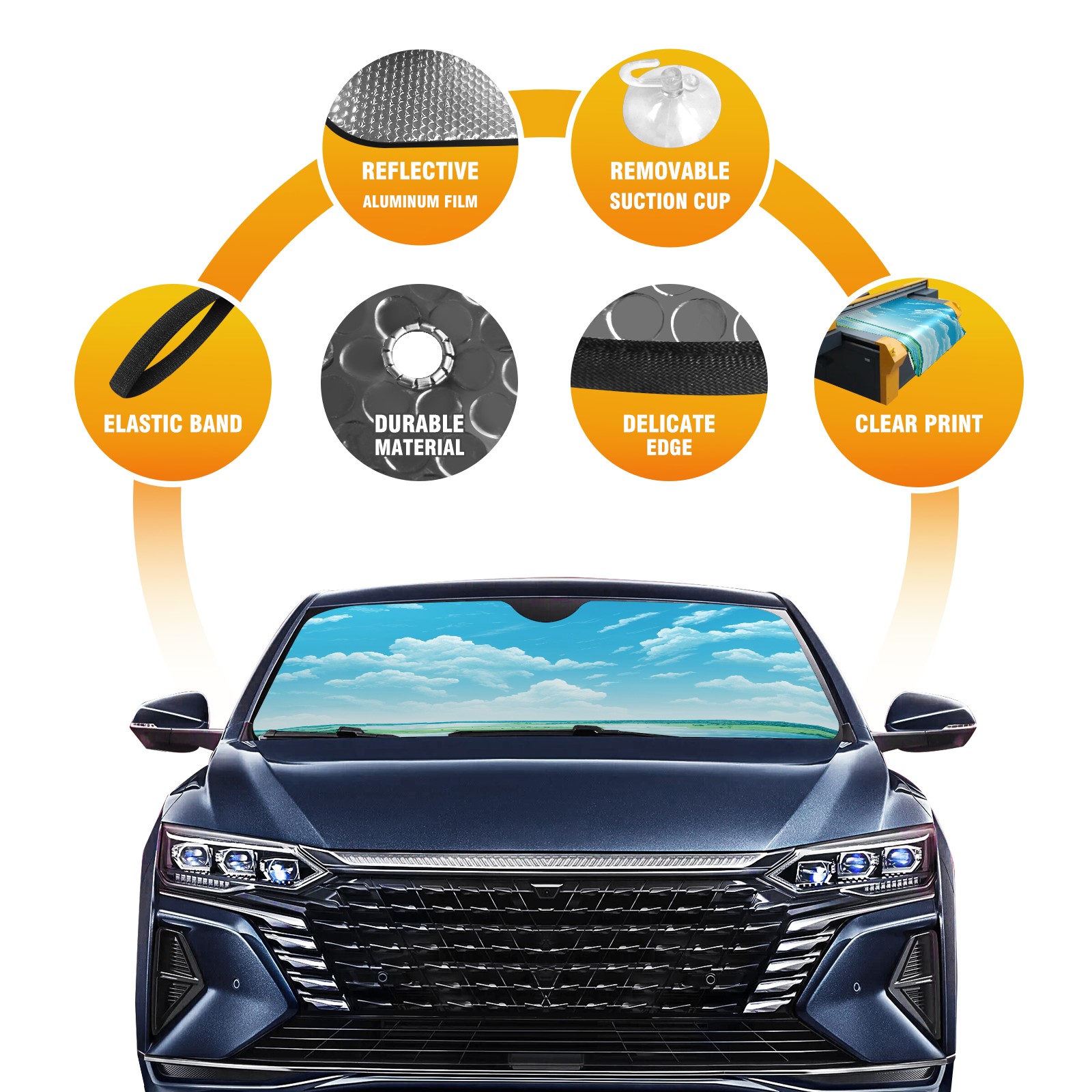 • Diameter /Size 63"L x 33.5"W Made from excellent materials which makes it sturdy and protects the car from the sun. Easy to use and pack. Makes the interior of the car cooler.You can easily stash the sunshade in the storage bag or store long term.It open and closes easy. Also the leather storage bag is durable and easy to put the umbrella back into.This windshield sunshade provides complete coverage and keeps your car interior cool under direct sun. It is easy to open and position under the windshield and around the rear-view mirror. Makes Your Car Easy To Identify, Perfect For Finding Your Car In Crowded Parking Lots And Garages.Great Choice: It Is A Great Gift For Dad, Boyfriend, Brother, Brother And Uncle, Friends, Classmates, Family And So On. Notice: Due To Difference Computer Monitors, The Color Maybe Slightly Different From Picture. As Different Measurement Methods, Measurement Data Will Float Within 2%.I Hope You Understand. If You Have Any Question About The Item Please Do Not Hesitate To Contact Us Immediately And We Will Give You A Satisfactory Reply Within 24 Hours.