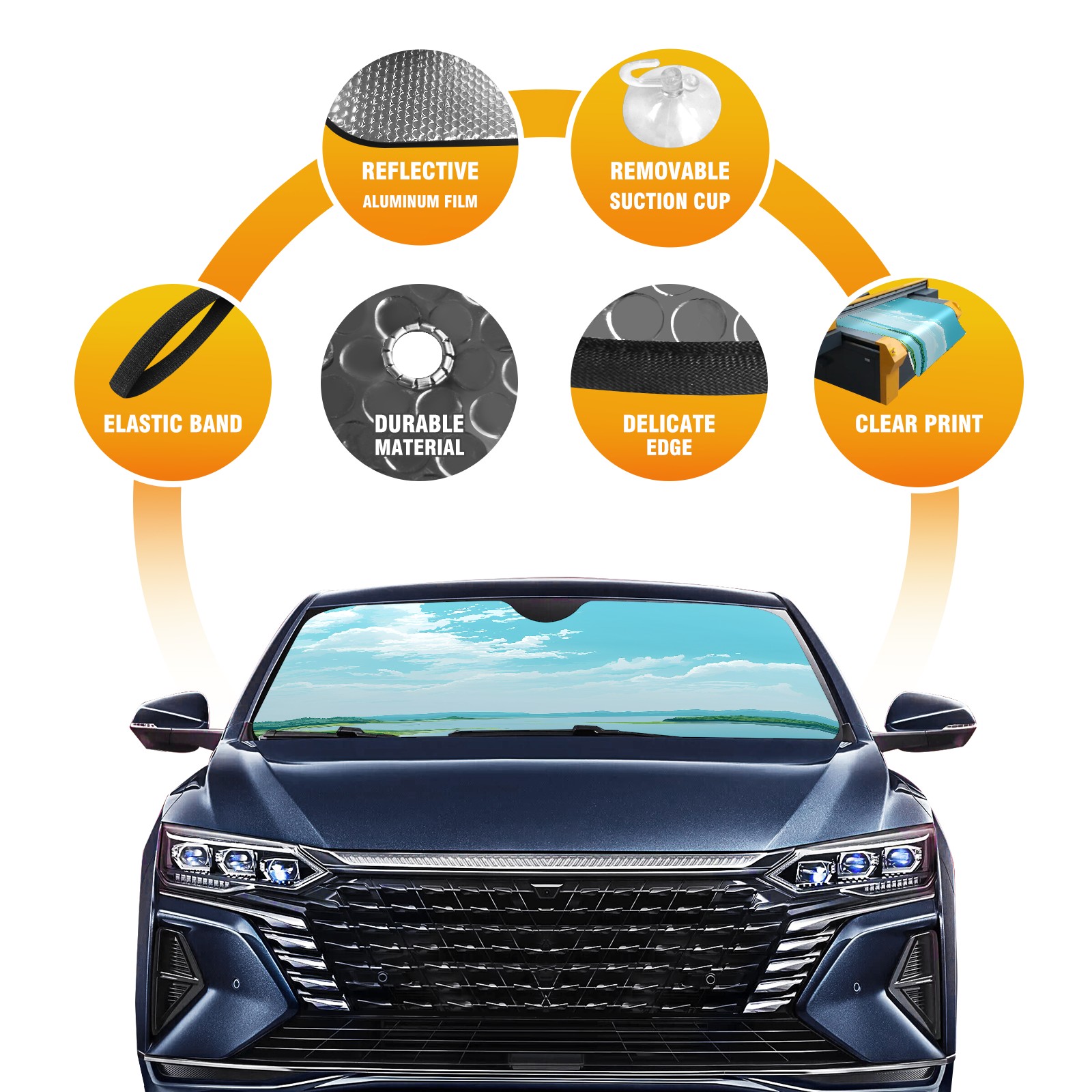 Car Windshield Sun Shade For Front Window Grassland Foldable Vehicle Windshield Car Sun Visor Covers Automotive Window Protector Car Camping Privacy Sun Blocker