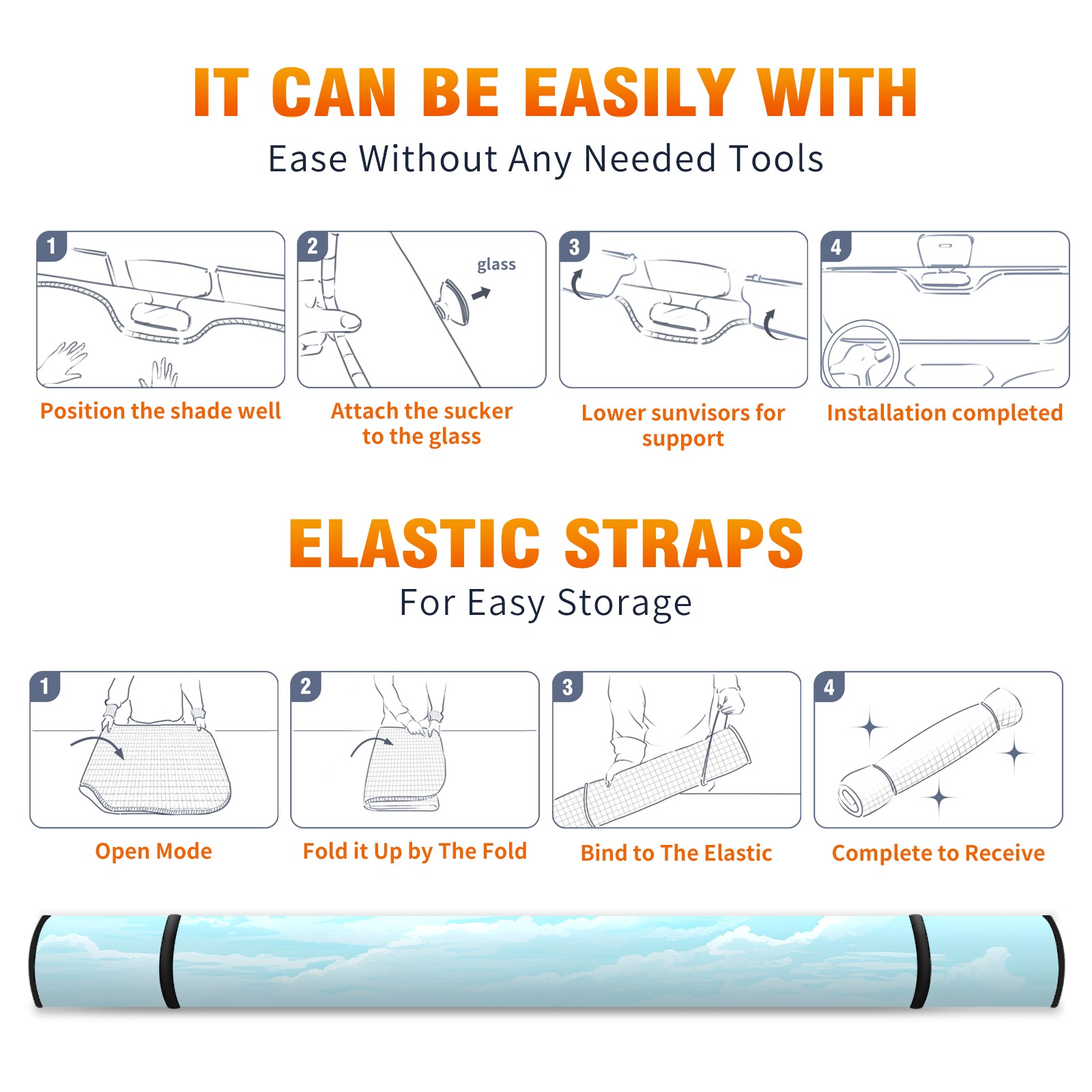 • Diameter /Size 63"L x 33.5"W Made from excellent materials which makes it sturdy and protects the car from the sun. Easy to use and pack. Makes the interior of the car cooler.You can easily stash the sunshade in the storage bag or store long term.It open and closes easy. Also the leather storage bag is durable and easy to put the umbrella back into.This windshield sunshade provides complete coverage and keeps your car interior cool under direct sun. It is easy to open and position under the windshield and around the rear-view mirror. Makes Your Car Easy To Identify, Perfect For Finding Your Car In Crowded Parking Lots And Garages.Great Choice: It Is A Great Gift For Dad, Boyfriend, Brother, Brother And Uncle, Friends, Classmates, Family And So On. Notice: Due To Difference Computer Monitors, The Color Maybe Slightly Different From Picture. As Different Measurement Methods, Measurement Data Will Float Within 2%.I Hope You Understand. If You Have Any Question About The Item Please Do Not Hesitate To Contact Us Immediately And We Will Give You A Satisfactory Reply Within 24 Hours.
