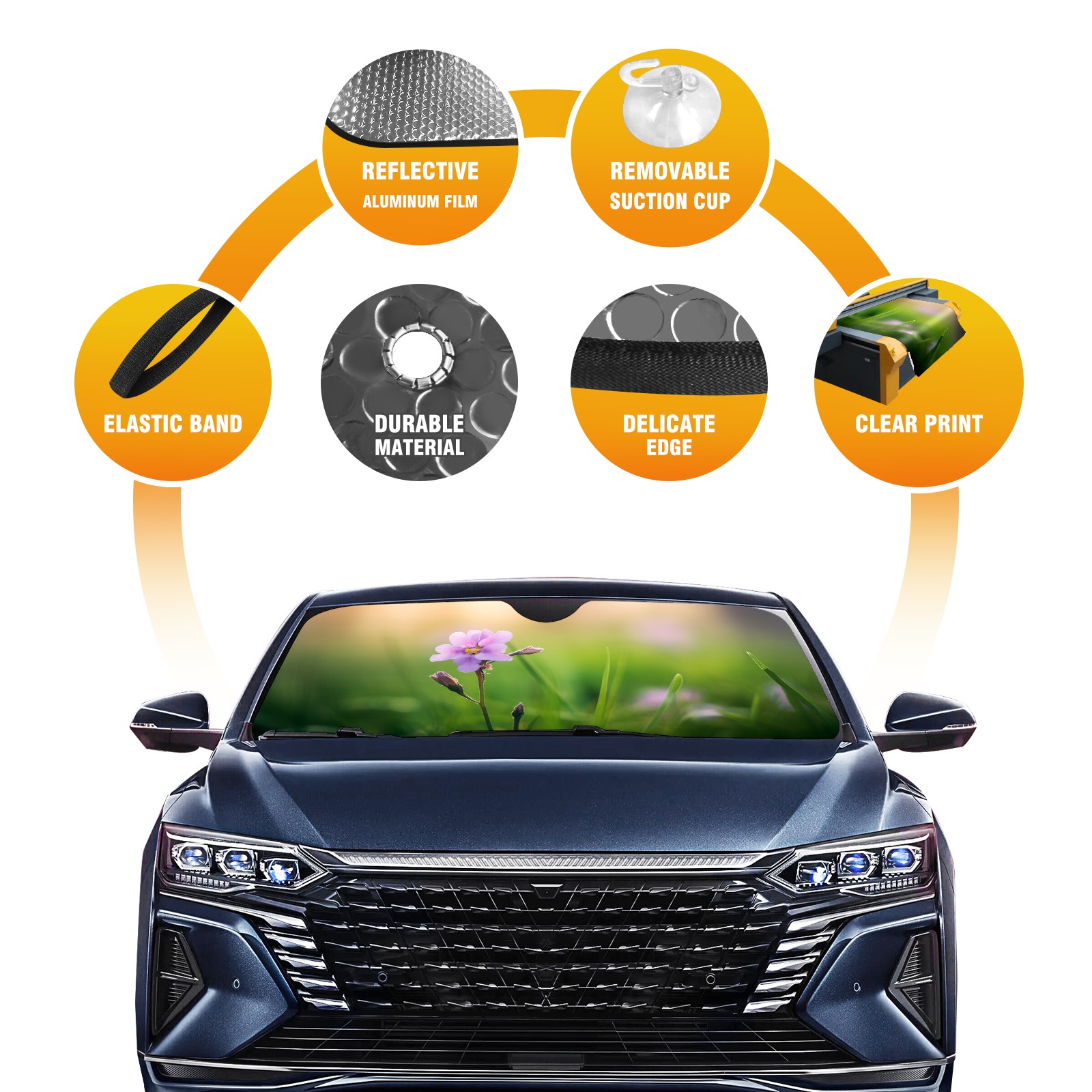 Car Windshield Sun Shade For Front Window Grass3 Foldable Vehicle Windshield Car Sun Visor Covers Automotive Window Protector Car Camping Privacy Sun Blocker