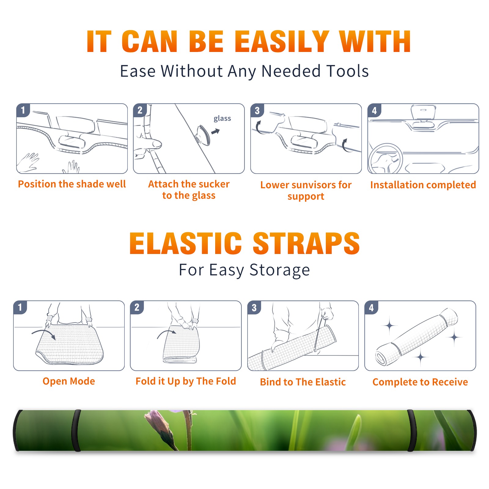 • Diameter /Size 63"L x 33.5"W Made from excellent materials which makes it sturdy and protects the car from the sun. Easy to use and pack. Makes the interior of the car cooler.You can easily stash the sunshade in the storage bag or store long term.It open and closes easy. Also the leather storage bag is durable and easy to put the umbrella back into.This windshield sunshade provides complete coverage and keeps your car interior cool under direct sun. It is easy to open and position under the windshield and around the rear-view mirror. Makes Your Car Easy To Identify, Perfect For Finding Your Car In Crowded Parking Lots And Garages.Great Choice: It Is A Great Gift For Dad, Boyfriend, Brother, Brother And Uncle, Friends, Classmates, Family And So On. Notice: Due To Difference Computer Monitors, The Color Maybe Slightly Different From Picture. As Different Measurement Methods, Measurement Data Will Float Within 2%.I Hope You Understand. If You Have Any Question About The Item Please Do Not Hesitate To Contact Us Immediately And We Will Give You A Satisfactory Reply Within 24 Hours.