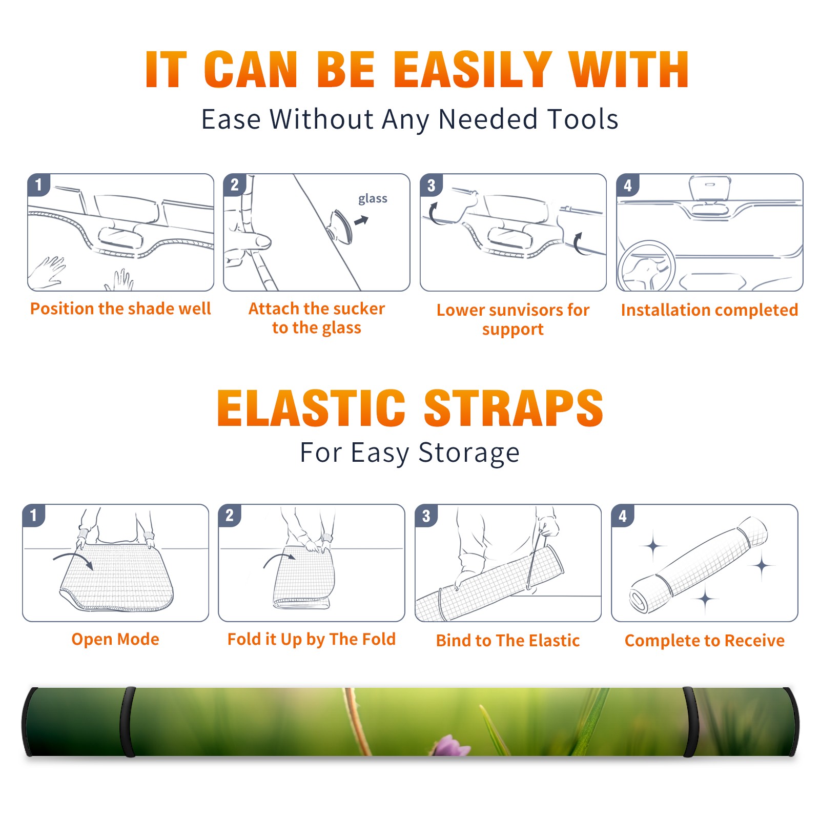 Car Windshield Sun Shade For Front Window Grass1 Foldable Vehicle Windshield Car Sun Visor Covers Automotive Window Protector Car Camping Privacy Sun Blocker