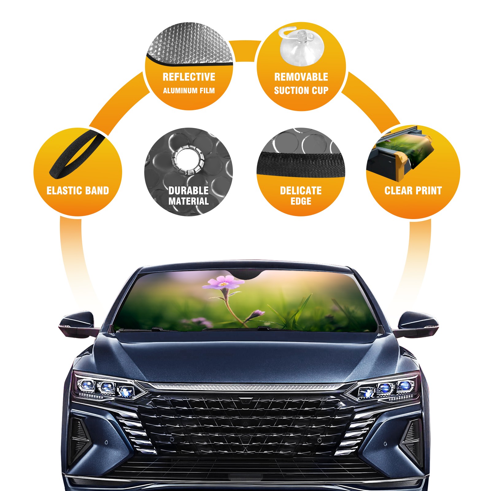 Diameter /Size 63"L x 33.5"W Made from excellent materials which makes it sturdy and protects the car from the sun. Easy to use and pack. Makes the interior of the car cooler.You can easily stash the sunshade in the storage bag or store long term.It open and closes easy. Also the leather storage bag is durable and easy to put the umbrella back into.This windshield sunshade provides complete coverage and keeps your car interior cool under direct sun. It is easy to open and position under the windshield and around the rear-view mirror. Makes Your Car Easy To Identify, Perfect For Finding Your Car In Crowded Parking Lots And Garages.Great Choice: It Is A Great Gift For Dad, Boyfriend, Brother, Brother And Uncle, Friends, Classmates, Family And So On. Notice: Due To Difference Computer Monitors, The Color Maybe Slightly Different From Picture. As Different Measurement Methods, Measurement Data Will Float Within 2%.I Hope You Understand. If You Have Any Question About The Item Please Do Not Hesitate To Contact Us Immediately And We Will Give You A Satisfactory Reply Within 24 Hours.