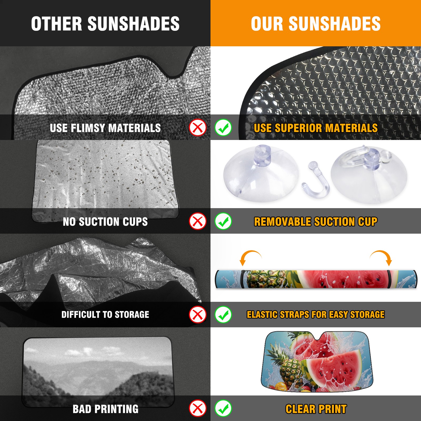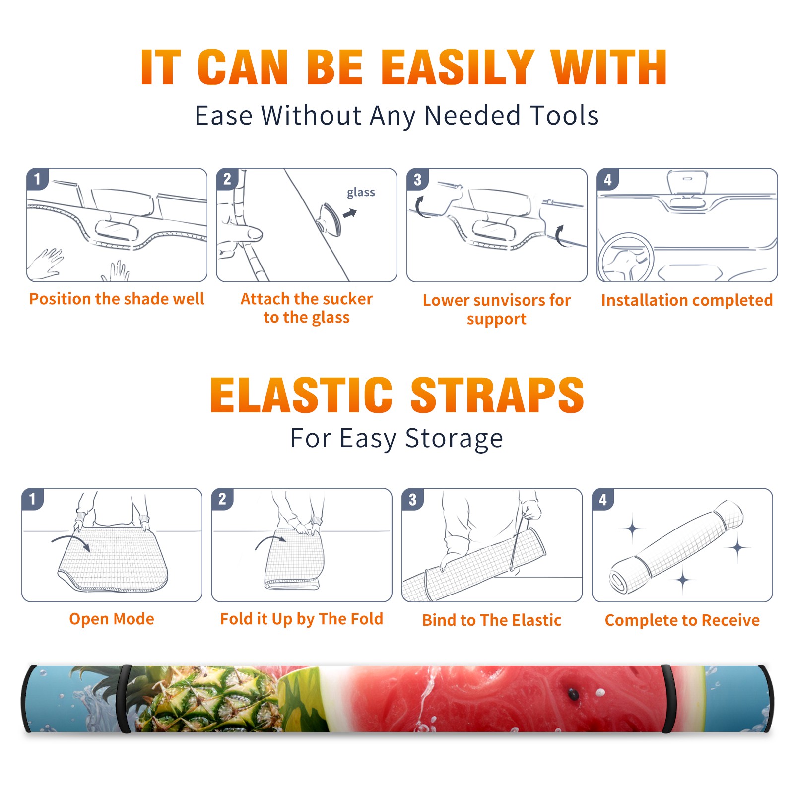 Car Windshield Sun Shade For Front Window Fruit3 Foldable Vehicle Windshield Car Sun Visor Covers Automotive Window Protector Car Camping Privacy Sun Blocker