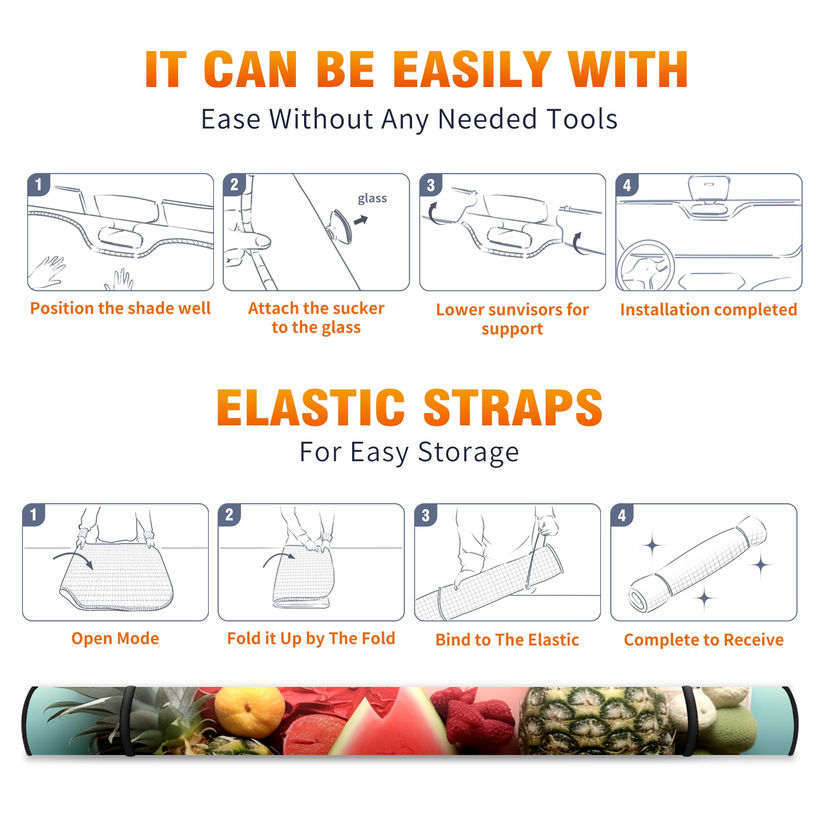 Car Windshield Sun Shade For Front Window Fruit1 Foldable Vehicle Windshield Car Sun Visor Covers Automotive Window Protector Car Camping Privacy Sun Blocker