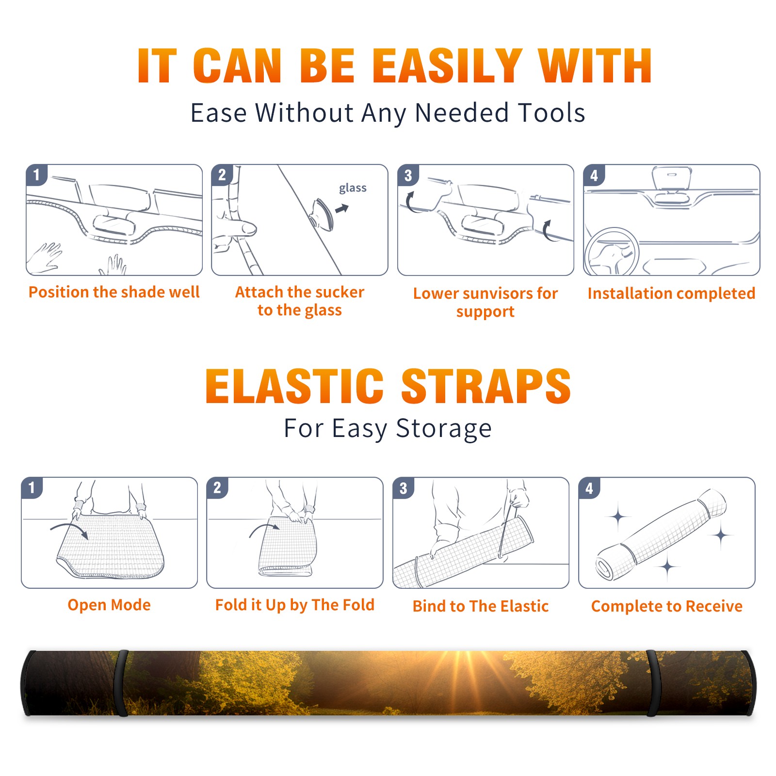 • Diameter /Size 63"L x 33.5"W Made from excellent materials which makes it sturdy and protects the car from the sun. Easy to use and pack. Makes the interior of the car cooler.You can easily stash the sunshade in the storage bag or store long term.It open and closes easy. Also the leather storage bag is durable and easy to put the umbrella back into.This windshield sunshade provides complete coverage and keeps your car interior cool under direct sun. It is easy to open and position under the windshield and around the rear-view mirror. Makes Your Car Easy To Identify, Perfect For Finding Your Car In Crowded Parking Lots And Garages.Great Choice: It Is A Great Gift For Dad, Boyfriend, Brother, Brother And Uncle, Friends, Classmates, Family And So On. Notice: Due To Difference Computer Monitors, The Color Maybe Slightly Different From Picture. As Different Measurement Methods, Measurement Data Will Float Within 2%.I Hope You Understand. If You Have Any Question About The Item Please Do Not Hesitate To Contact Us Immediately And We Will Give You A Satisfactory Reply Within 24 Hours.