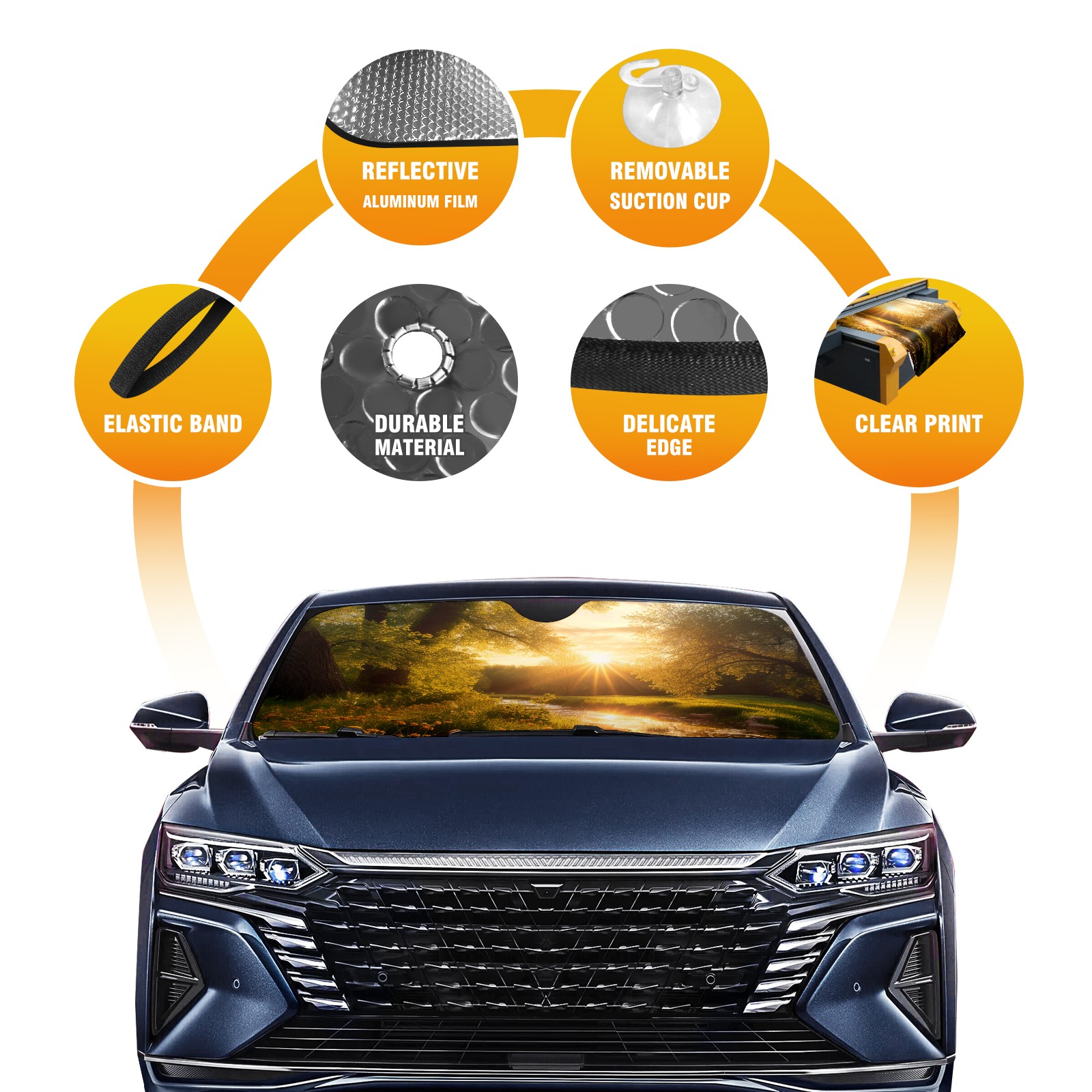 Car Windshield Sun Shade For Front Window Forest4 Foldable Vehicle Windshield Car Sun Visor Covers Automotive Window Protector Car Camping Privacy Sun Blocker