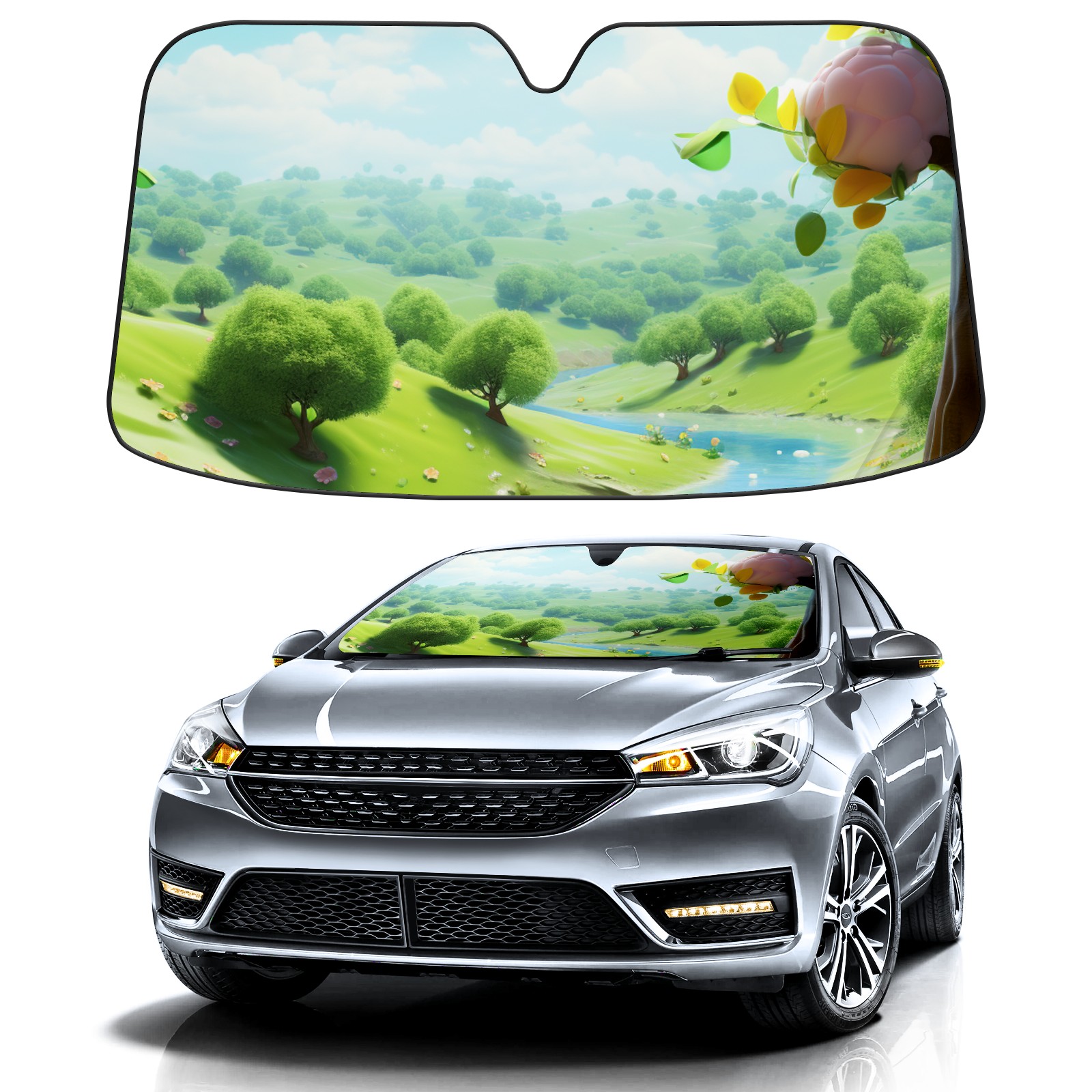Car Windshield Sun Shade For Front Window Forest3 Foldable Vehicle Windshield Car Sun Visor Covers Automotive Window Protector Car Camping Privacy Sun Blocker