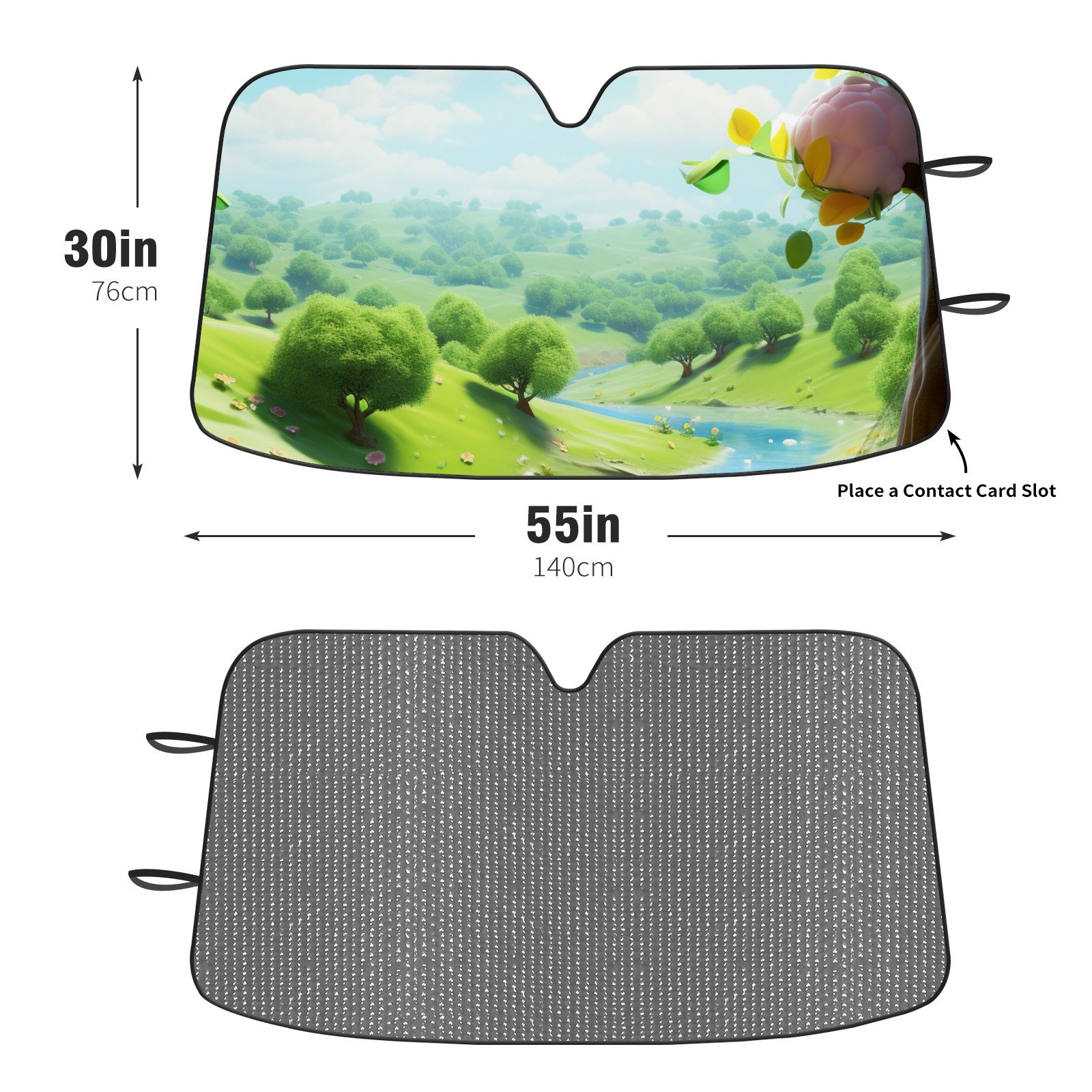 Diameter /Size 63"L x 33.5"W Made from excellent materials which makes it sturdy and protects the car from the sun. Easy to use and pack. Makes the interior of the car cooler.You can easily stash the sunshade in the storage bag or store long term.It open and closes easy. Also the leather storage bag is durable and easy to put the umbrella back into.This windshield sunshade provides complete coverage and keeps your car interior cool under direct sun. It is easy to open and position under the windshield and around the rear-view mirror. Makes Your Car Easy To Identify, Perfect For Finding Your Car In Crowded Parking Lots And Garages.Great Choice: It Is A Great Gift For Dad, Boyfriend, Brother, Brother And Uncle, Friends, Classmates, Family And So On. Notice: Due To Difference Computer Monitors, The Color Maybe Slightly Different From Picture. As Different Measurement Methods, Measurement Data Will Float Within 2%.I Hope You Understand. If You Have Any Question About The Item Please Do Not Hesitate To Contact Us Immediately And We Will Give You A Satisfactory Reply Within 24 Hours.