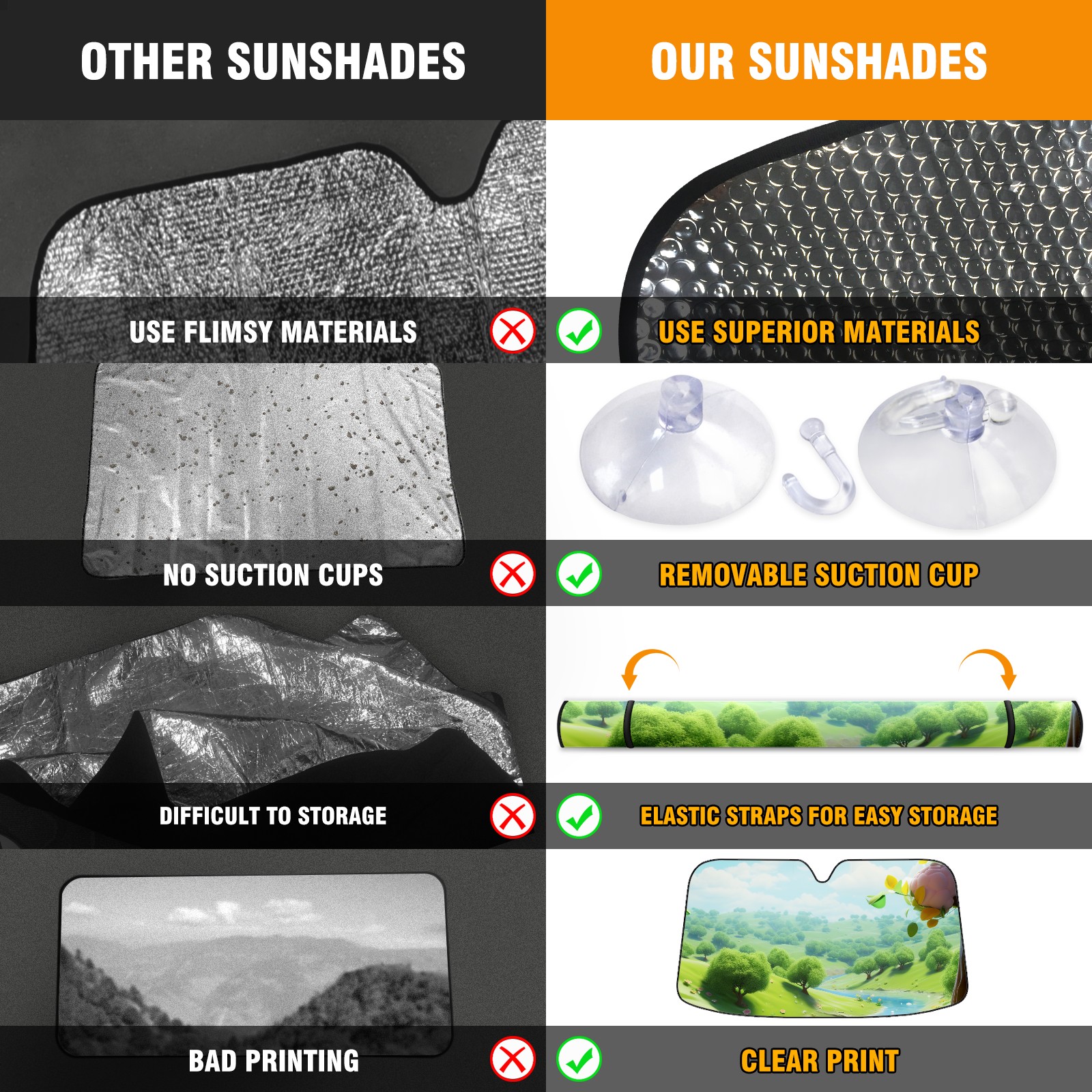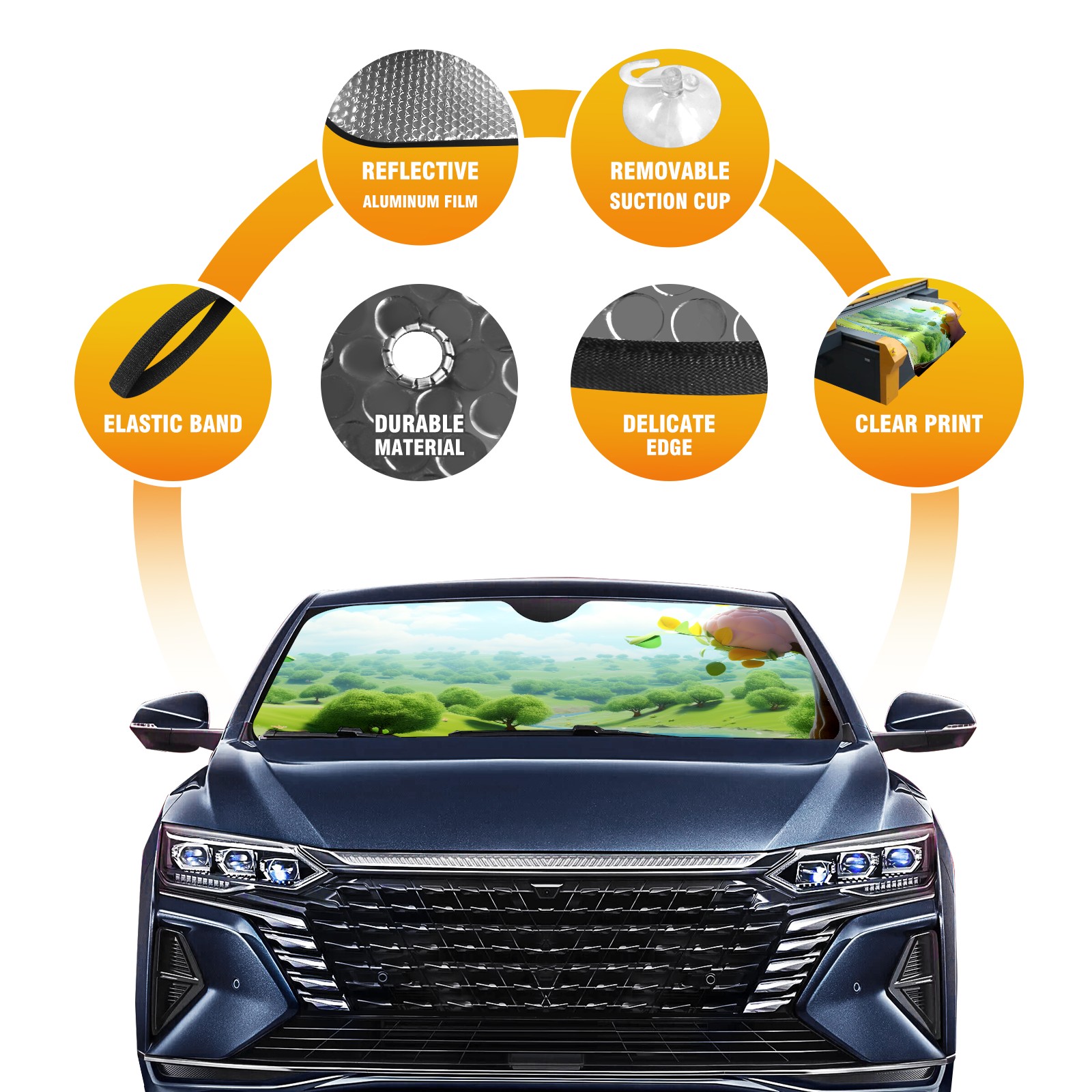 • Diameter /Size 63"L x 33.5"W Made from excellent materials which makes it sturdy and protects the car from the sun. Easy to use and pack. Makes the interior of the car cooler.You can easily stash the sunshade in the storage bag or store long term.It open and closes easy. Also the leather storage bag is durable and easy to put the umbrella back into.This windshield sunshade provides complete coverage and keeps your car interior cool under direct sun. It is easy to open and position under the windshield and around the rear-view mirror. Makes Your Car Easy To Identify, Perfect For Finding Your Car In Crowded Parking Lots And Garages.Great Choice: It Is A Great Gift For Dad, Boyfriend, Brother, Brother And Uncle, Friends, Classmates, Family And So On. Notice: Due To Difference Computer Monitors, The Color Maybe Slightly Different From Picture. As Different Measurement Methods, Measurement Data Will Float Within 2%.I Hope You Understand. If You Have Any Question About The Item Please Do Not Hesitate To Contact Us Immediately And We Will Give You A Satisfactory Reply Within 24 Hours.