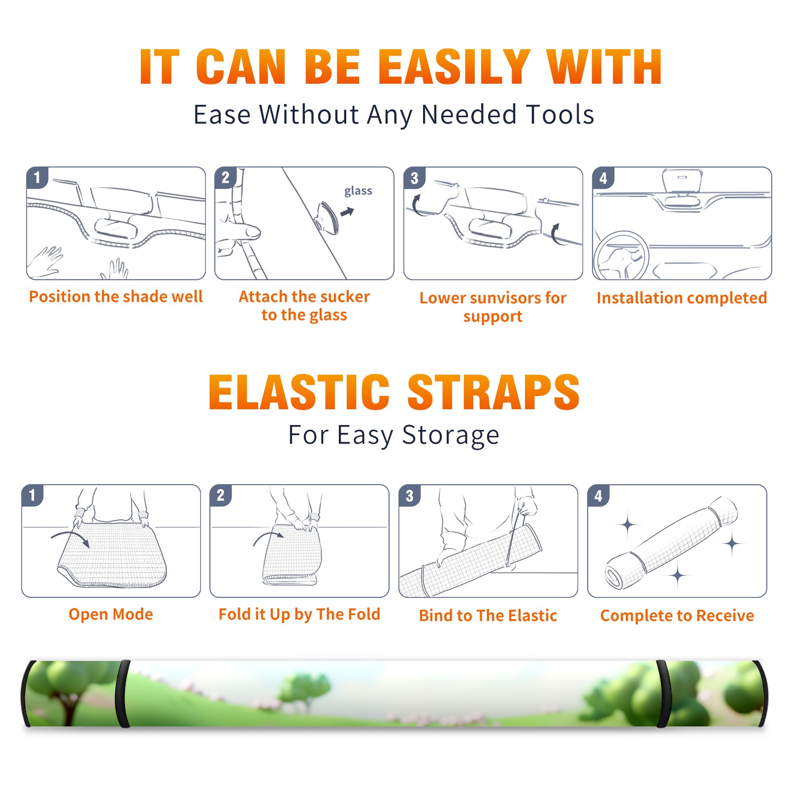 • Diameter /Size 63"L x 33.5"W Made from excellent materials which makes it sturdy and protects the car from the sun. Easy to use and pack. Makes the interior of the car cooler.You can easily stash the sunshade in the storage bag or store long term.It open and closes easy. Also the leather storage bag is durable and easy to put the umbrella back into.This windshield sunshade provides complete coverage and keeps your car interior cool under direct sun. It is easy to open and position under the windshield and around the rear-view mirror. Makes Your Car Easy To Identify, Perfect For Finding Your Car In Crowded Parking Lots And Garages.Great Choice: It Is A Great Gift For Dad, Boyfriend, Brother, Brother And Uncle, Friends, Classmates, Family And So On. Notice: Due To Difference Computer Monitors, The Color Maybe Slightly Different From Picture. As Different Measurement Methods, Measurement Data Will Float Within 2%.I Hope You Understand. If You Have Any Question About The Item Please Do Not Hesitate To Contact Us Immediately And We Will Give You A Satisfactory Reply Within 24 Hours.