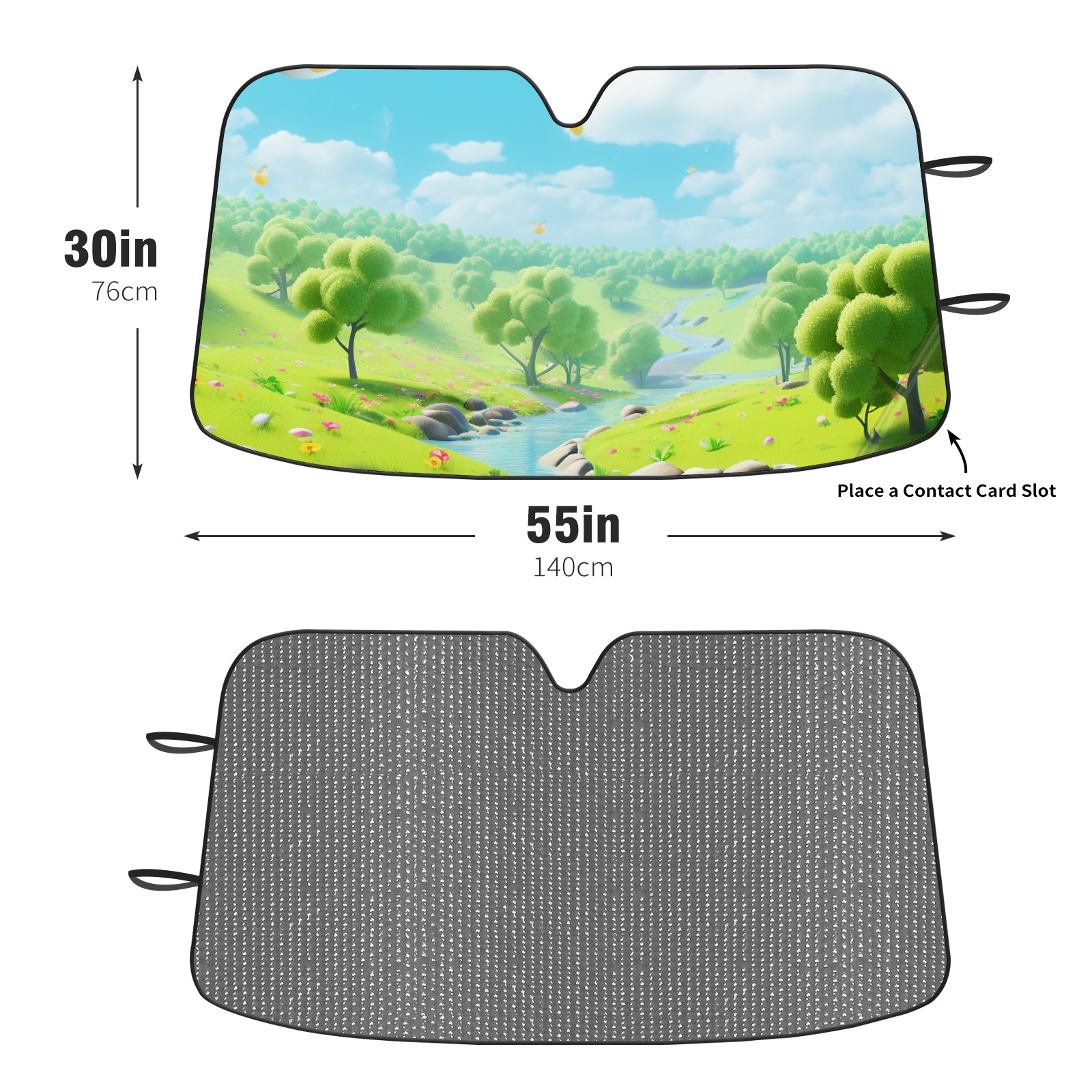 Diameter /Size 63"L x 33.5"W Made from excellent materials which makes it sturdy and protects the car from the sun. Easy to use and pack. Makes the interior of the car cooler.You can easily stash the sunshade in the storage bag or store long term.It open and closes easy. Also the leather storage bag is durable and easy to put the umbrella back into.This windshield sunshade provides complete coverage and keeps your car interior cool under direct sun. It is easy to open and position under the windshield and around the rear-view mirror. Makes Your Car Easy To Identify, Perfect For Finding Your Car In Crowded Parking Lots And Garages.Great Choice: It Is A Great Gift For Dad, Boyfriend, Brother, Brother And Uncle, Friends, Classmates, Family And So On. Notice: Due To Difference Computer Monitors, The Color Maybe Slightly Different From Picture. As Different Measurement Methods, Measurement Data Will Float Within 2%.I Hope You Understand. If You Have Any Question About The Item Please Do Not Hesitate To Contact Us Immediately And We Will Give You A Satisfactory Reply Within 24 Hours.