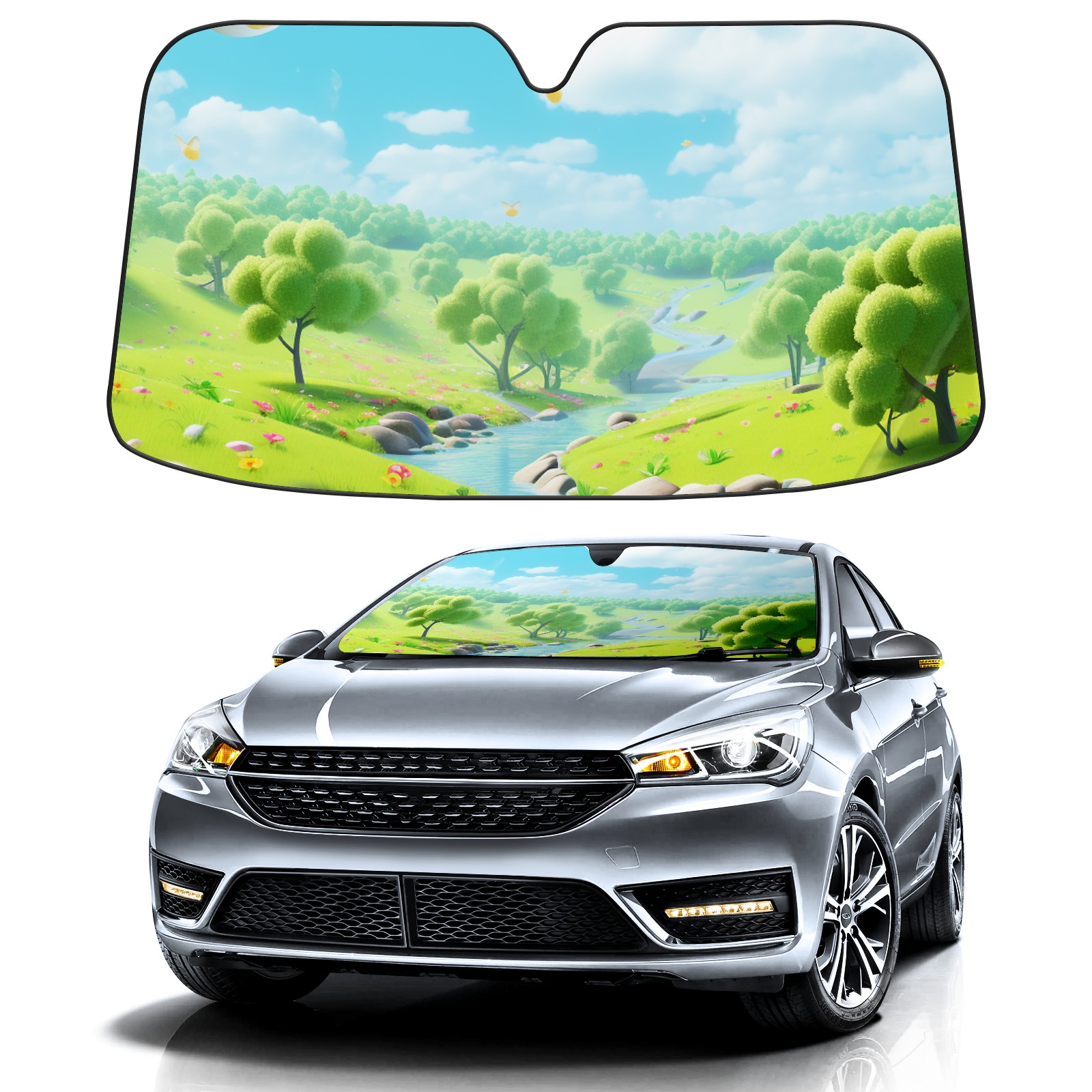 Car Windshield Sun Shade For Front Window Forest Foldable Vehicle Windshield Car Sun Visor Covers Automotive Window Protector Car Camping Privacy Sun Blocker
