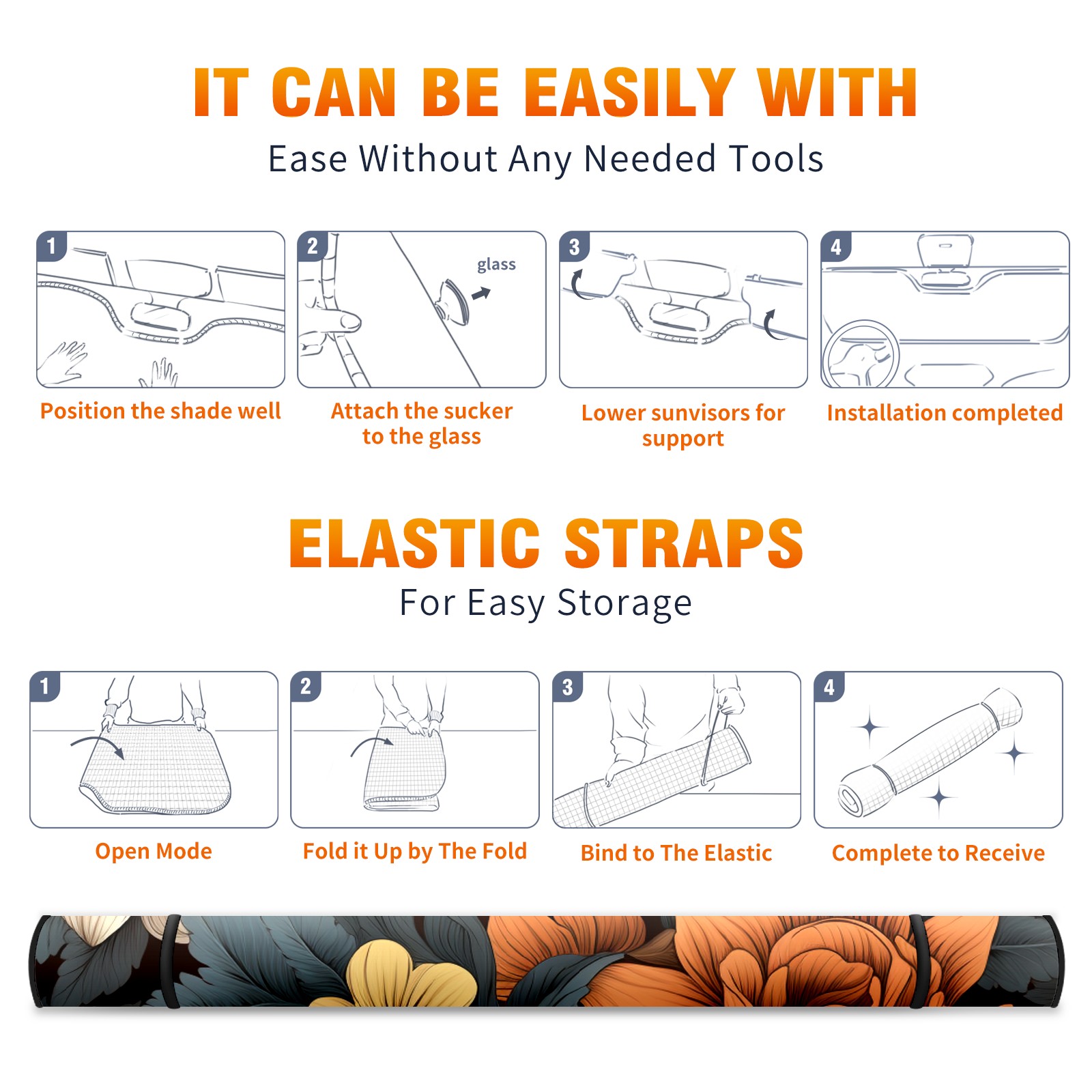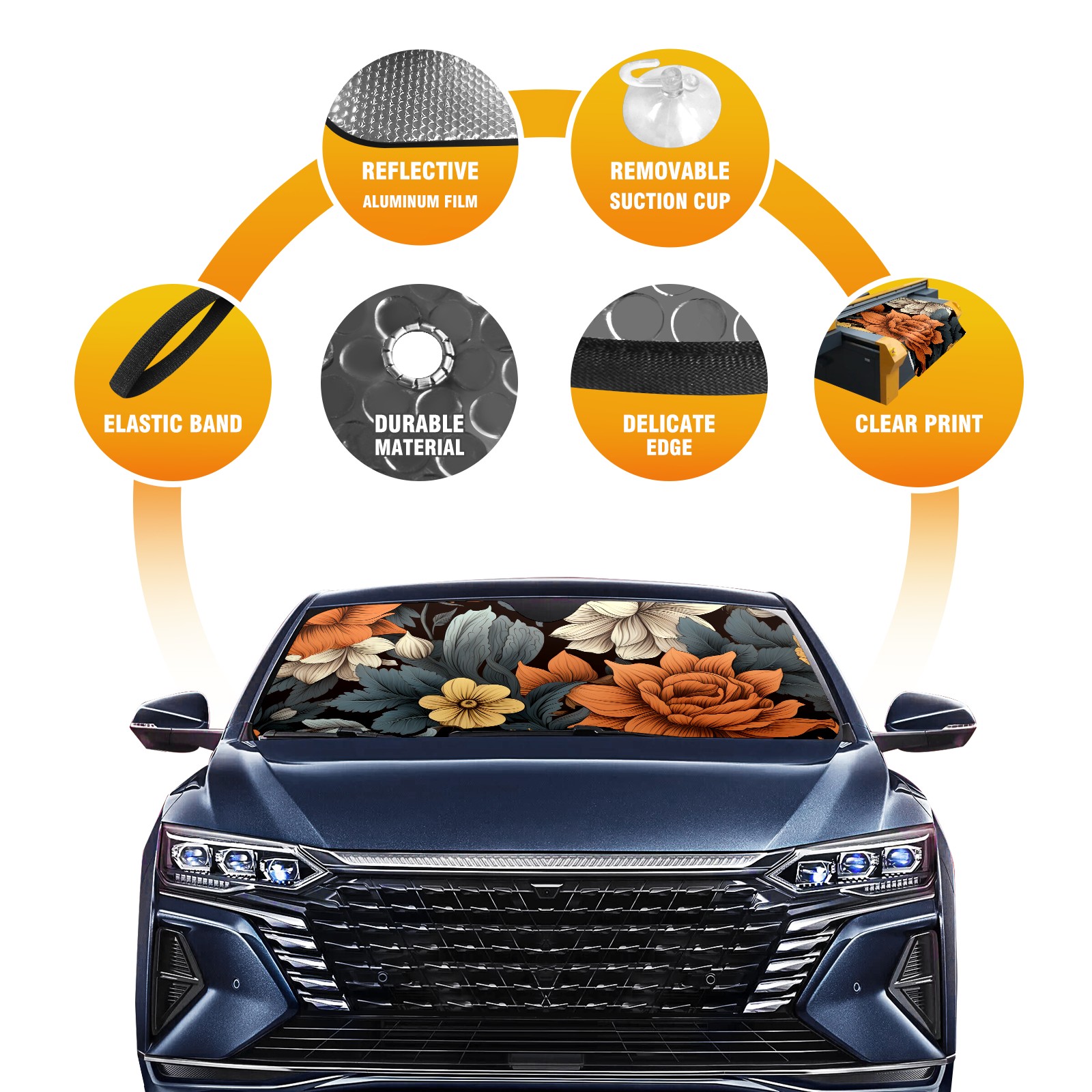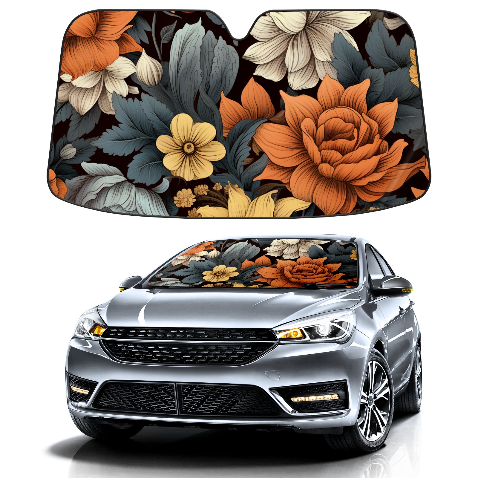 Car Windshield Sun Shade For Front Window Flower22 Foldable Vehicle Windshield Car Sun Visor Covers Automotive Window Protector Car Camping Privacy Sun Blocker
