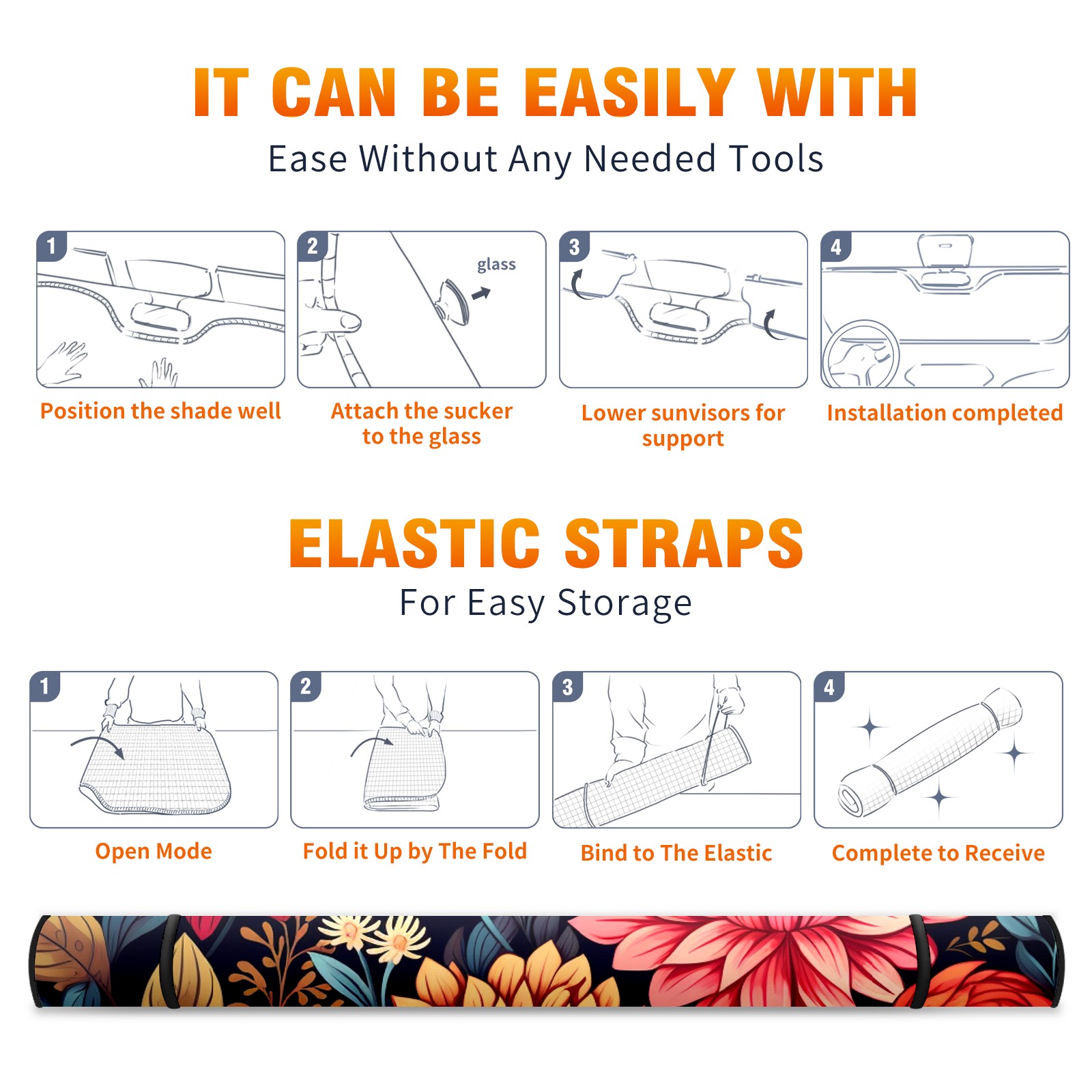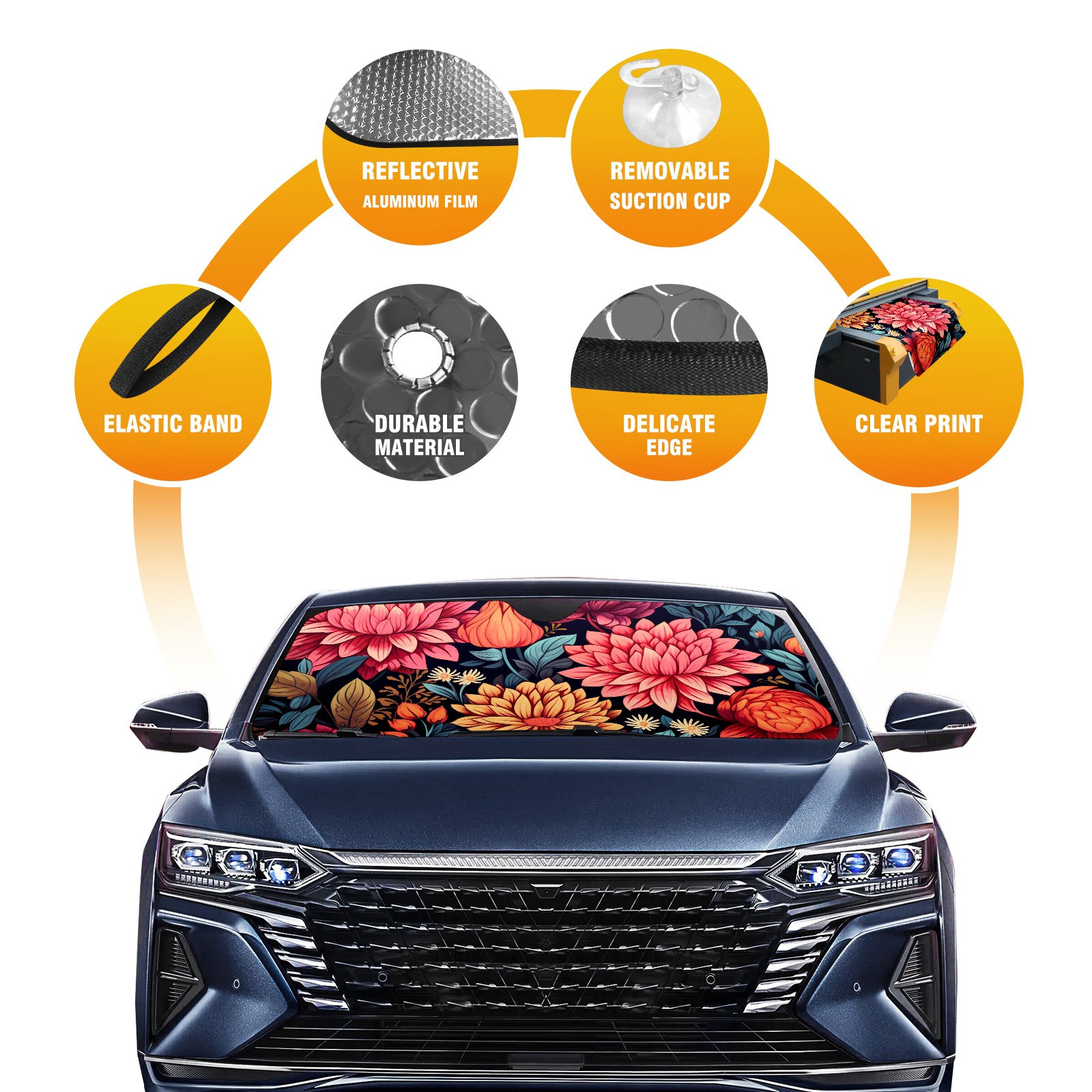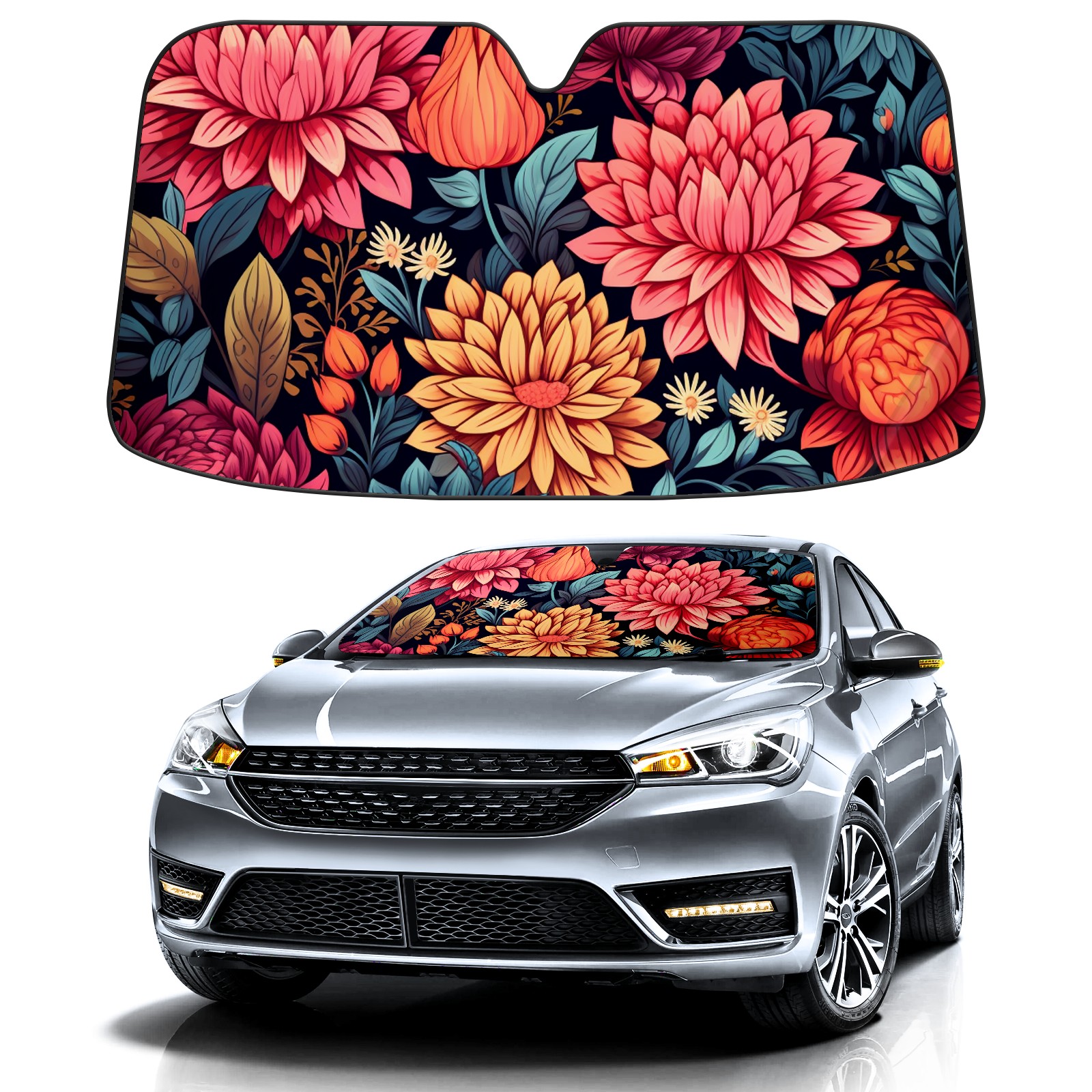 Car Windshield Sun Shade For Front Window Flower23 Foldable Vehicle Windshield Car Sun Visor Covers Automotive Window Protector Car Camping Privacy Sun Blocker