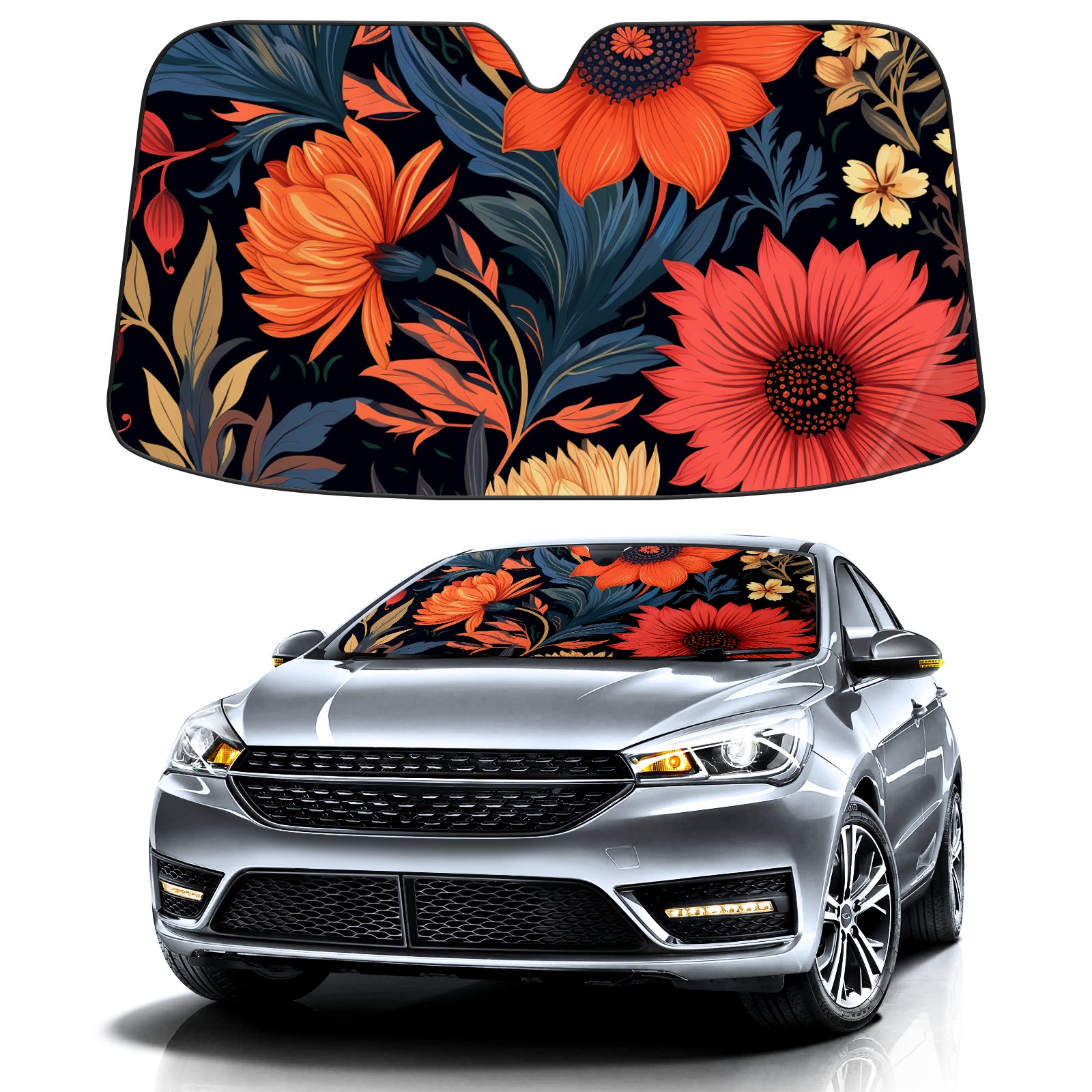 Car Windshield Sun Shade For Front Window Flower21 Foldable Vehicle Windshield Car Sun Visor Covers Automotive Window Protector Car Camping Privacy Sun Blocker