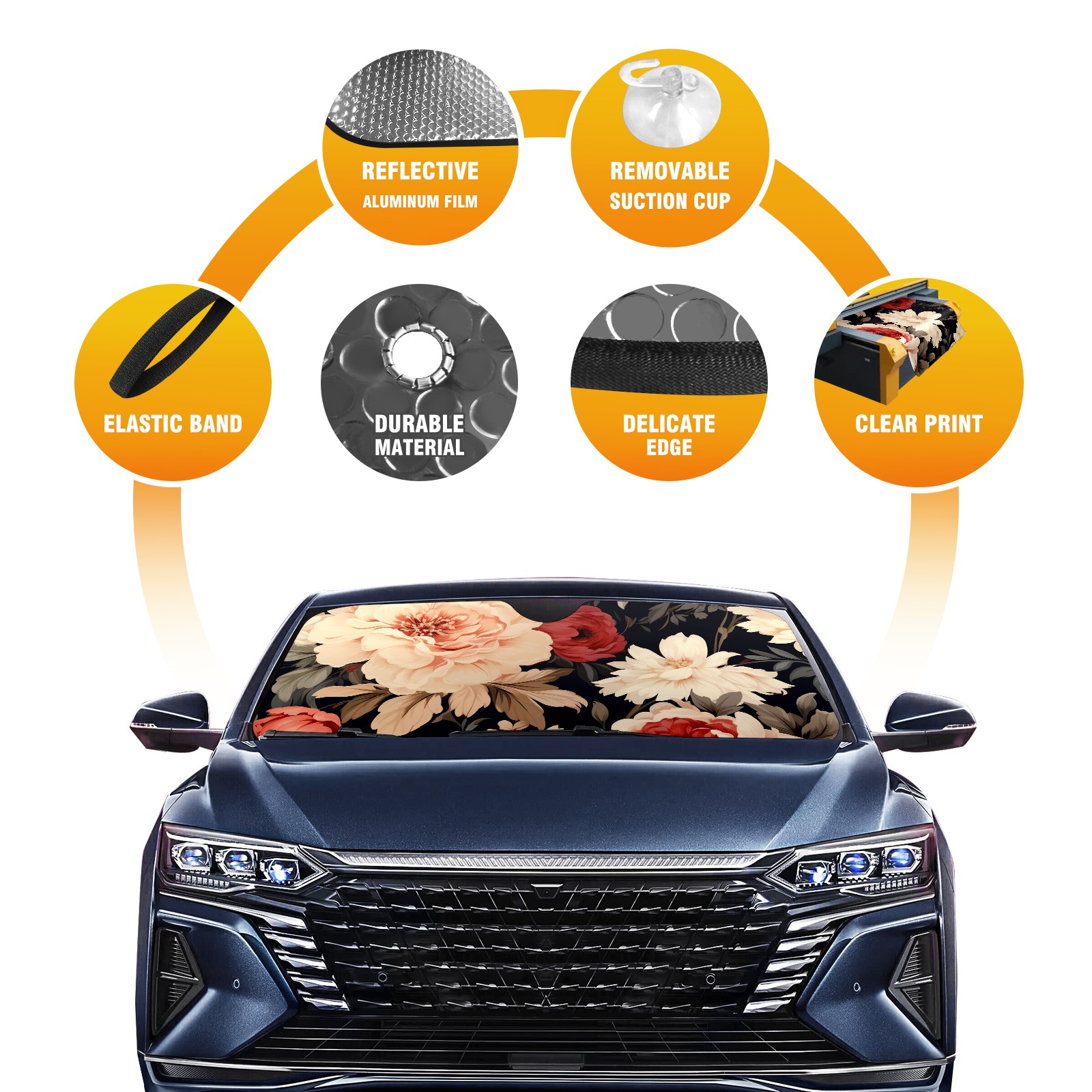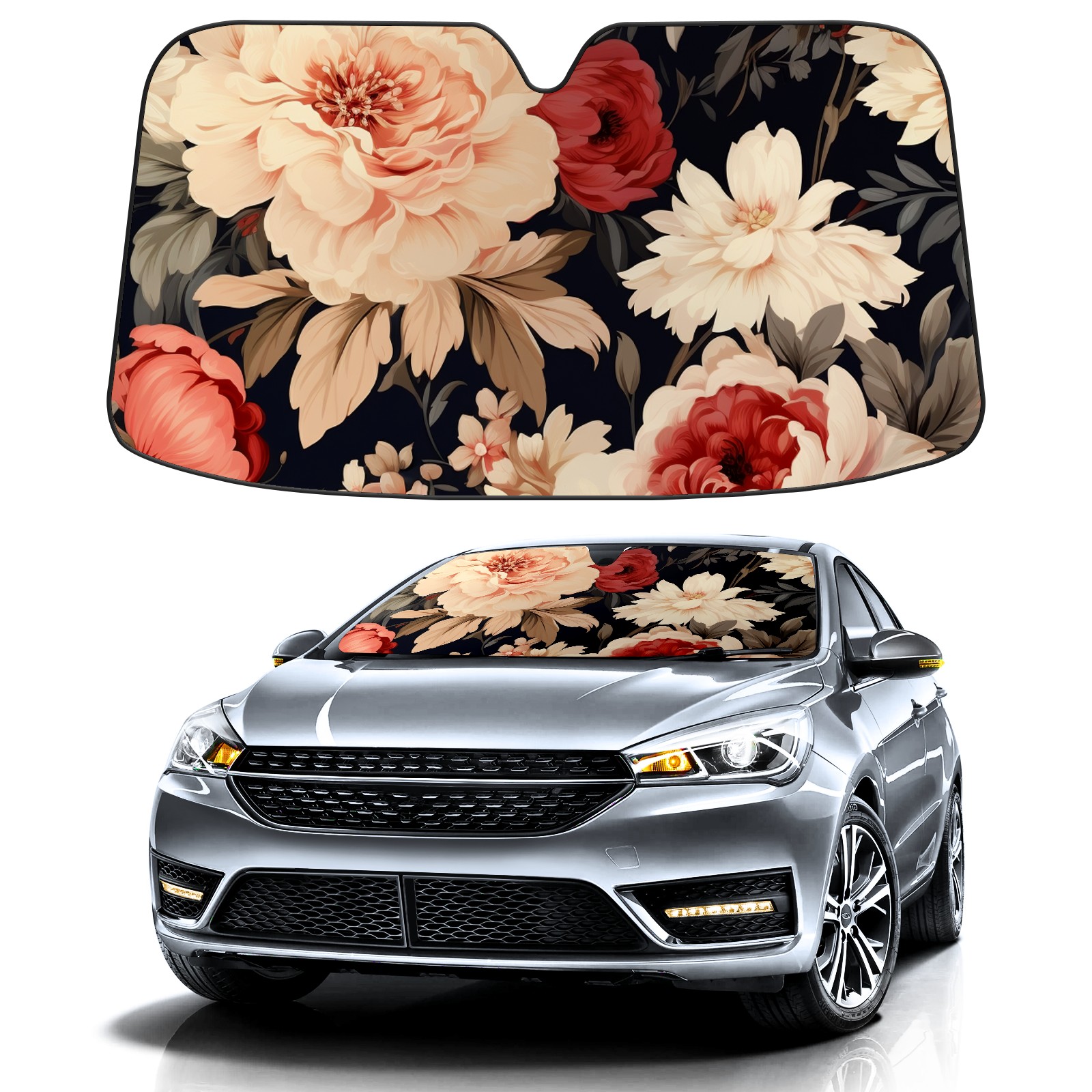Car Windshield Sun Shade For Front Window Flower13 Foldable Vehicle Windshield Car Sun Visor Covers Automotive Window Protector Car Camping Privacy Sun Blocker