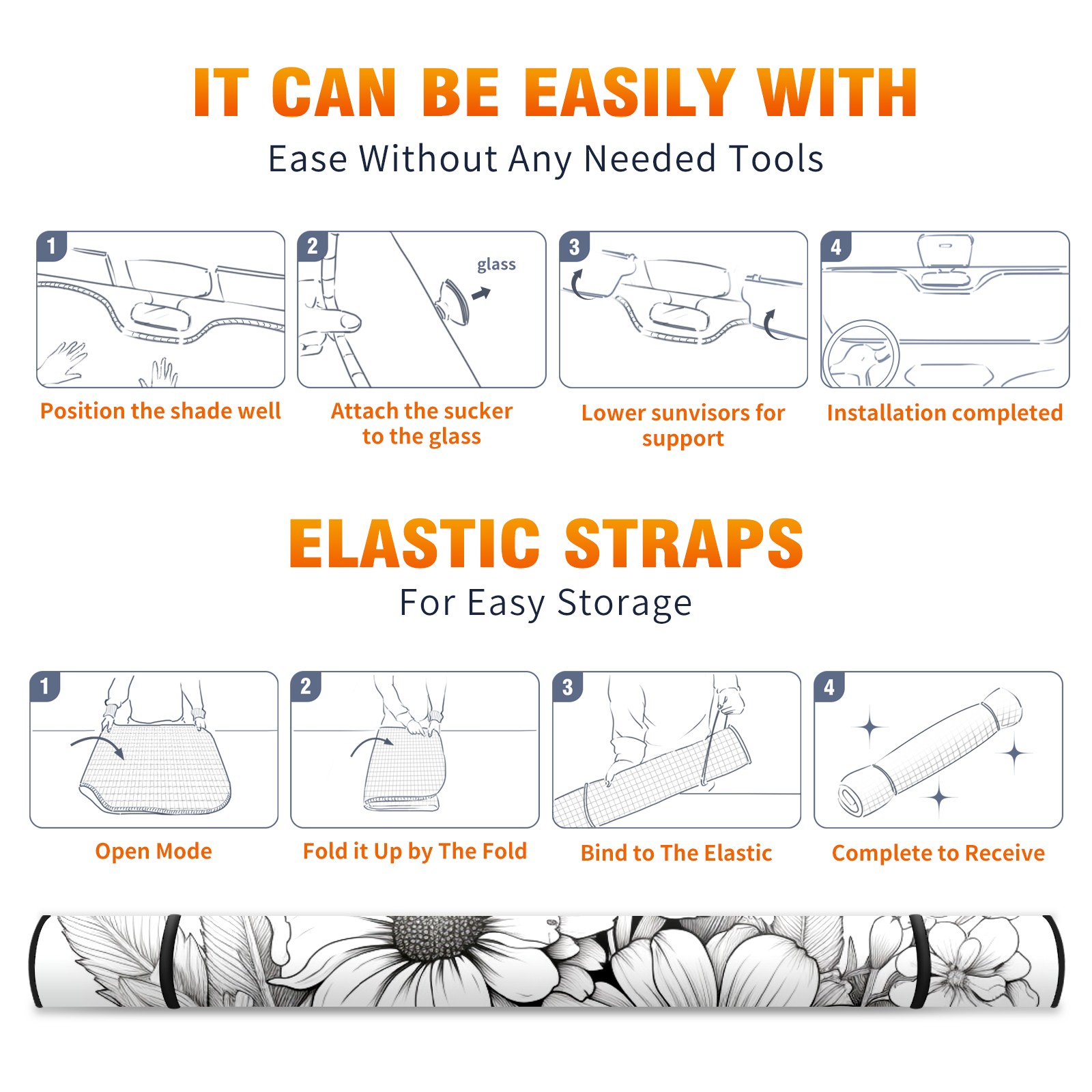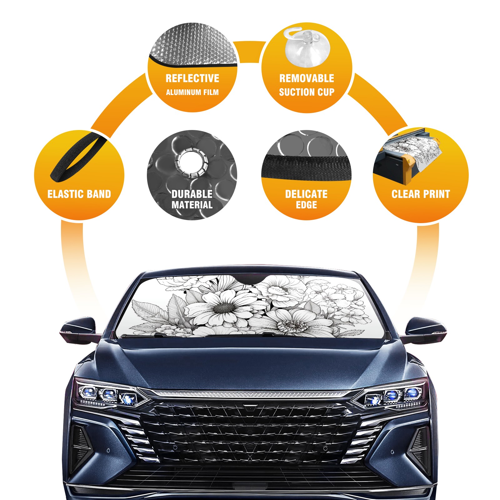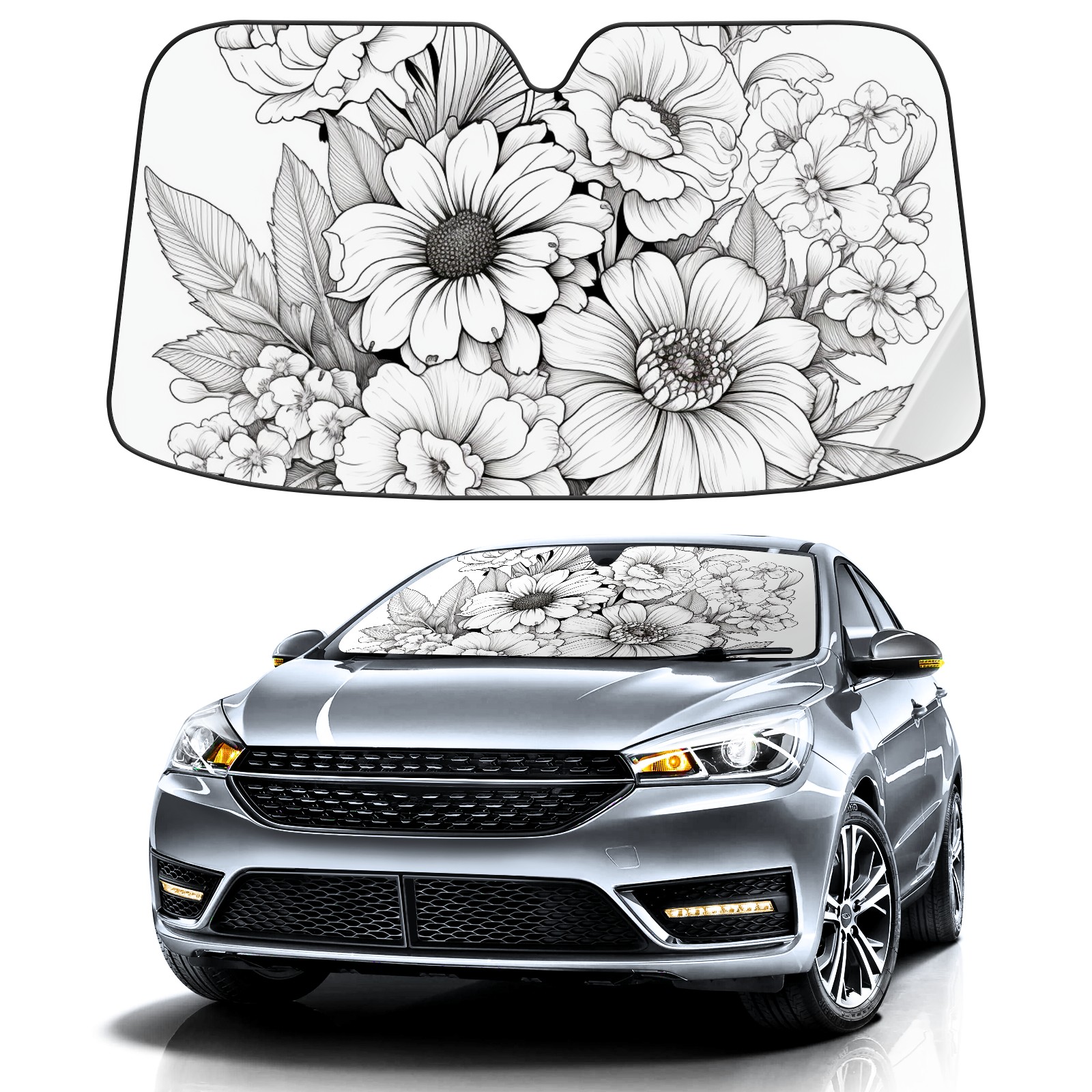 Car Windshield Sun Shade For Front Window Flower8 Foldable Vehicle Windshield Car Sun Visor Covers Automotive Window Protector Car Camping Privacy Sun Blocker