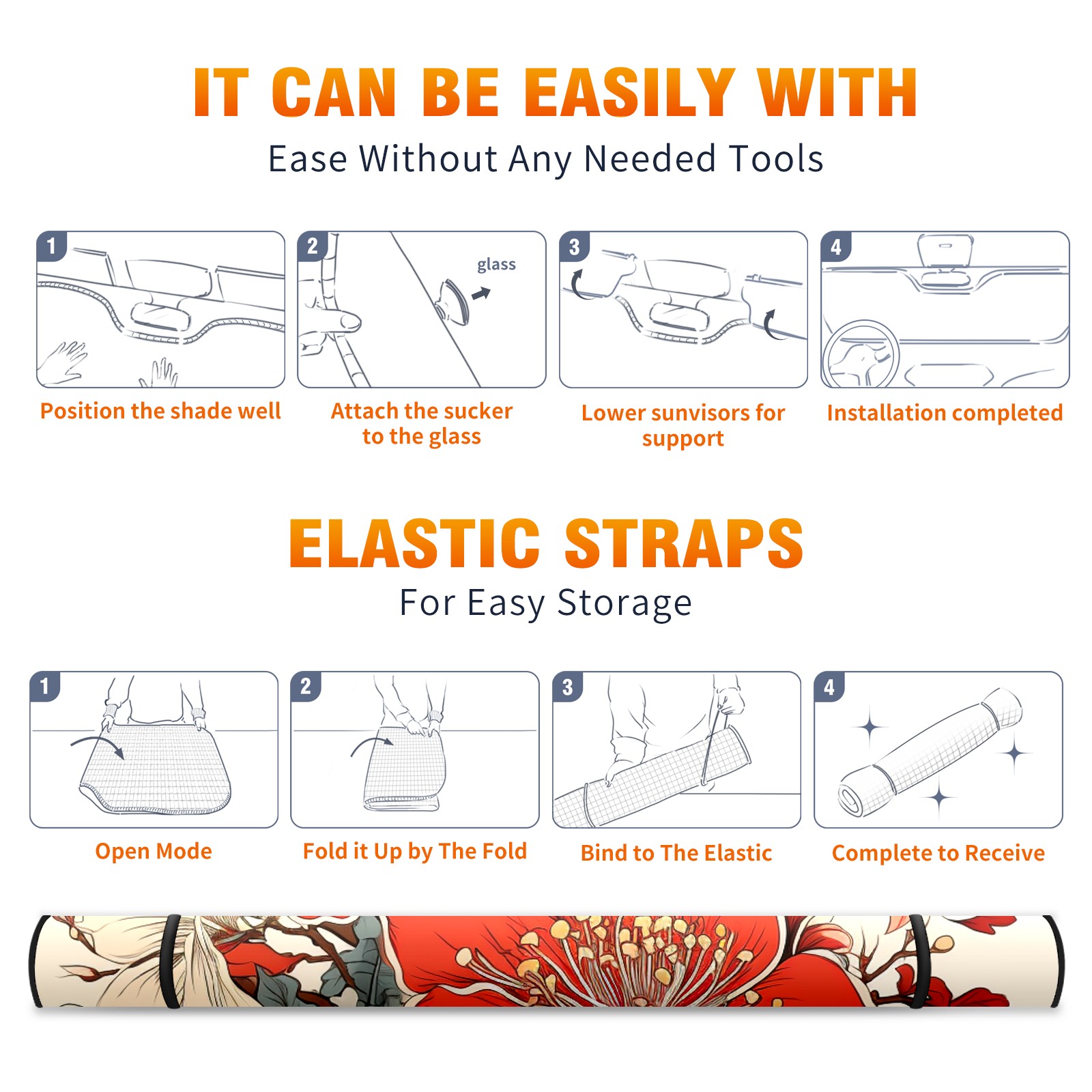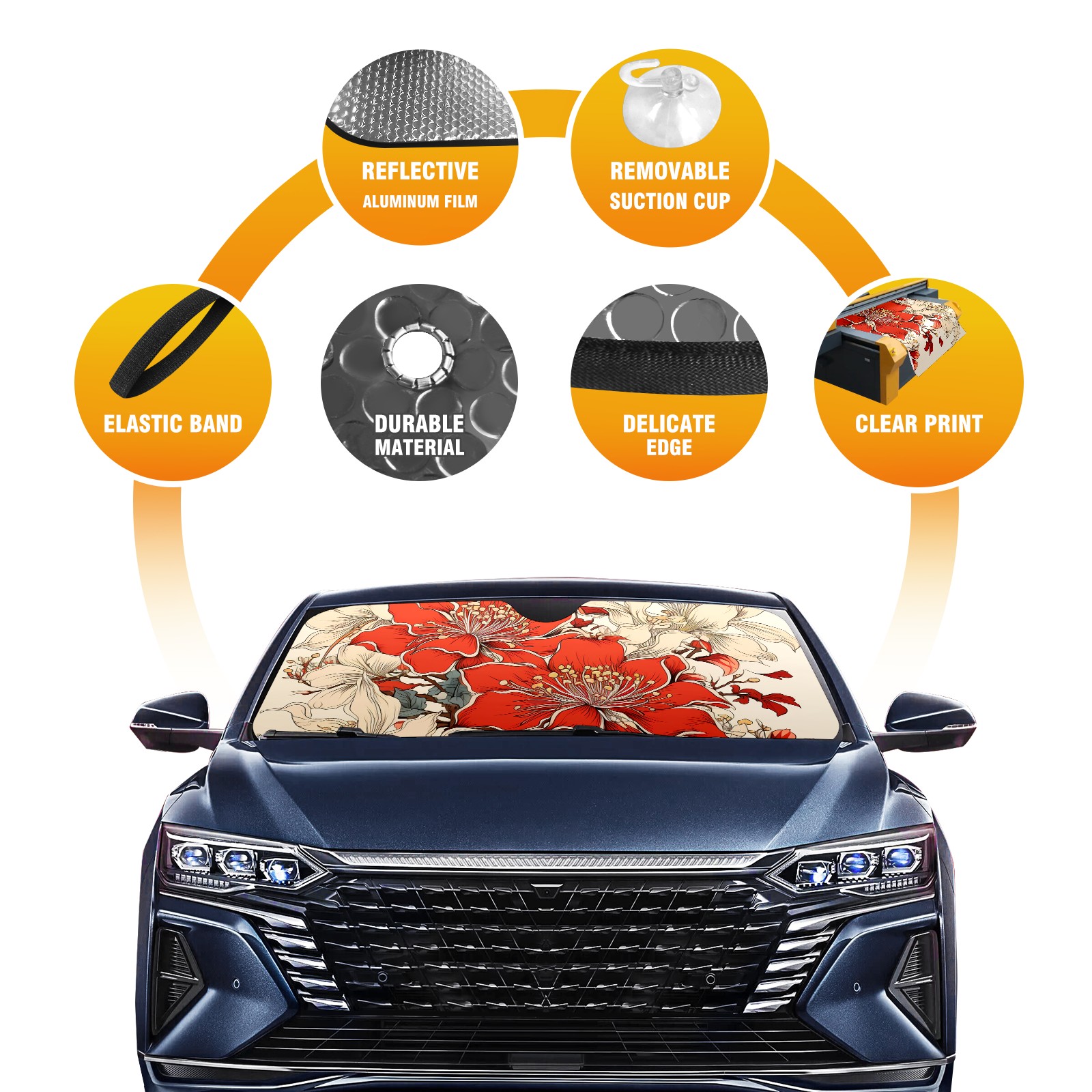 Car Windshield Sun Shade For Front Window Flower3 Foldable Vehicle Windshield Car Sun Visor Covers Automotive Window Protector Car Camping Privacy Sun Blocker