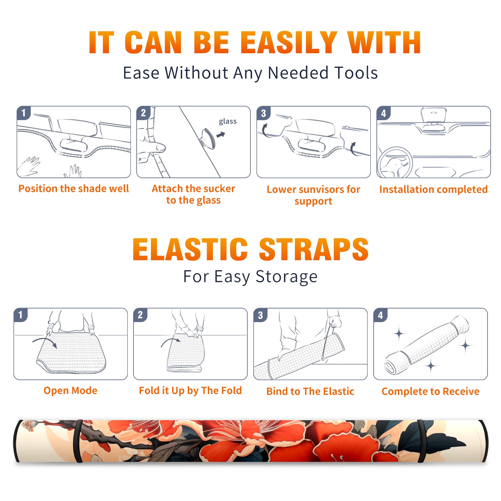 • Diameter /Size 63"L x 33.5"W Made from excellent materials which makes it sturdy and protects the car from the sun. Easy to use and pack. Makes the interior of the car cooler.You can easily stash the sunshade in the storage bag or store long term.It open and closes easy. Also the leather storage bag is durable and easy to put the umbrella back into.This windshield sunshade provides complete coverage and keeps your car interior cool under direct sun. It is easy to open and position under the windshield and around the rear-view mirror. Makes Your Car Easy To Identify, Perfect For Finding Your Car In Crowded Parking Lots And Garages.Great Choice: It Is A Great Gift For Dad, Boyfriend, Brother, Brother And Uncle, Friends, Classmates, Family And So On. Notice: Due To Difference Computer Monitors, The Color Maybe Slightly Different From Picture. As Different Measurement Methods, Measurement Data Will Float Within 2%.I Hope You Understand. If You Have Any Question About The Item Please Do Not Hesitate To Contact Us Immediately And We Will Give You A Satisfactory Reply Within 24 Hours.