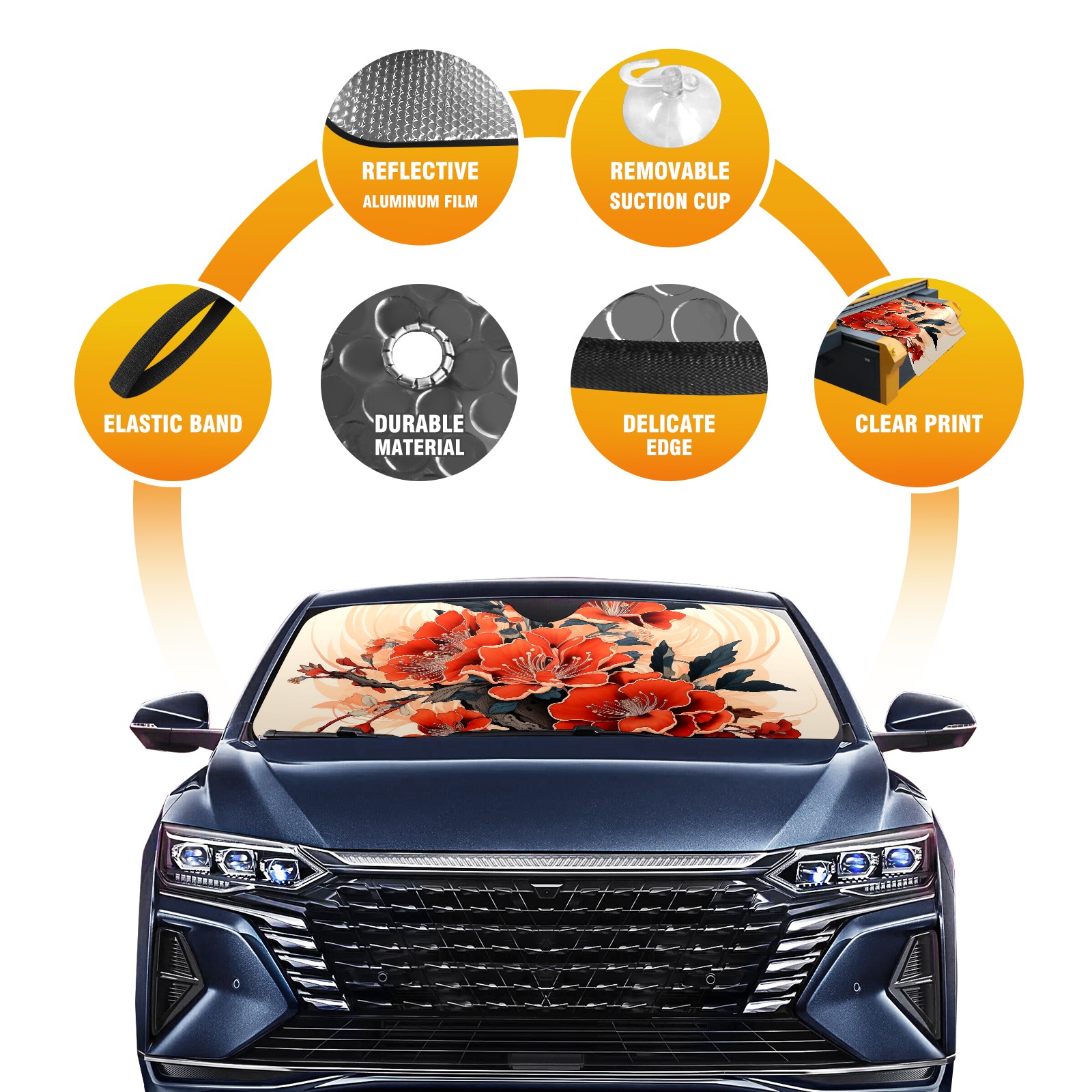 Car Windshield Sun Shade For Front Window Flower2 Foldable Vehicle Windshield Car Sun Visor Covers Automotive Window Protector Car Camping Privacy Sun Blocker