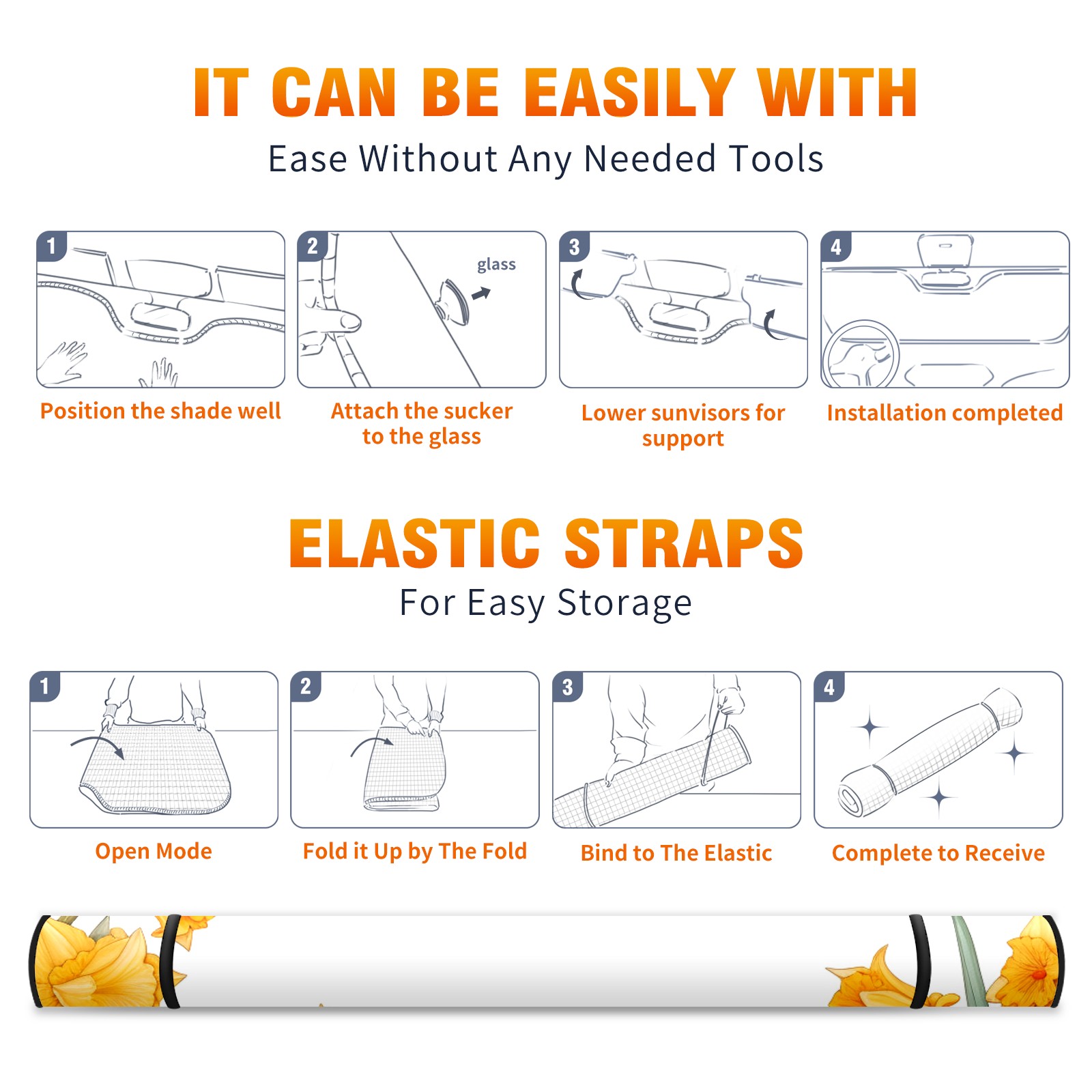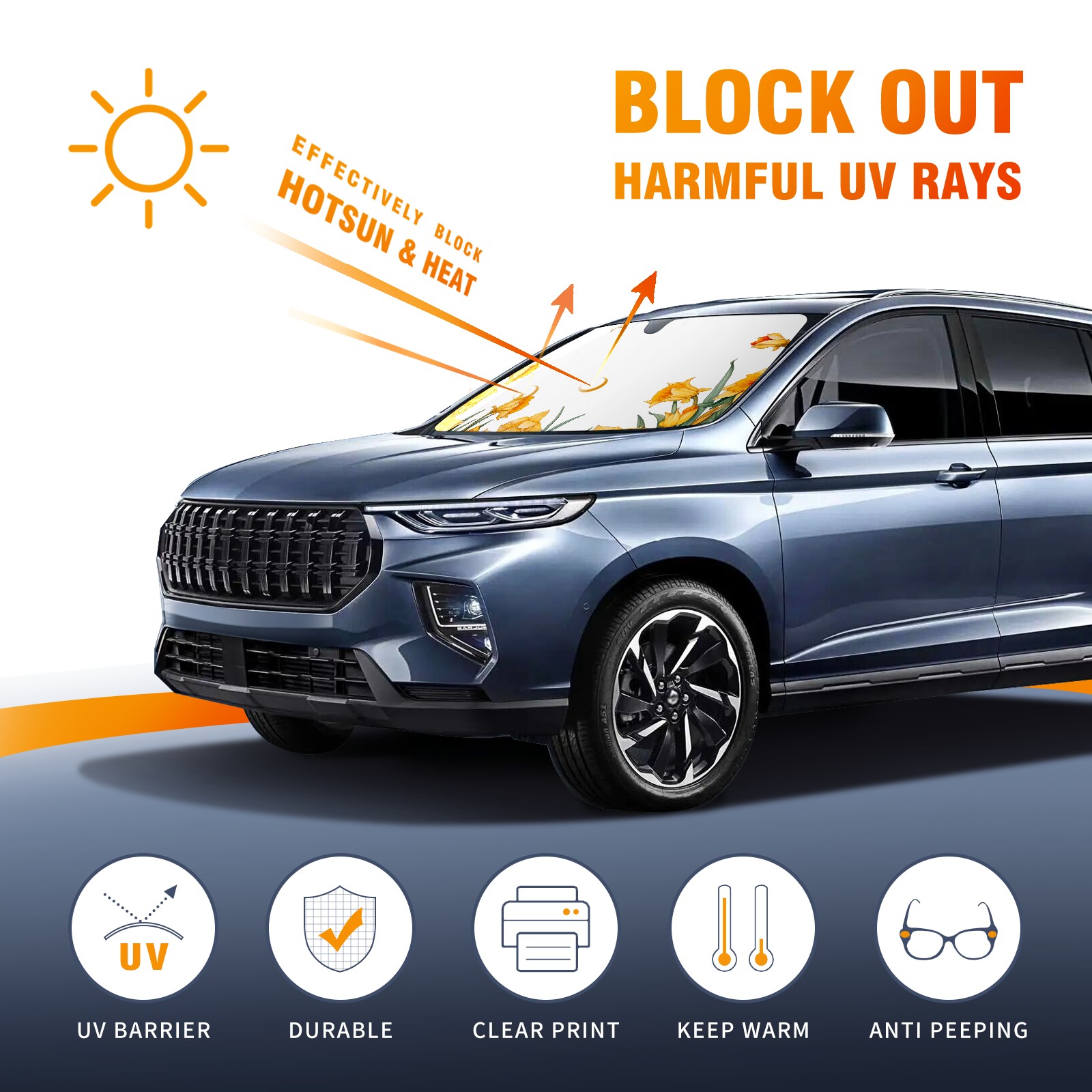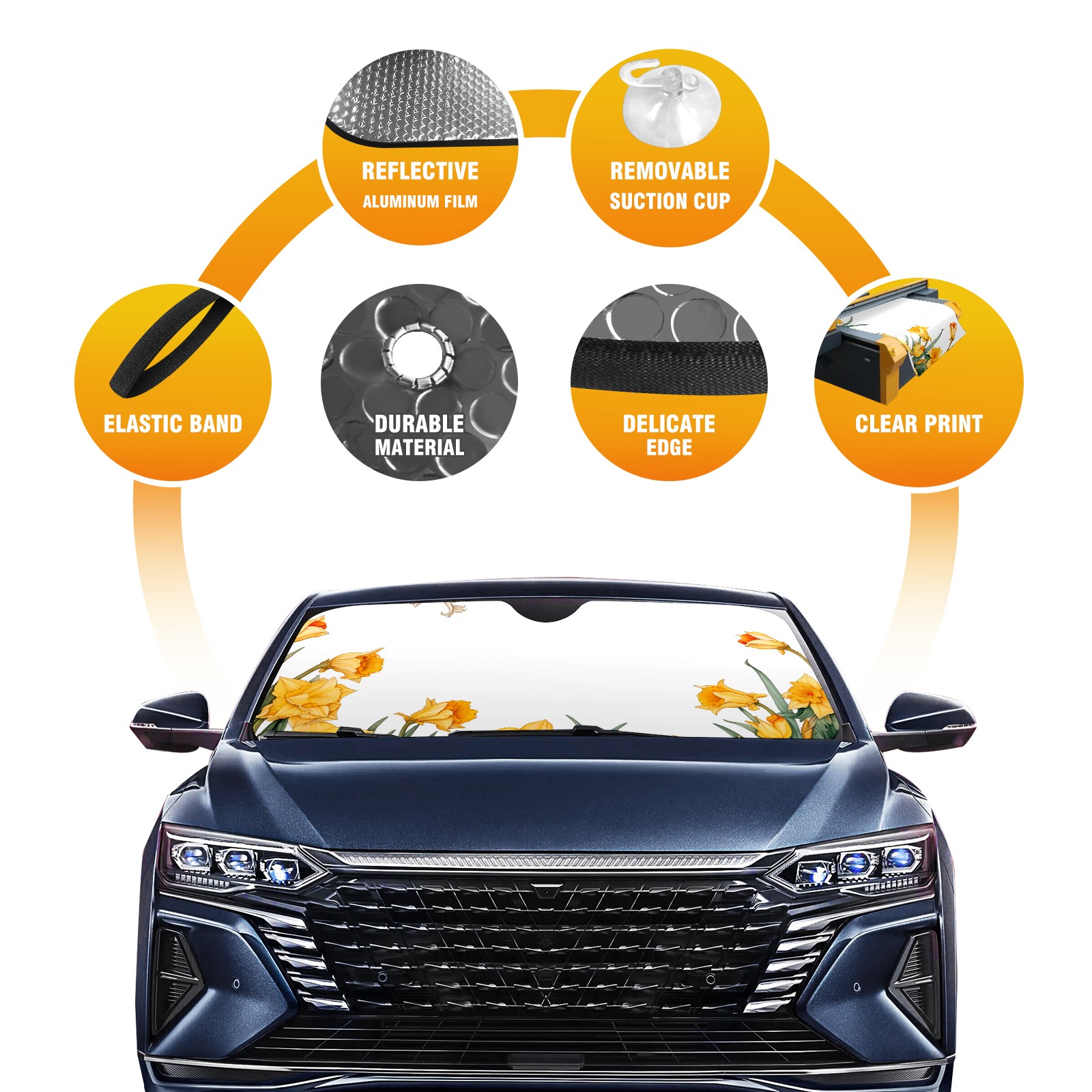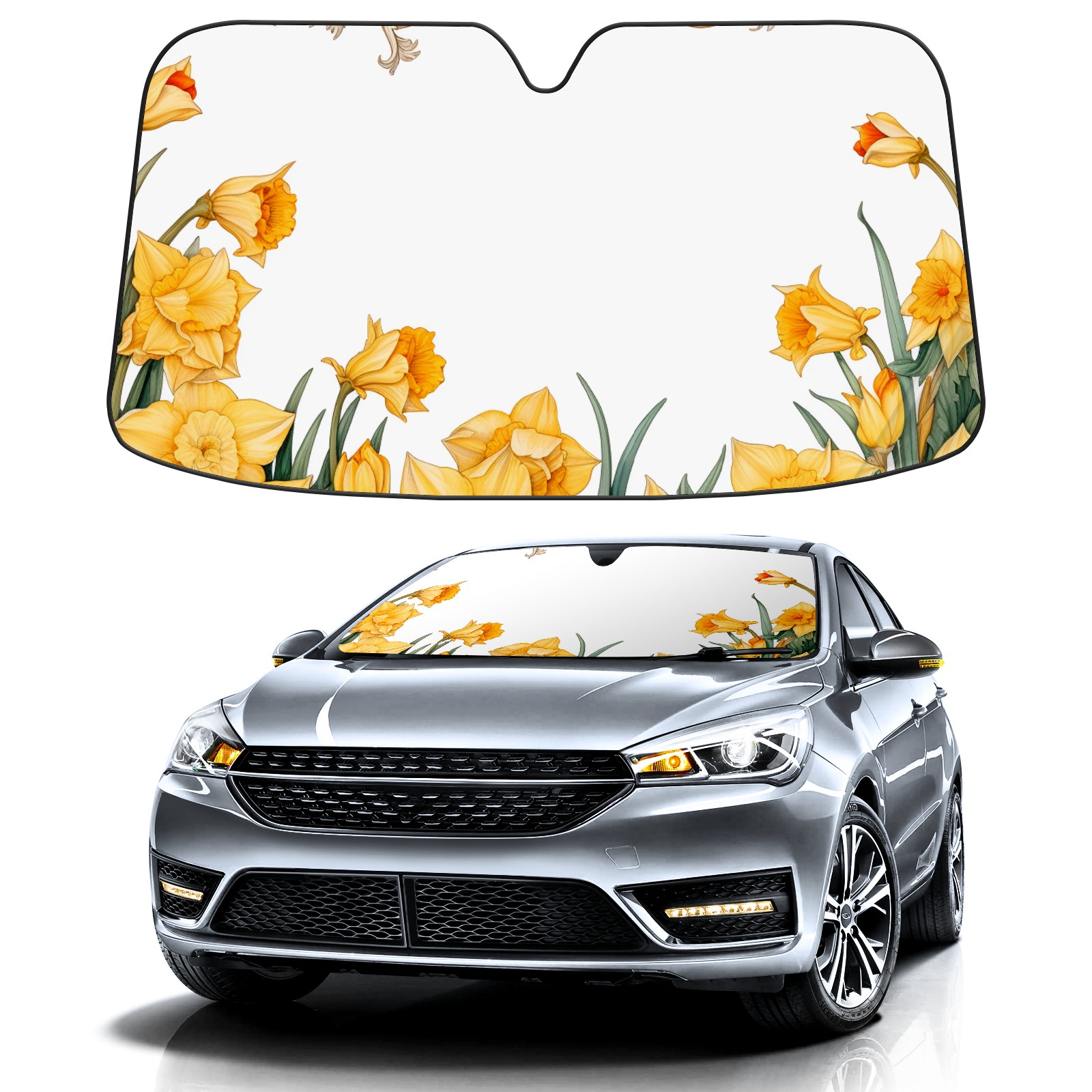 Car Windshield Sun Shade For Front Window Daffodil2 Foldable Vehicle Windshield Car Sun Visor Covers Automotive Window Protector Car Camping Privacy Sun Blocker